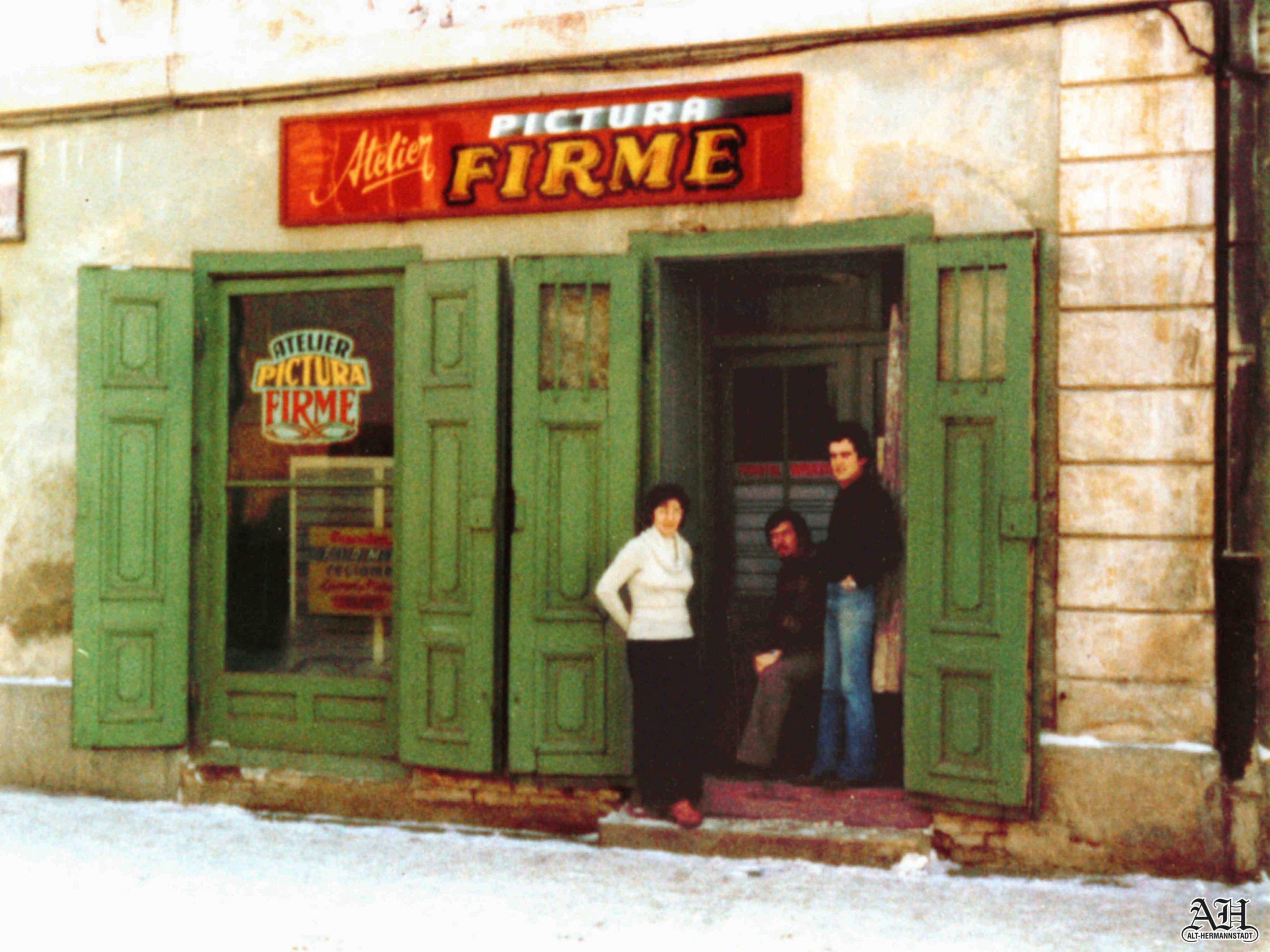 După plecarea lui Radu G. și emigrarea lui Johannes Friedsam am preluat atelierul de firme. Împreună cu draga mea colegă Marga C. și noul coleg Richard W. am continuat tradiția picturii de firme și reclame în atelierul din str. Târgu Vinului 4 timp de peste un deceniu. După emigrarea lui Richard am găsit doi succesori calificați în persoana lui Hans-Martin S., și Erwin Sch.