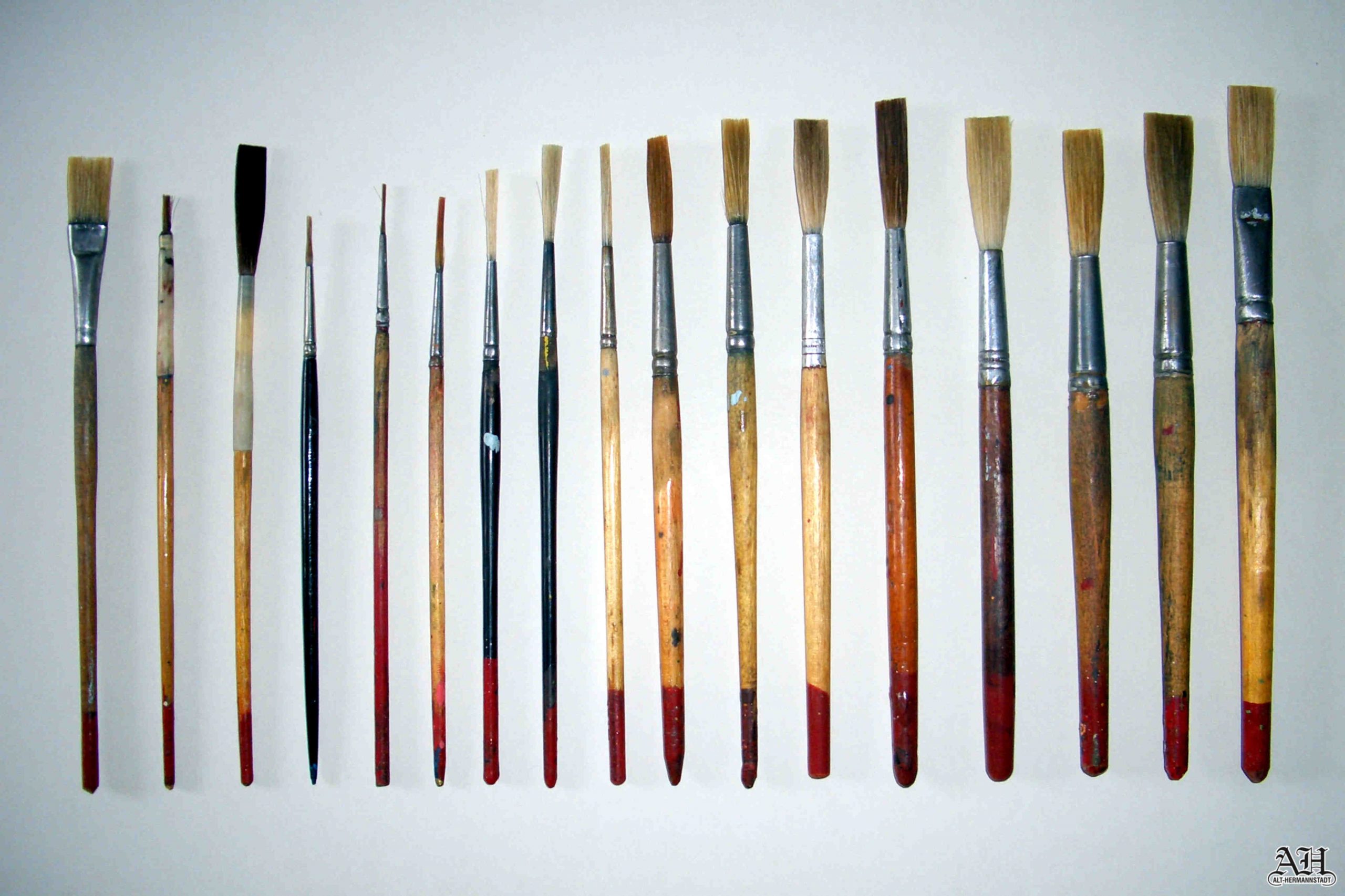 Fiecare avea setul propriu de pensule, pe care îl îngrijea ca lumina ochilor! Întrucât nu existau pensule de scris (Schlepper) în magazinele de specialitate eram nevoiți să le fabricăm din materiale disponibile. Primul lucru care am învățat de la fostul maistru a fost tehnica confecționării unei pensule de scris, cu cotor tăiat dintr-o pană de gâscă cu coada din lemn (sau Schlepper fără coadă pentru trasat linii) dar și transformarea unei pensule obijnuite, cu cotor din metal și coadă din lemn, într-un Schlepper cu păr lung! Această tehnică am dat mai departe viitorilor mei colegi. Tehnica de aurire pe sticlă am furat cu ochii de la maistrul meu. Într-o cutie de carton păstrată sub cheie în dulapul de materiale se aflau ustensilele pentru aurire: pensulă lată (Anschießer), cuțit, pernă perntru tăiat foițe și foițe de aur și argint.