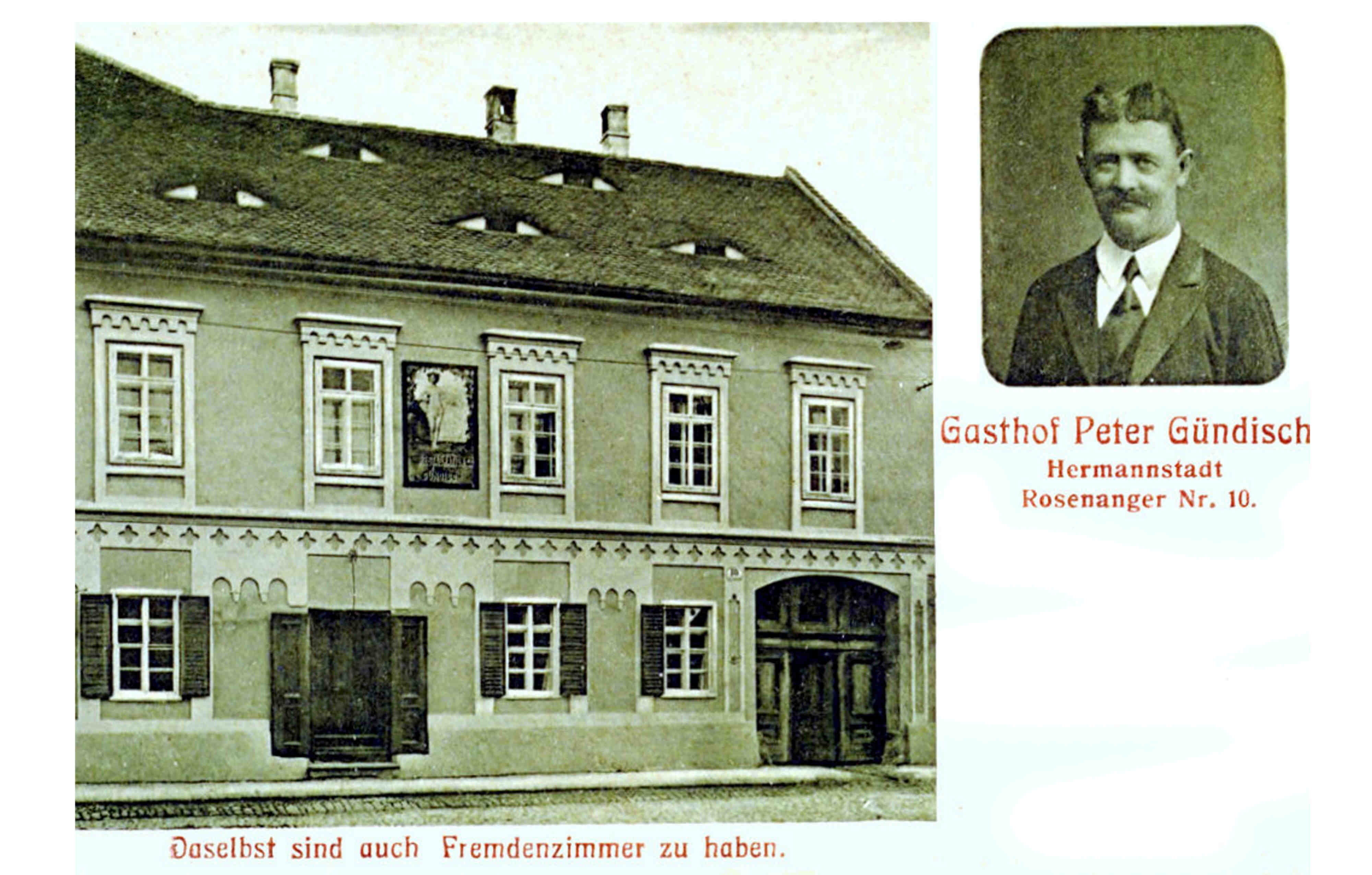 În clădirea Târgu Peștelui 8 se afla un hotel cu restaurant în perioada interbelică. Peter Gündisch, proprietarul hanului (Gasthof), decorase fațada la etaj cu o frescă reprezentând un tânăr cu un păhar de vin în mâna dreaptă, stând sub o boltă de viță de vie. Lângă hotelul restaurant, în clădirea de la nr. 10 se afla sediul poliției în anii 1950.