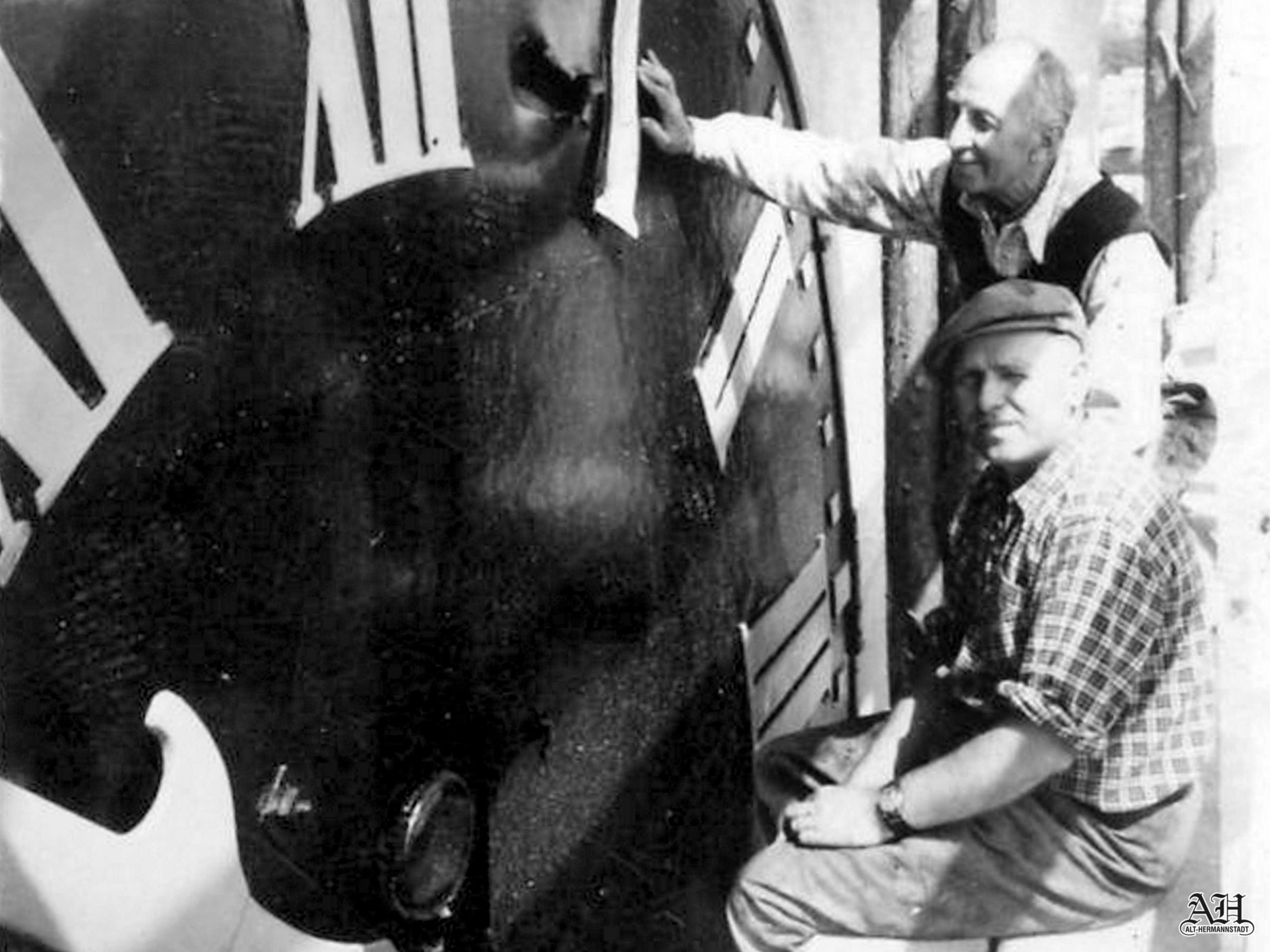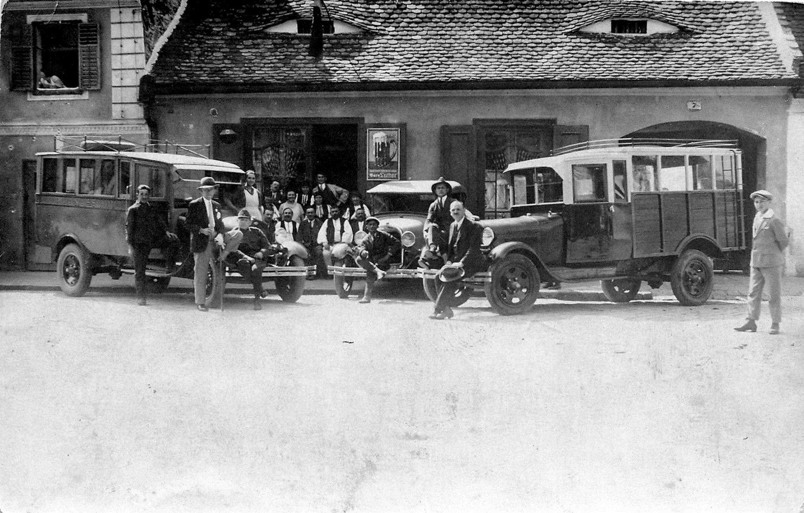 Fotografii alb-negru realizate în atelierul de pictură firme în anii 1960, pe schela din lemn în fața ceasului de la Biserica Evanghelică din Sibiu 1956 (unde se vede dl Hollinek sen. lângă dl. Fleischer) și pe scările Aurarilor 1964 (unde apare dl Fleischer împreună cu bătrânul Hollinek și fiul acestuia.).