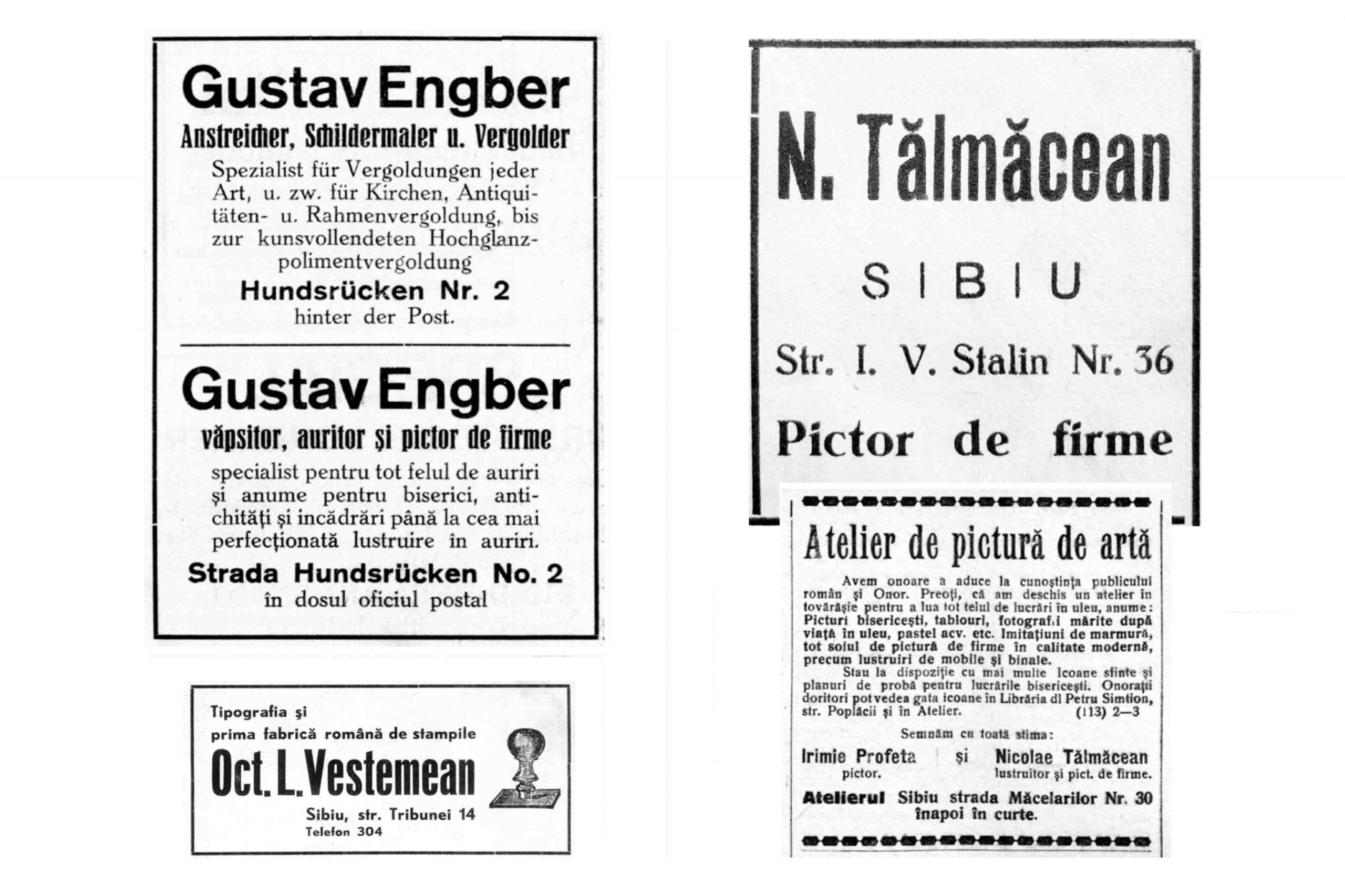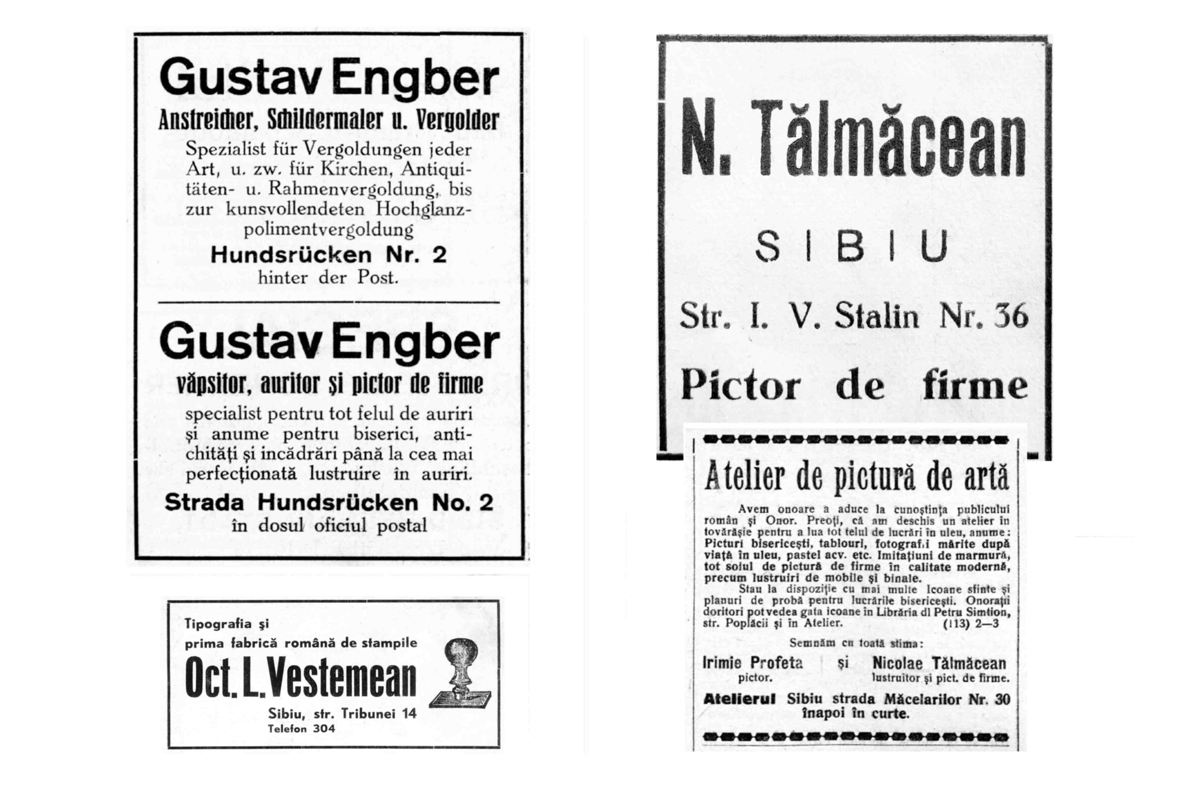 Pe vremea când nu existau tehnologiile și materialele necesare pentru realizarea firmelor și reclamelor cu litere tăiate din folii autocolante cu ajutorul unui cutter-plotter, nici inscripții prin procedeul de decupare/ gravare CNC, nici tehnologia tiparului digital și nici reclame cu LED, se afla în Sibiu un atelier de pictură firme bine cunoscut sibienilor în perioada anilor 1950-1980. Atelierul de Pictură Firme, sau cum apare în actele vremii – Atelierul 30 Pictori – aparținea de coop. Igiena Sibiu și se găsea pe strada Târgu Vinului nr. 4.
