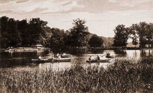 Cum treceai liniile de tramvai, se deschidea o mică espalanadă asfaltată toată, în care oameni pestriţi treceau valuri valuri şi se unduiau în mişcarea hainelor lor colorate. Erau acolo tarabe cu ochelari de plastic coloraţi, fluierici şi sfîrleze de tot felul, măgăruşi de lemn prinşi cu elastic de apăsai pe ei, păreau că îngenunchează, broaşte verzi de metal care se trăgeau cu cheia şi săreau în zgomot sec pe pămînt, lanţuri de tinichea cu medalioane de plastic, insigne de tablă, mingi umplute cu tărîţe, invelite in hirtie creponată, le balansam intre palmă si lansam spre pămînt si elasticul subtire se rupea ciupindu-ne dureros şi tot felul de nimicuri pe care mintea mea nu le mai păstrează. Şi pentru că aproape toti micii negustori întreprinzători de la tarabe erau ţigani, tot ce cumpărai de acolo se numea „de la ţigani“! Porneam apoi pe o alee străjuită de castani, între lac şi Grădina zoologică. În stînga, lacul sclipea cu bărcile lui de lemn şi vîsle greoaie, în dreapta, se întindea umbrită dar plină de sunete şi viaţă Grădina zoologică. Era acolo pe alee un podeţ de lemn, căci apa din lacul mare se scurgea într-un lăcuşor pitoresc chiar în mijlocul grădinii şi acolo, de pe podeţ, era loc strategic de aruncat o privire spre insula cu păsări de apă.