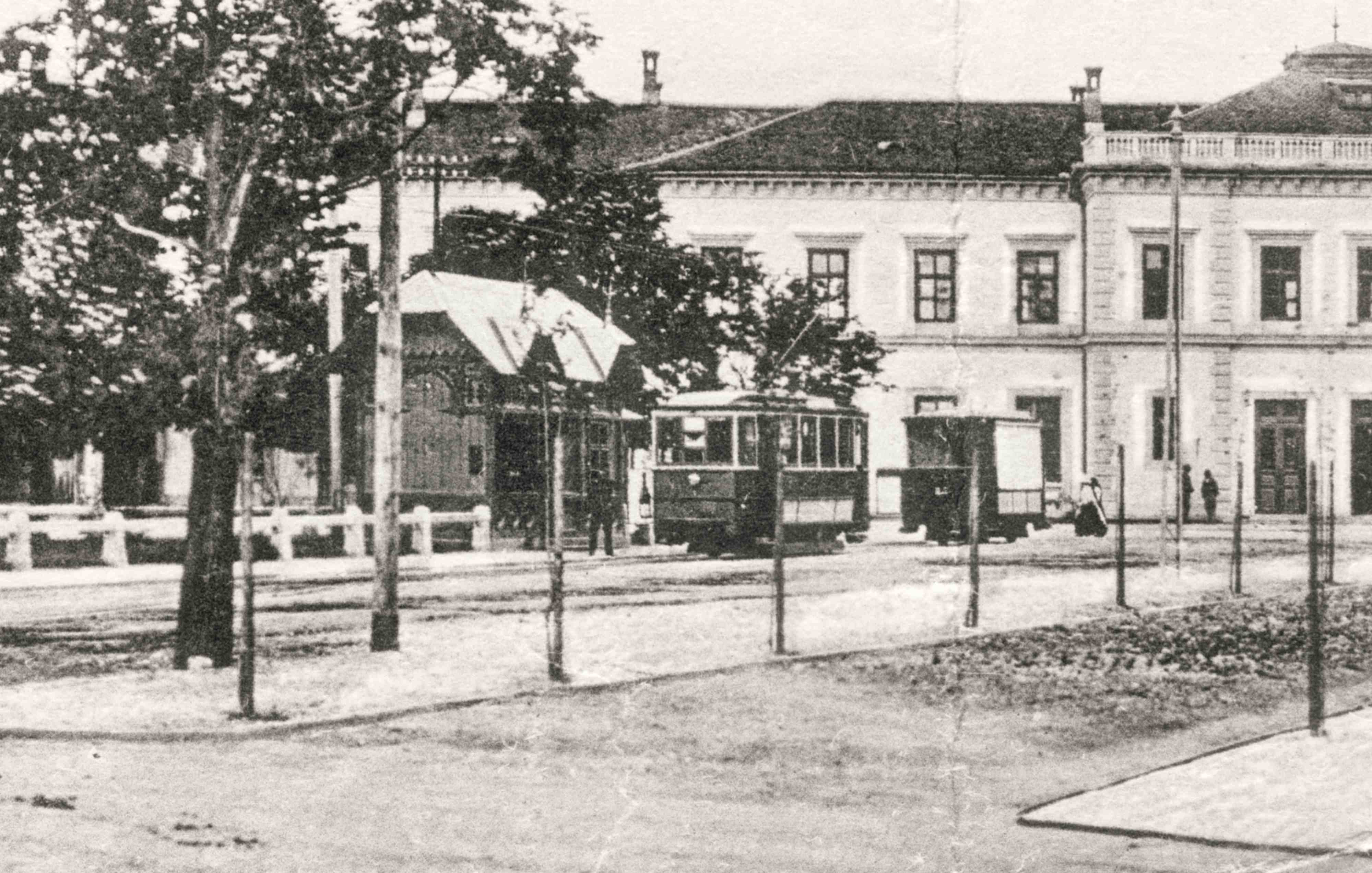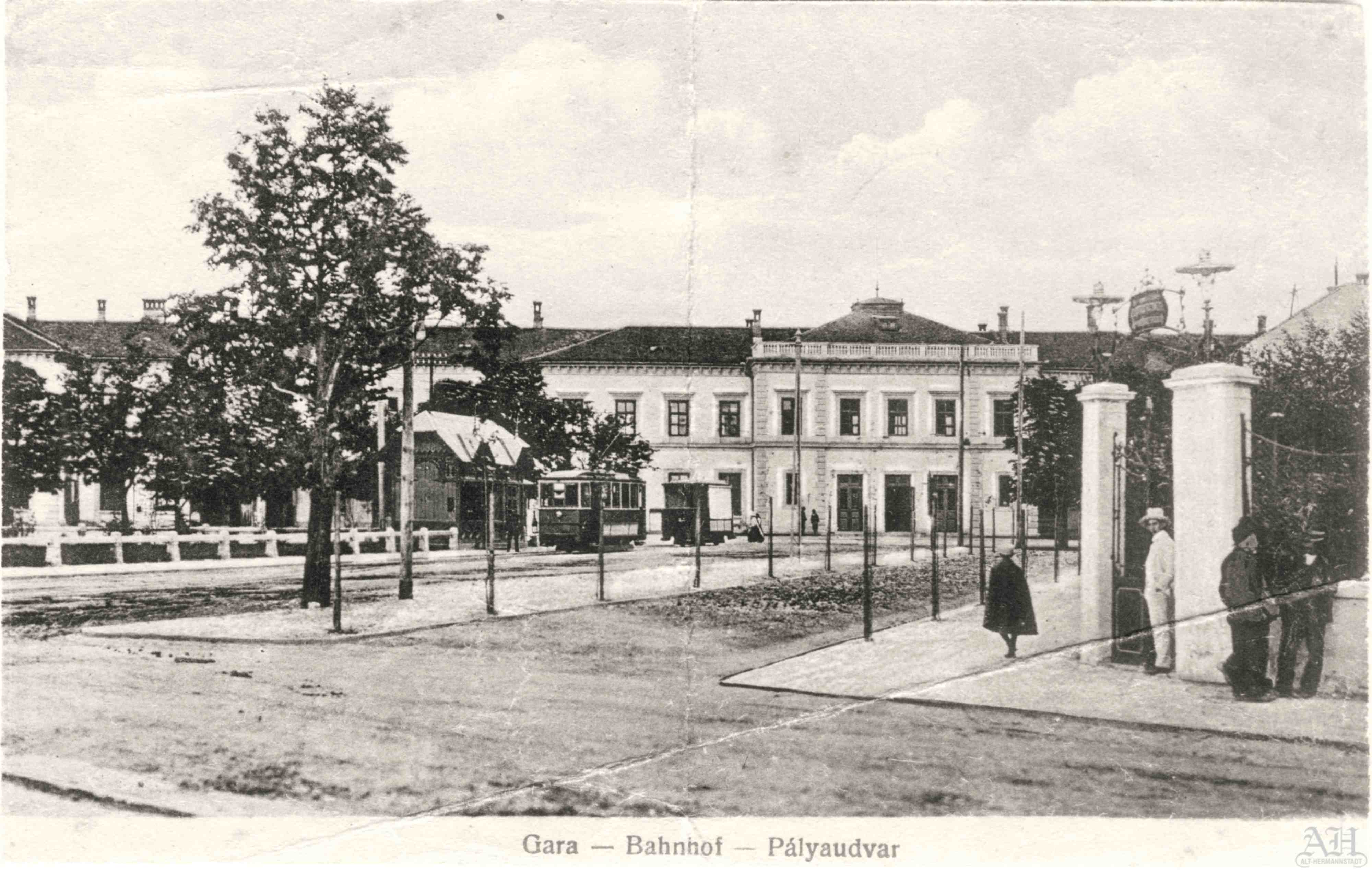 Piața Gării din Sibiu fotografiată în anii 1910. Această fotografie apare pe cărți poștale tip LEVELEZÖ-LAP tipărite la Institulul tipografic sibian „Kunstanstalt Jos. Drotleff, Hermannstadt“ 1917.1905 s-a construit și dat în folosință prima linie de tramvai din Sibiu (8 septembrie 1905) pe ruta Piața Gării – Parcul Sub Arini. Din 1905 Piața Gării din Sibiu era cap de linie pentru ruta de tramvai: Piața Gării – Parcul Sub Arini și din 1910 pentru ruta de tramvai: Piața Gării – Parcul Sub Arini – Cimitir (Dumbrava). 1912 a fost amenajată a doua rută de tramvai: Piața Gării – Piața Lemnelor (linie prelungită 1927 până la Piața Cluj și 1929 până la Gara Turnișor). 1915 ruta de tramvai Piața Gării – Parcul Sub Arini – Cimitir (Dumbrava) a fost prelungită până în Pădurea Dumbrava și 1948 până la Rășinari (electrificată 1951).
