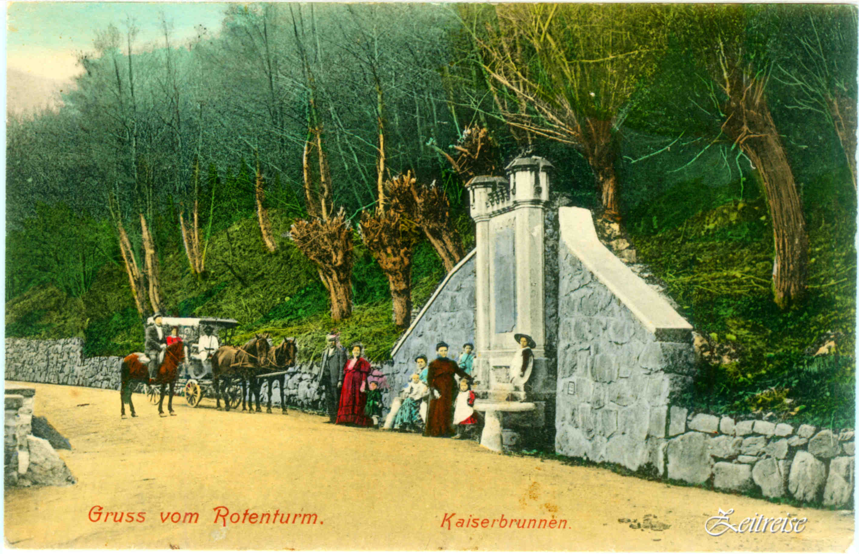 „Turnu-Roșu – Fântâna împăratului” // „Gruss vom Rotenturm – Kaiserbrunnen“ / Carte Poștală circulată 1912