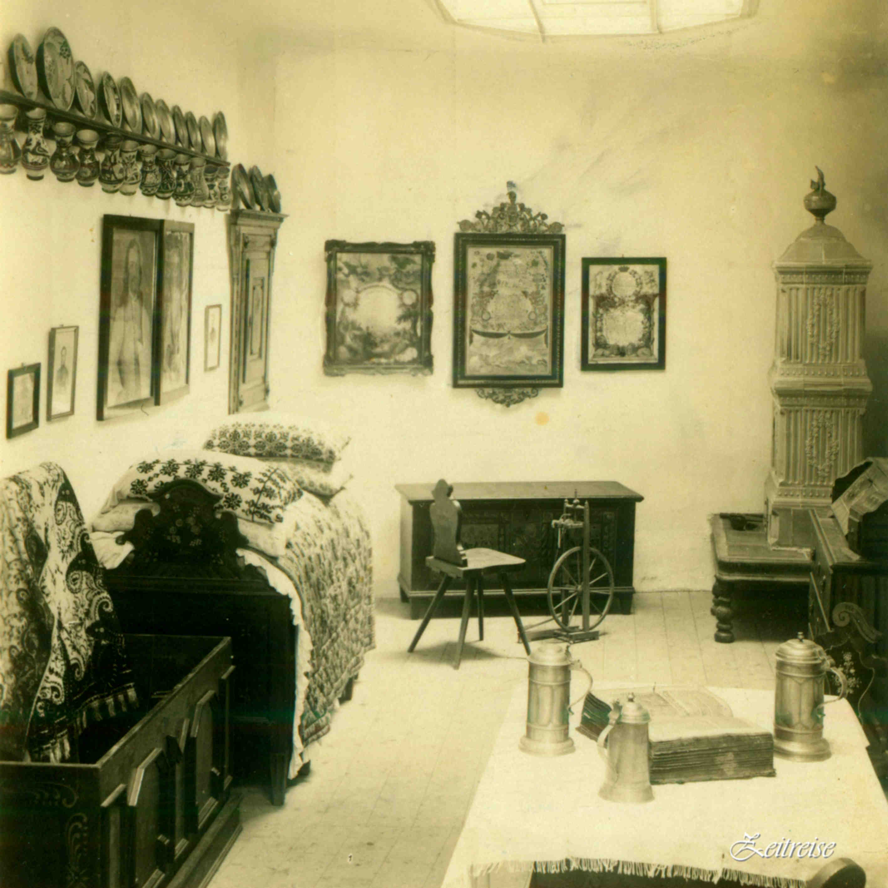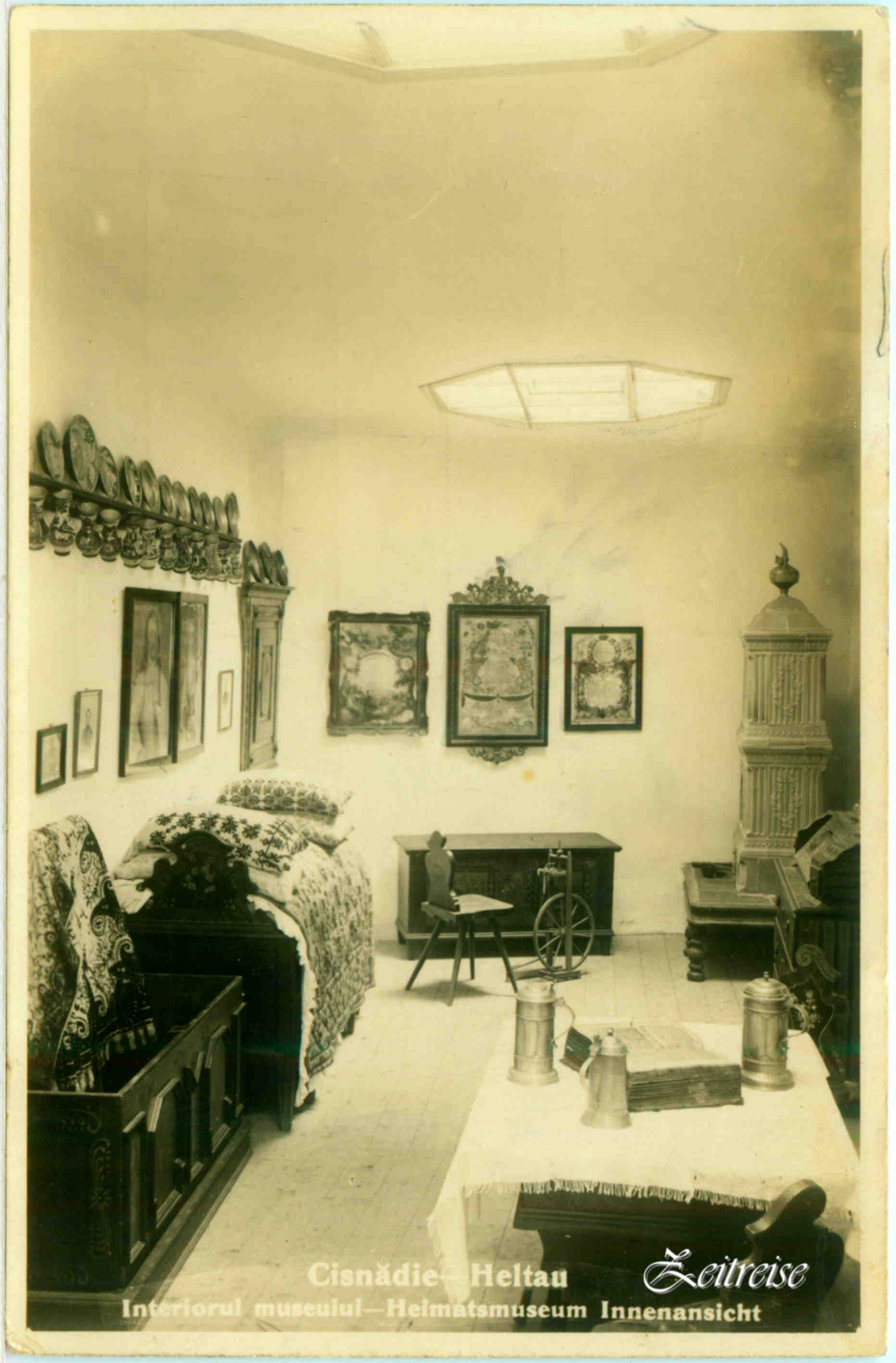 Cisnădie // Heltau // Nagydisznód – „Interiorul museului // Heimatsmuseum Innenansicht“ – (Carte Poștală – detaliu)