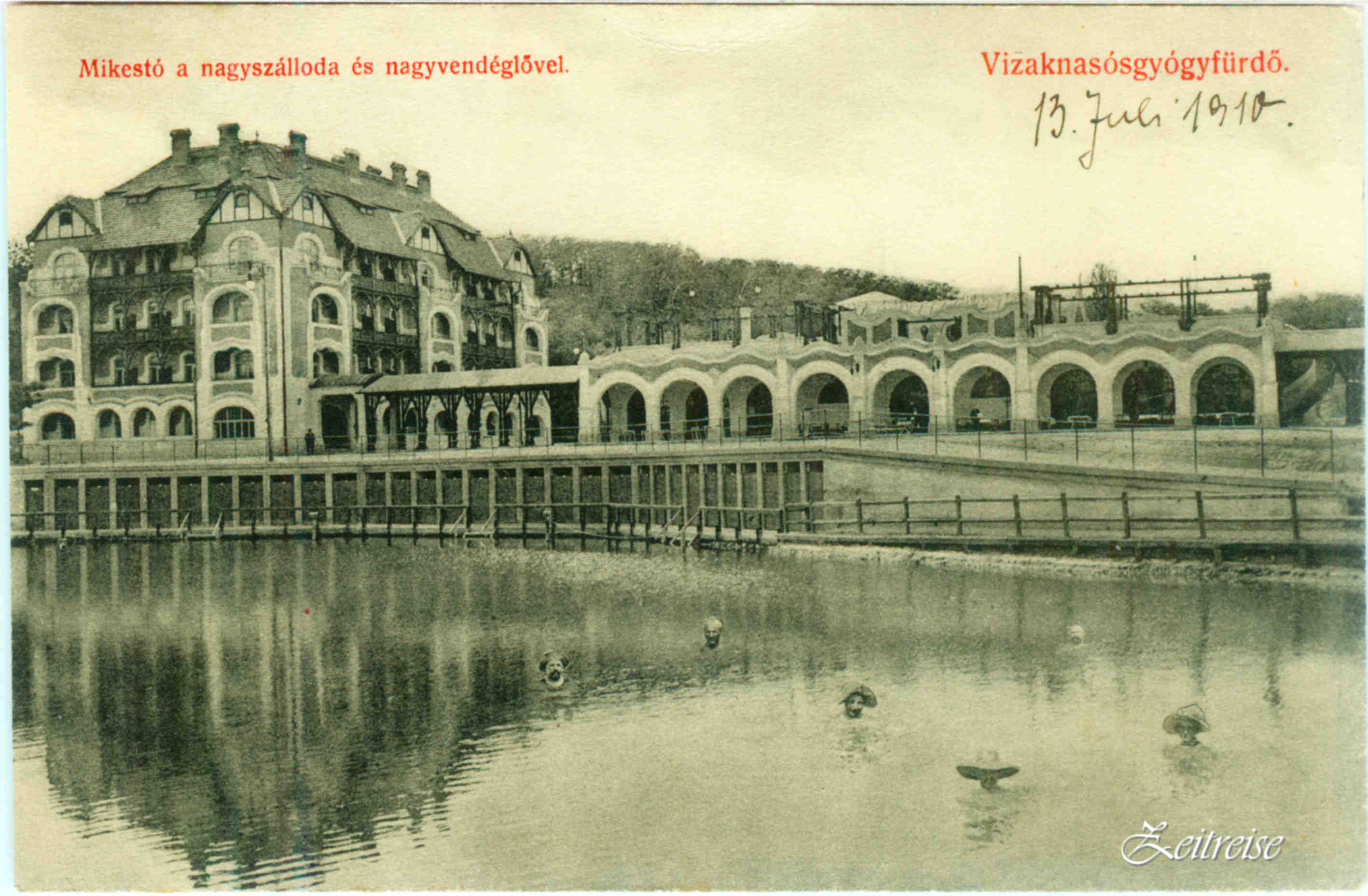 Acum zîmbesc, atunci nu băgăm de seama! Se mai găseau, pe vremuri, alţi minunaţi chiloţi de baie din pînză neagră care, la prima purtare şi ieşire din apă, atîrnau pe la spate ca un săculeţ şi fluturau pe purtător, mai mult arătînd decît acoperind. Pentru fetiţe şi femei, îmi amintesc costumele colorate din pînză creponată, cu mici volane şi coşuri de plastic ţuguiate ce ţineau cupa. De aveai nenorocul să nu se potrivească la fix, coşuleţul se îndoia cu un păcănit uscat şi rămînea aşa blocat. desigur, riscai ca un sîn să pară mai turtit decît celălalt, cu care tare te mindreai şi sfida lumea din înălţimea lui rigidă. Peste zeci de ani Gaultier avea să readucă imaginea asta din uitarea generală în faimă internatională. Și mă gîndesc cum umblau pe vremuri, pe aici, doamnele şi domnişoarele, împachetate de sus pînă jos în pantalonaşi bufanţi şi panglici şi volane, cum se ascundeau sub umbra colorată a umbreluţelor ca soarele să nu le atingă pielea albă şi nobilă! Un simplu exerciţiu de imaginaţie urcă valuri de rîs în mine. Și cum se scăldau doamnele în apa asta plină de minerale şi grasă? Desigur ar fi trebuit remorcate şi extrase afară din ea cu căruţa, sau în cabine de lemn ferite de priviri iscoditoare. Pe la 1830 existau aici cabine de baie, construite astfel încît lumea să se poată îmbăia direct în lac. Curajoşii se puteau depărta de mal atîrnîndu-se de frînghiile ce stăteau deasupra lacului, în diagonală…