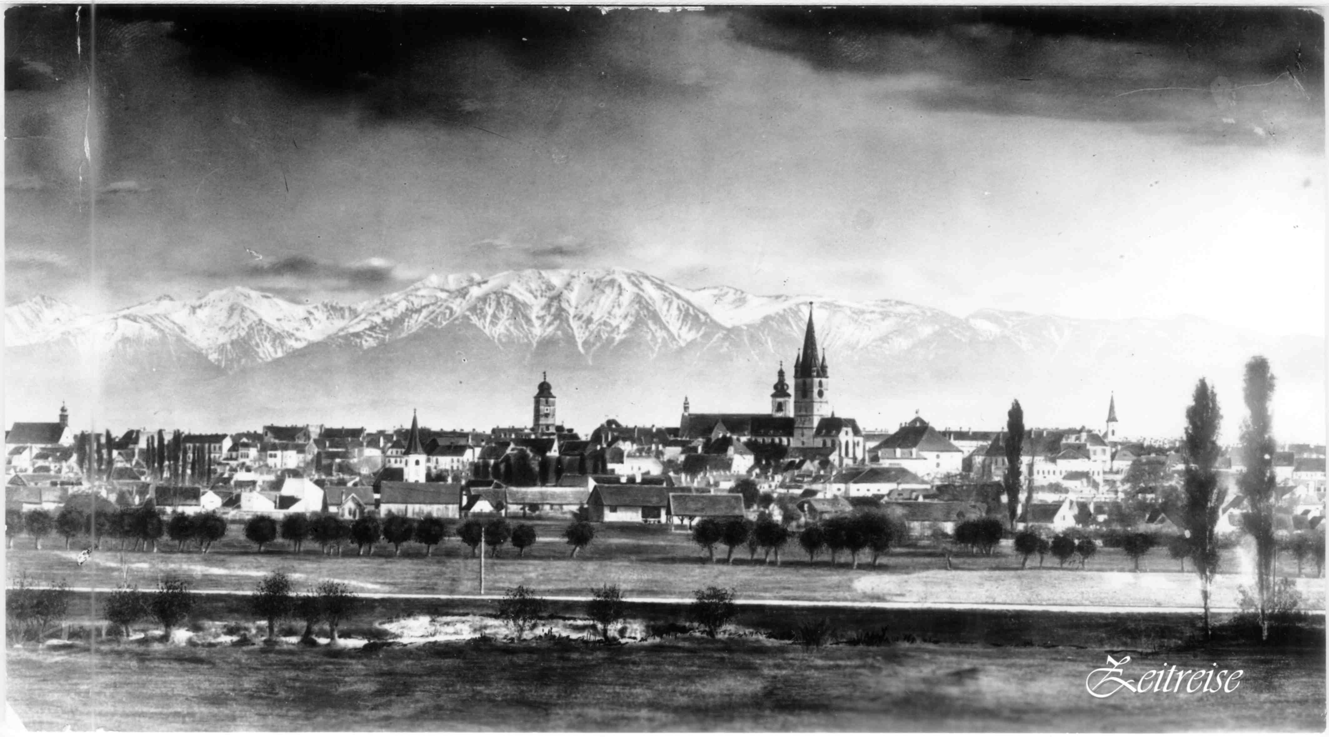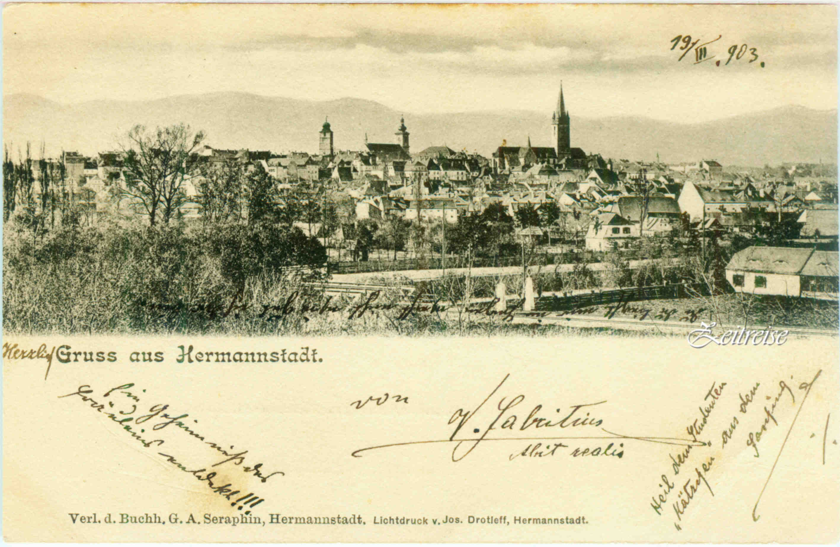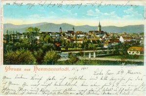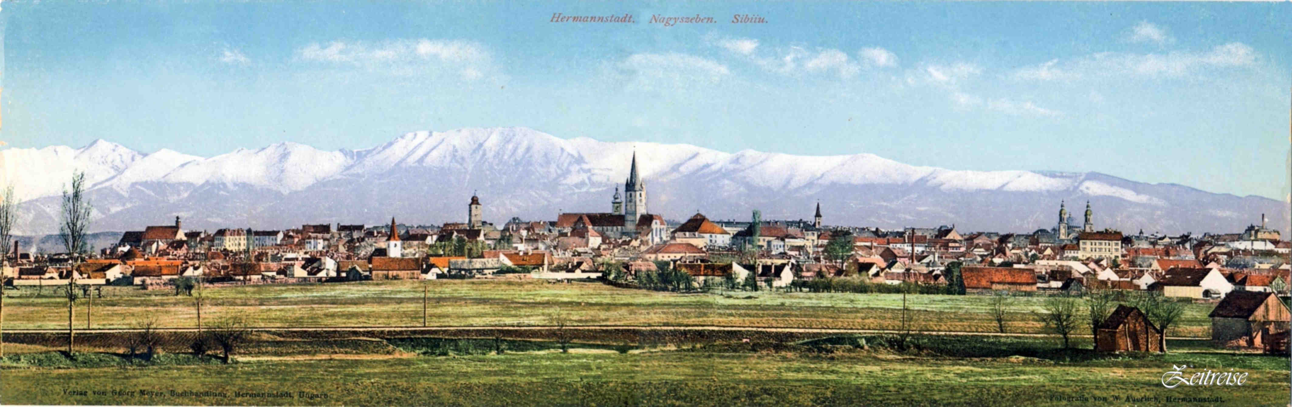 Sibiu, Vedere panoramică dinspre nord/vest – fotografie Wilhelm Auerlich (dupa 1906) – text foto: editura lui Georg Meyer, librarie