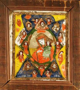 Icoana este „o fereastră spre absolut“ spunea Michel Quenot. Dincolo de mesajul teologic, icoana este, poate, cea mai pură manifestare a simţămîntului artistic. Icoana este o scriere a cărţii şi a învăţăturilor ei, o scriere în imagini, o „zugrăveala“. Specifică Mărginimii (Transilvaniei), istoria icoanei pe sticlă a început în sec XVII-XVIII, odată cu înfiiinţarea manufacturilor de sticlă. Arta aceasta născută în Bohemia, a fost adusă în Transilvania de către habani, (o sectă religioasă) odată cu aşezarea lor pe acest teritoriu. Dar, vestiţi meşteri glăjari şi suflători, devin românii din Transilvania pînă şi acolo la manufacturile din Bohemia unde ajung să lucreze.