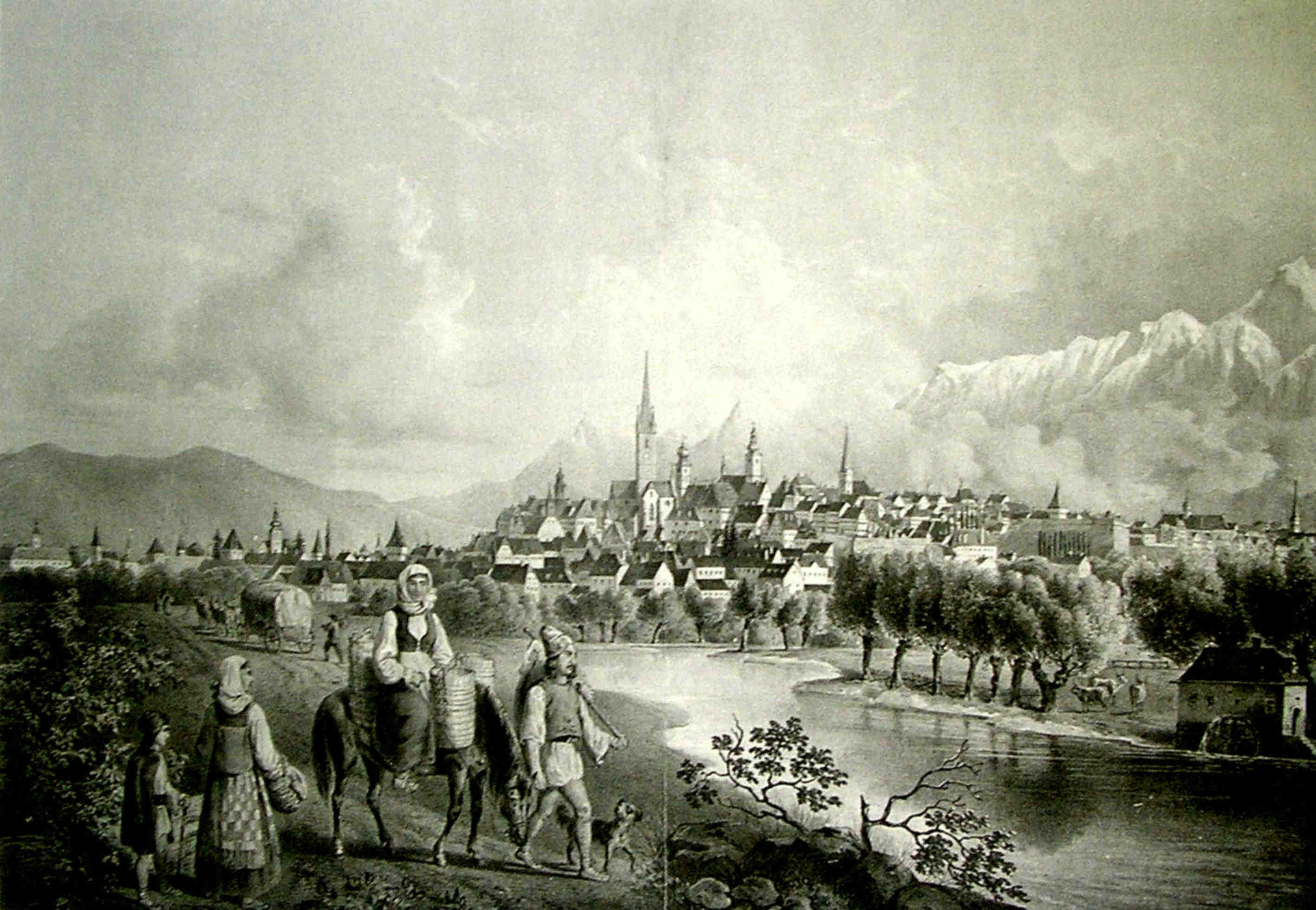 Sibiul văzut dinspre nord – Jakob Alt 1832 (tablou realizat după pictura lui Franz Neuhauser cel Tânăr)