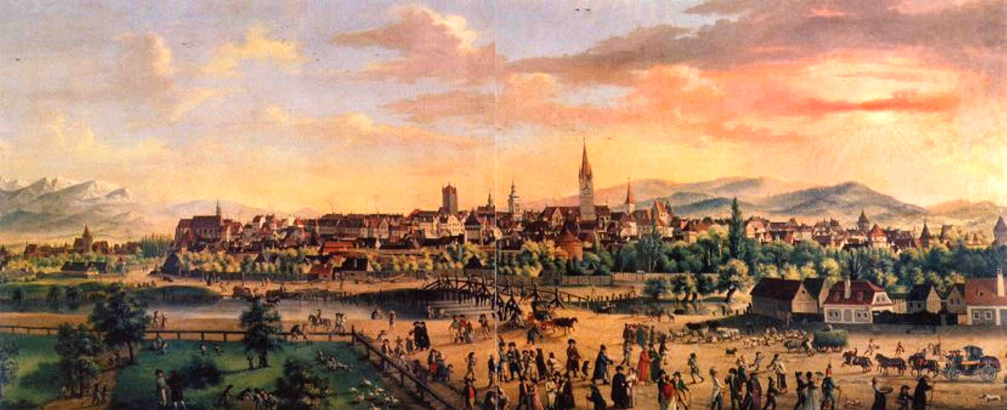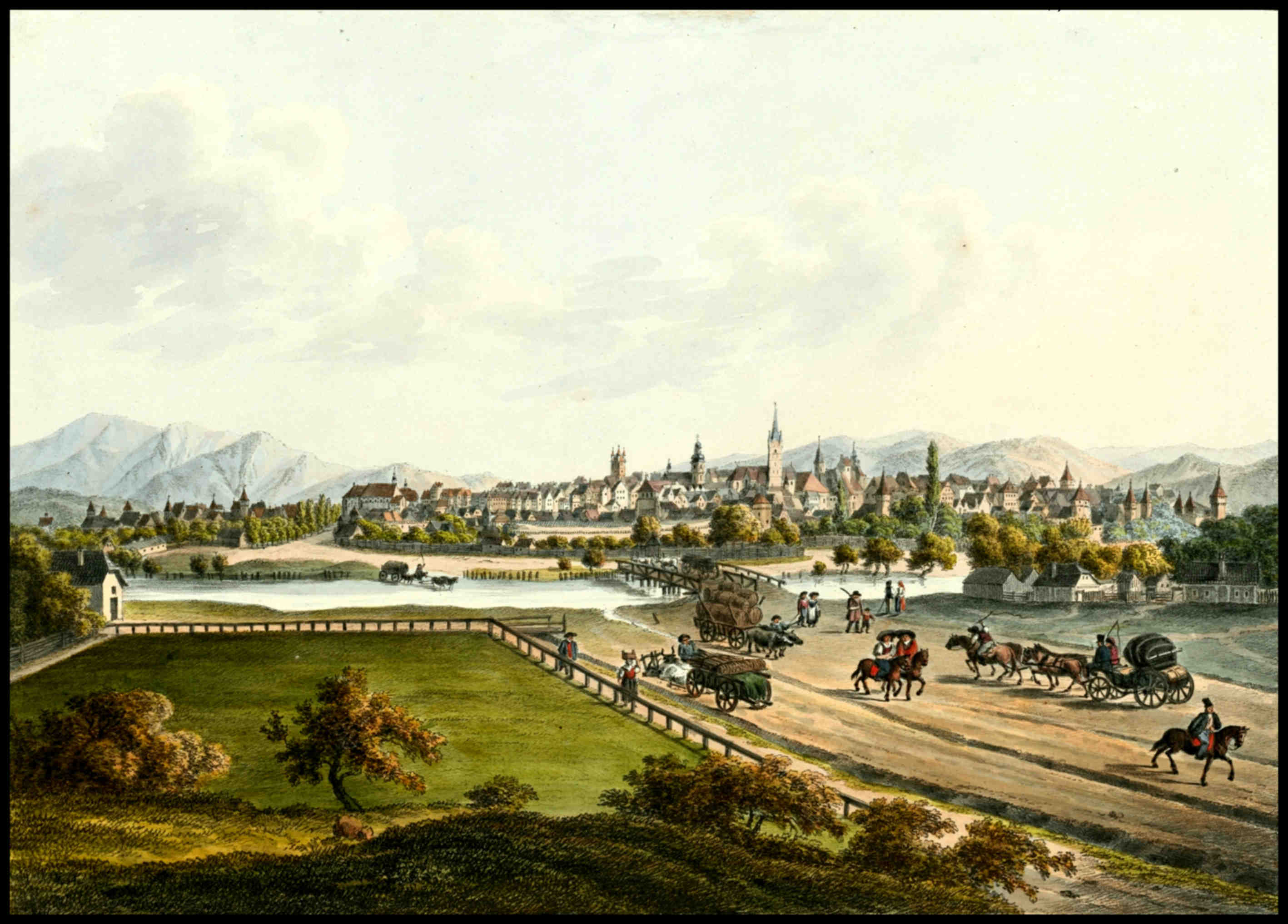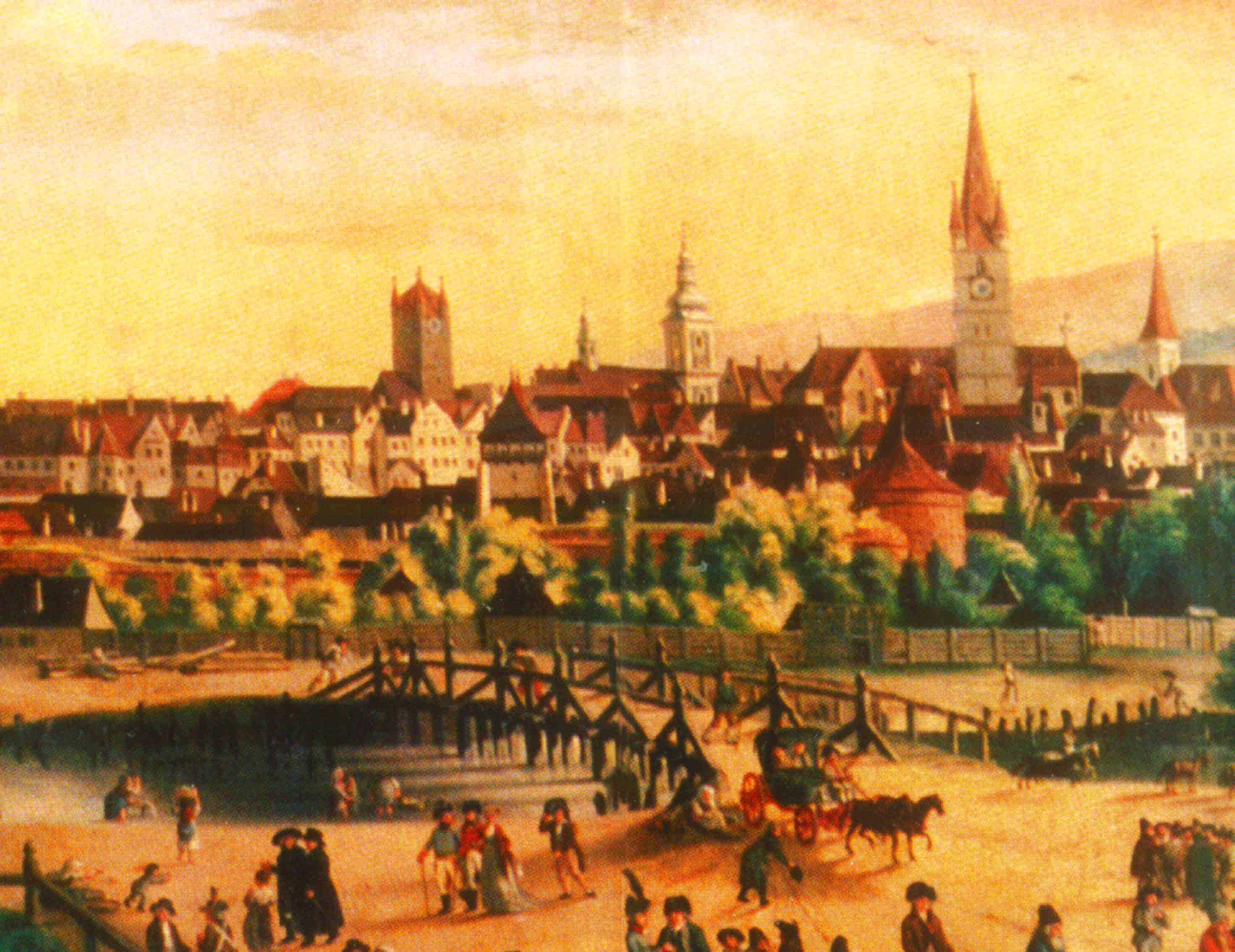 Franz Neuhauser cel Tânăr – Sibiul văzut dinspre nord 1808 (detaliu cu Podul de lemn)