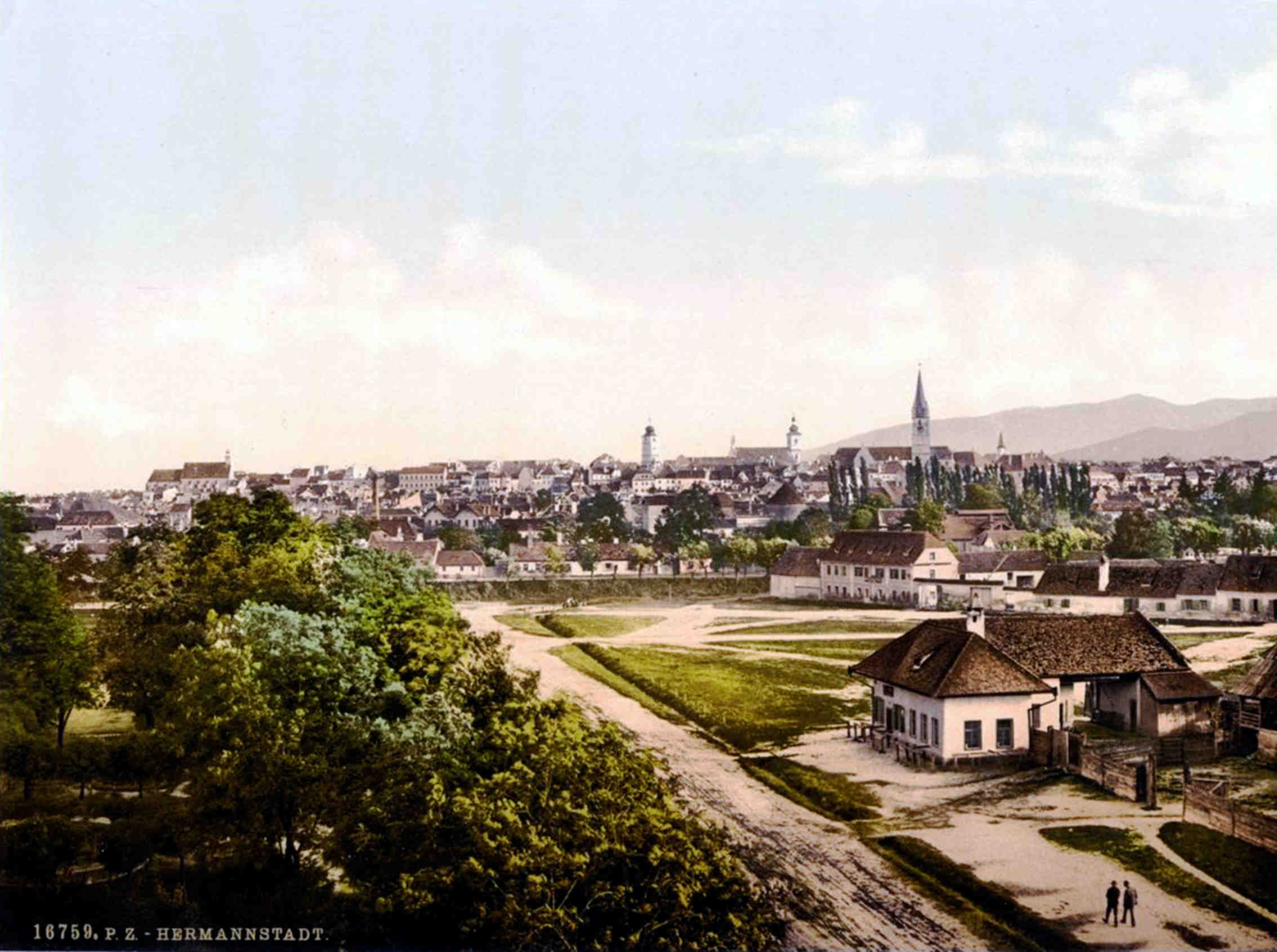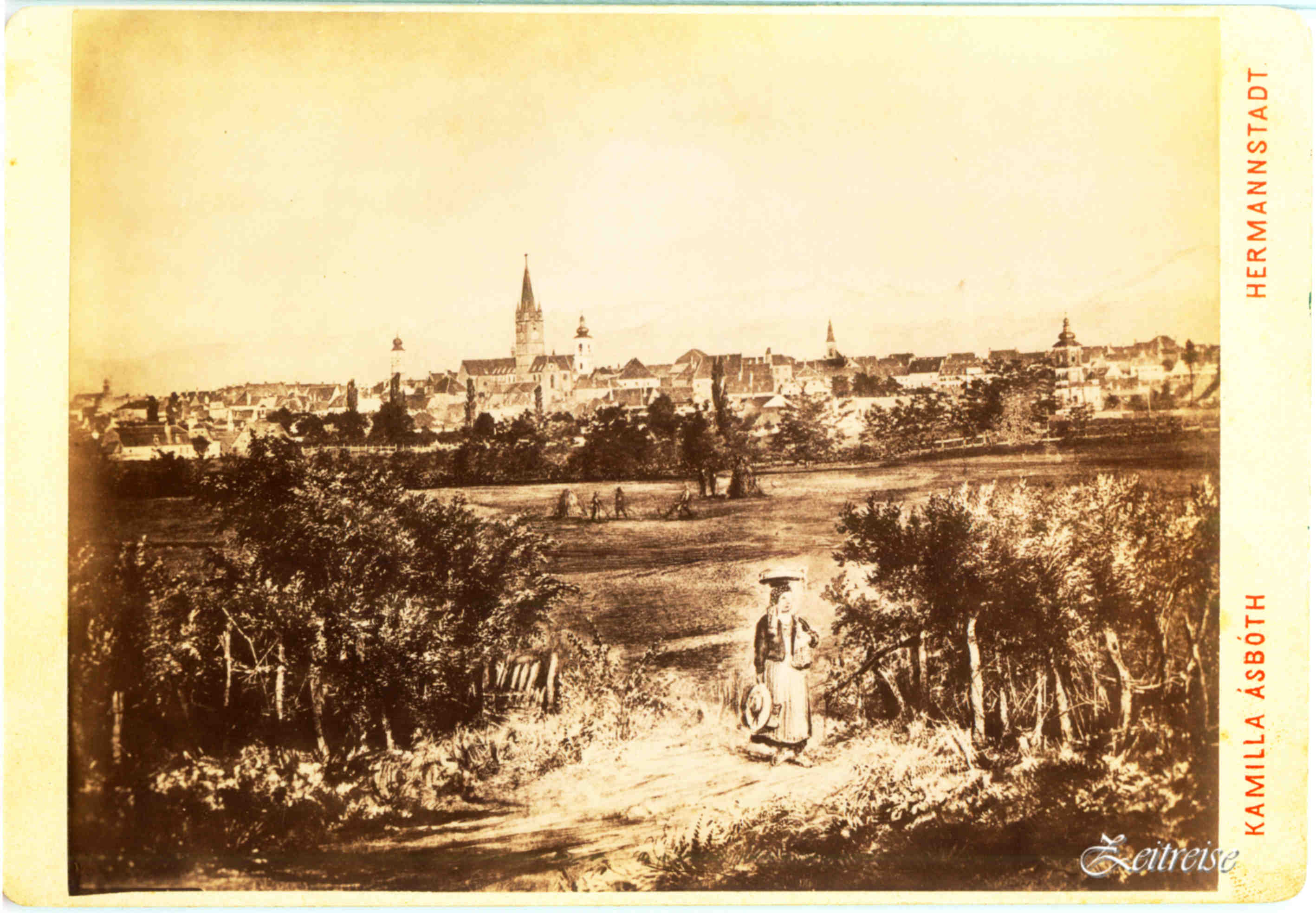 Adriana Moscicki„Sibiul văzut dinspre nord-vest“ – Kamilla Asbóth ca. 1884. Țăranca din Turnișor și persoanele din fundal au fost pictate în clișeu negativ al lui Theodor Glatz din ca. 1860!
