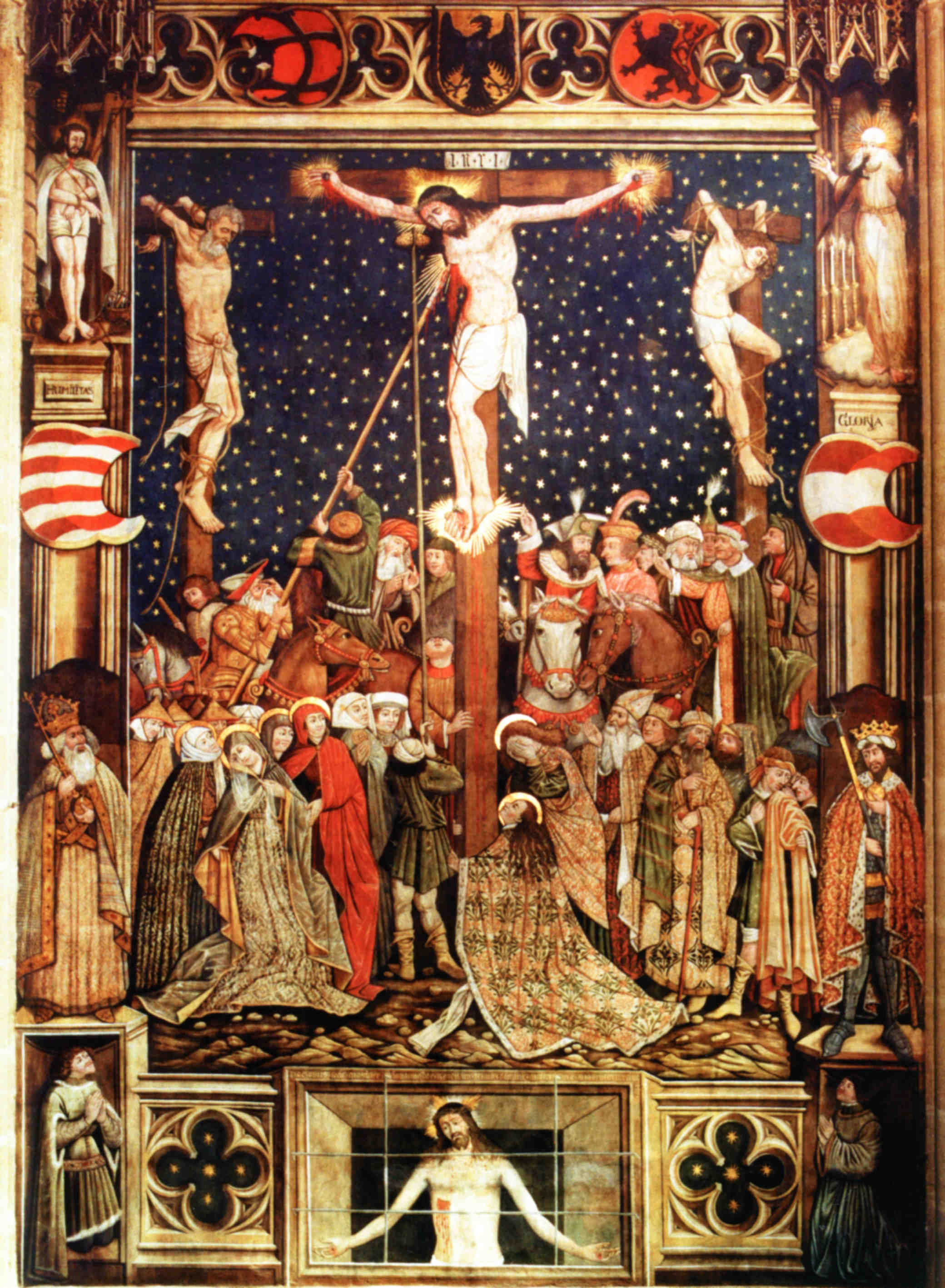 Biserica Evanghelică ”Sfănta Maria” Sibiu. Fresca „Răstignirea“ de Johannes von Rosenau, pictată în 1445. Această frescă a fost restaurată în anii 1989-1990 de pictorul Liviu Ciungan.