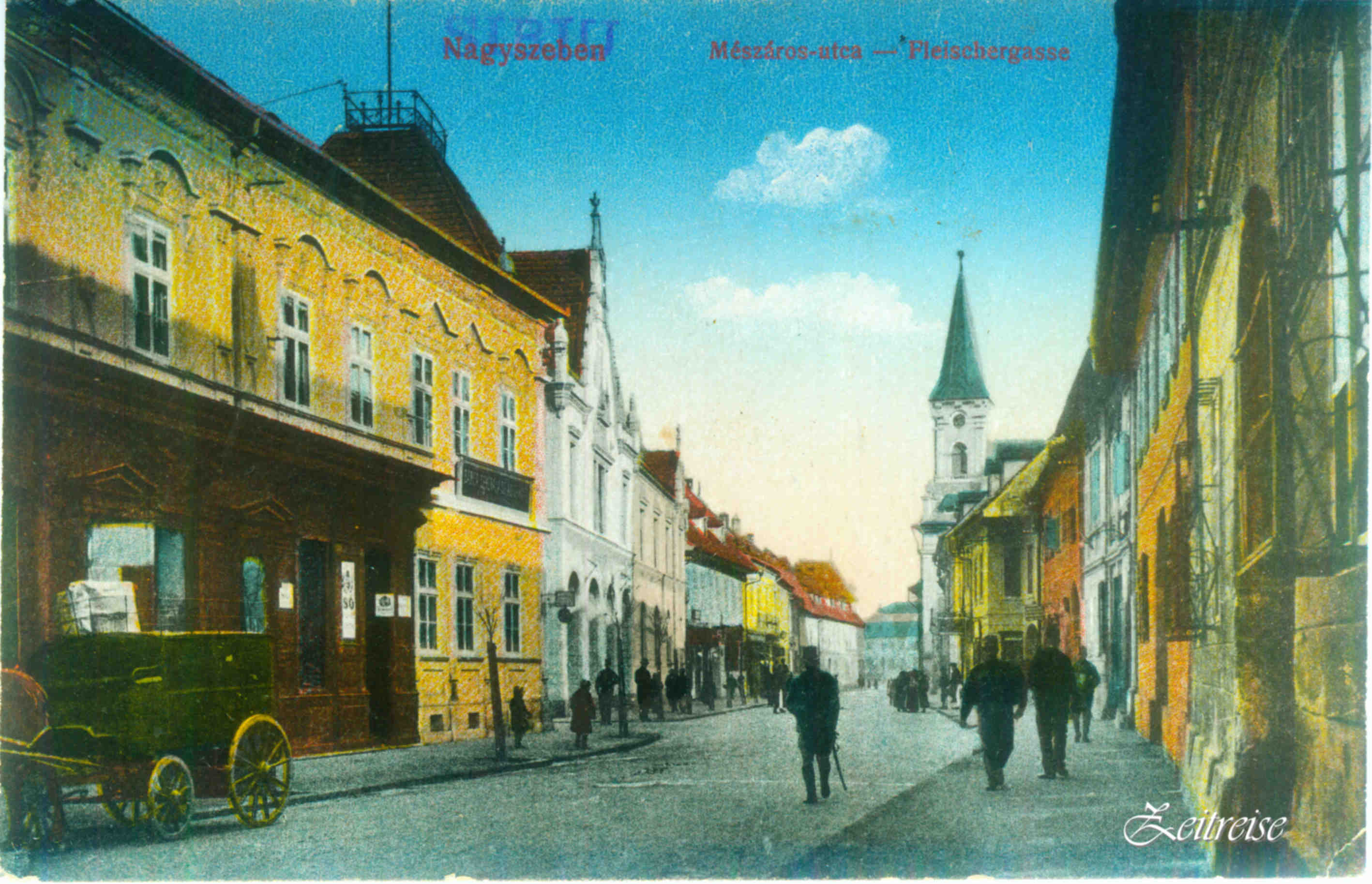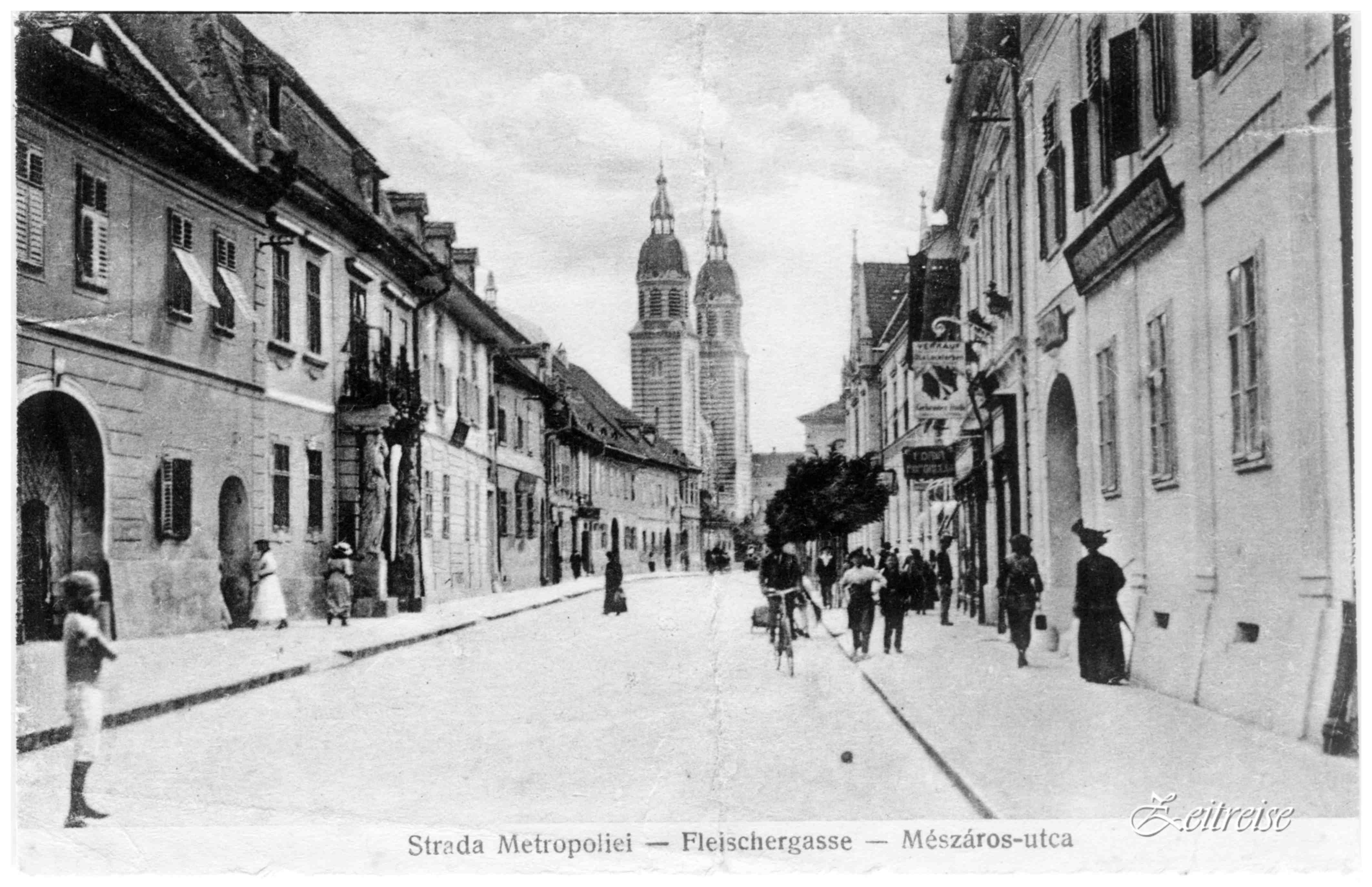 Strada Mitropoliei // Fleischergasse // Mészáros-utca – Carte Poștală din 1918 (tipărită la Budapesta)