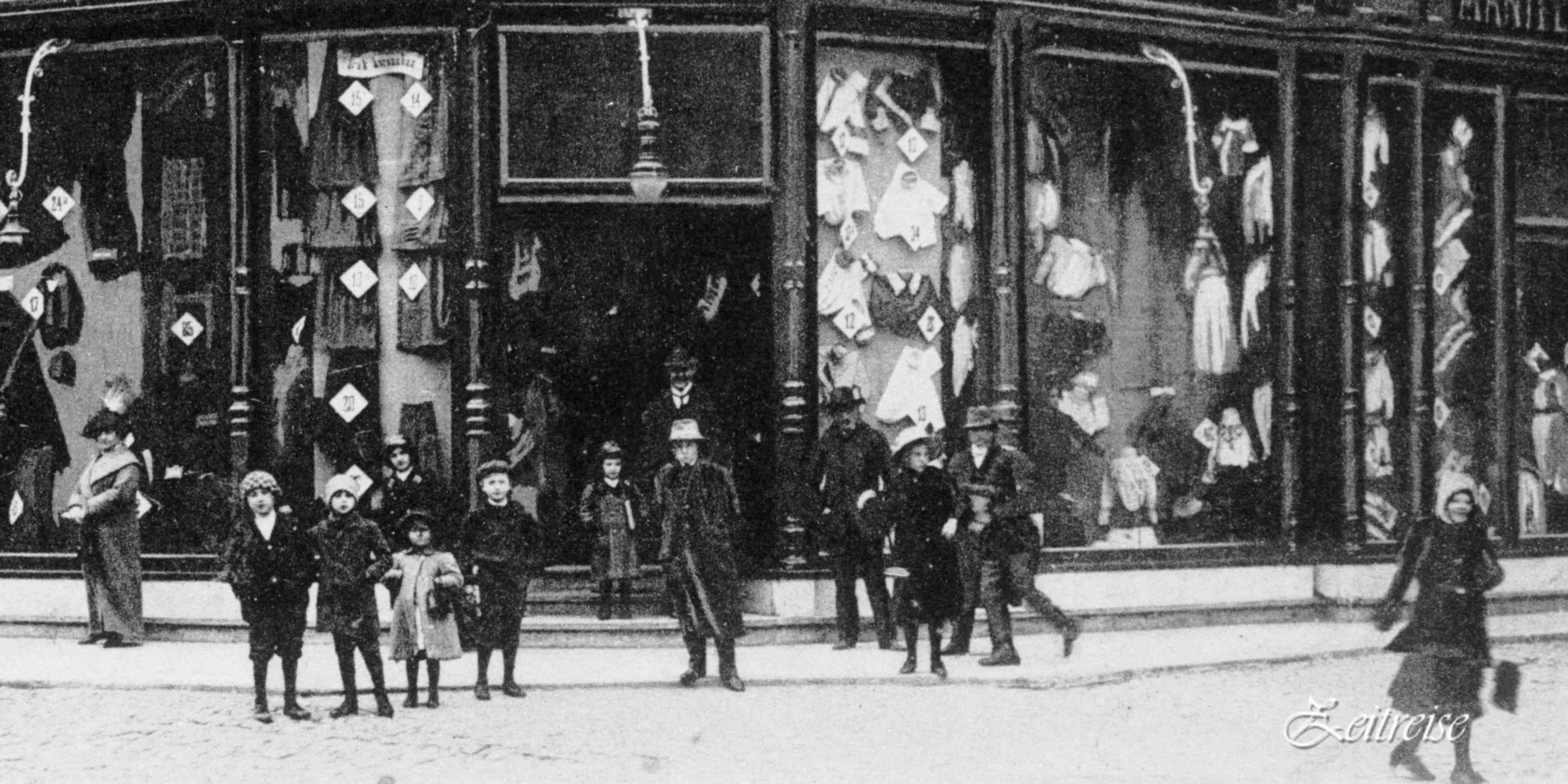 Magazinul de Confecții „Grünberger“ se afla în clădirea din intersecția Str. Bălcescu / Xenopol. Clădirea a fost construită in 1892 (pe locul unde se afla vechiul Han/Hotel „Împaratul Romanilor“ // Hotel zum Römischer Kaiser) pentru Comandamentul corpului de armată // Korpskommando des 12. k. u. k. Armee-Korps. În această clădire se afla o perioadă de timp și Agenția de voiaj CFR. -