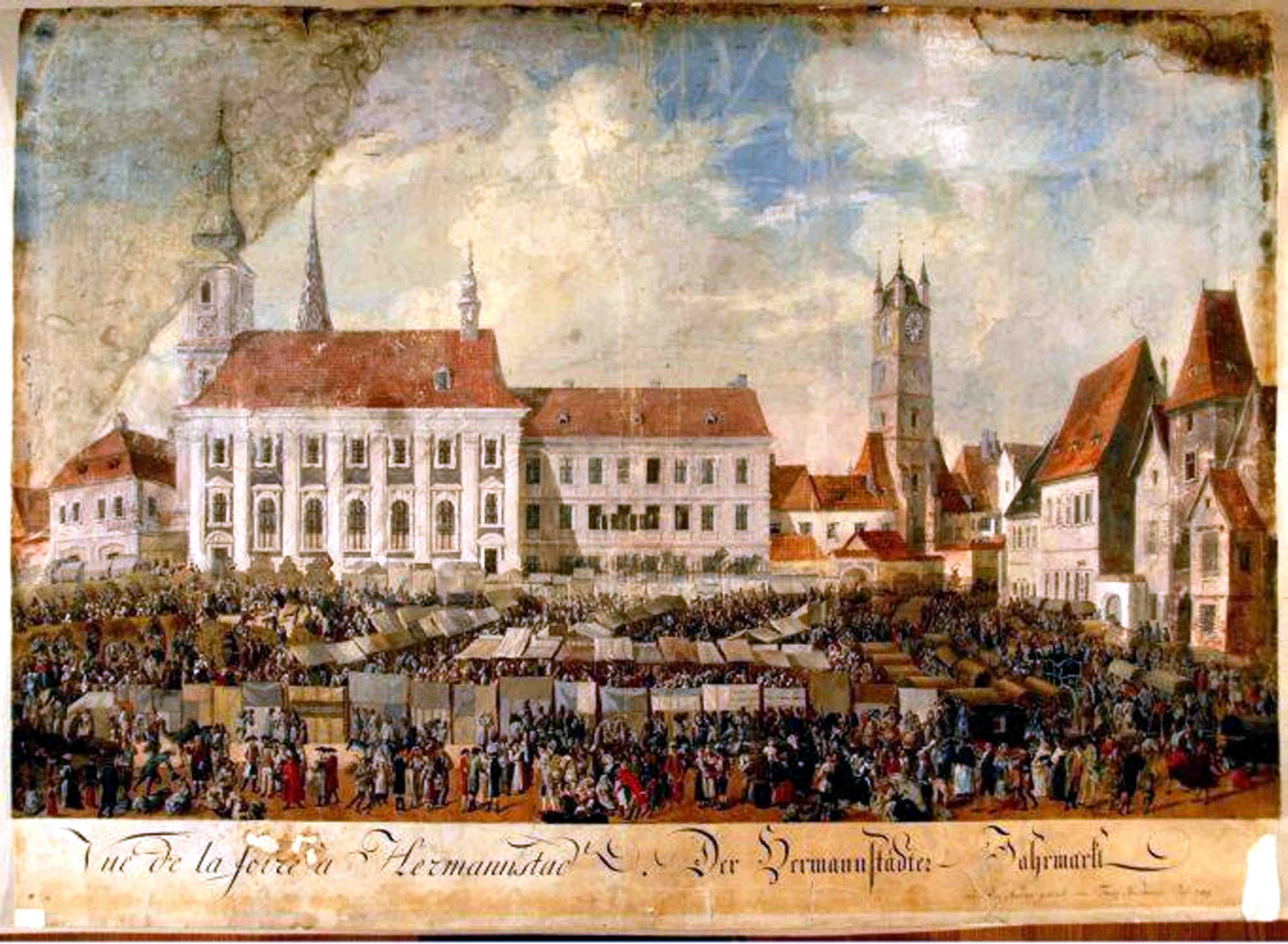 Drumul spre cetate şerpuieşte peste cîmpuri şi coline şi era desigur destinaţia visată şi dorită a omului ce se năştea în afara zidurilor. Cărările umbrite, intinderile săllbatice si verzi, erau desigur vreun vis de Domniţă cuprinsă de amorţeala unei amiezi fierbinţi!„VUE DE HERMANNSTADT VILLE CAPITALE DE TRANSILVANIE“