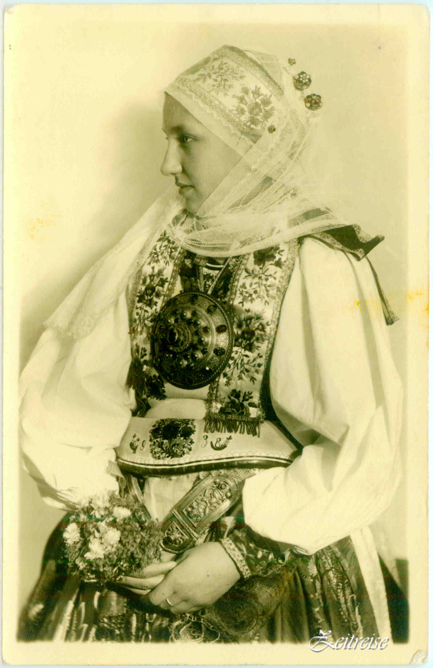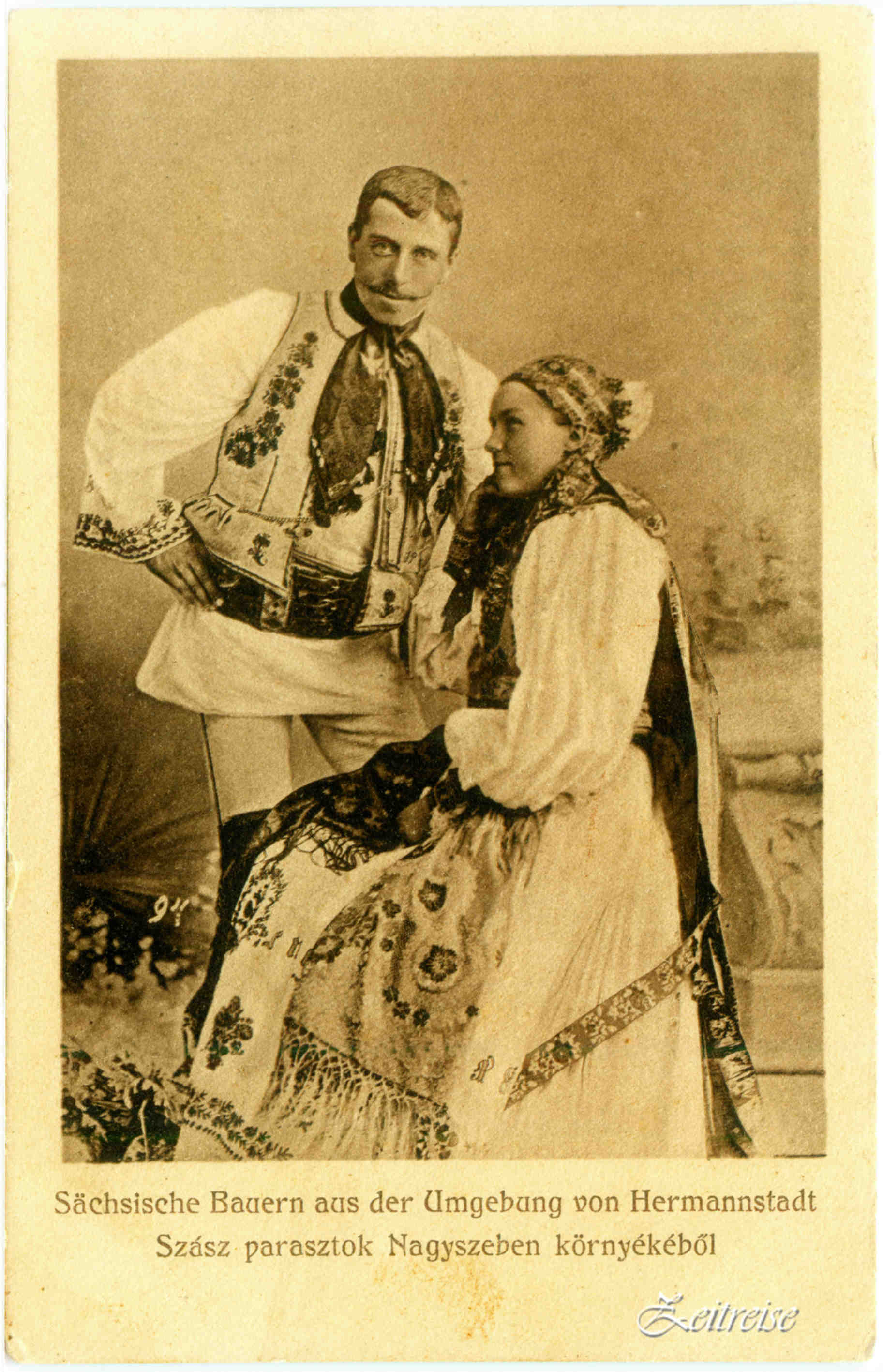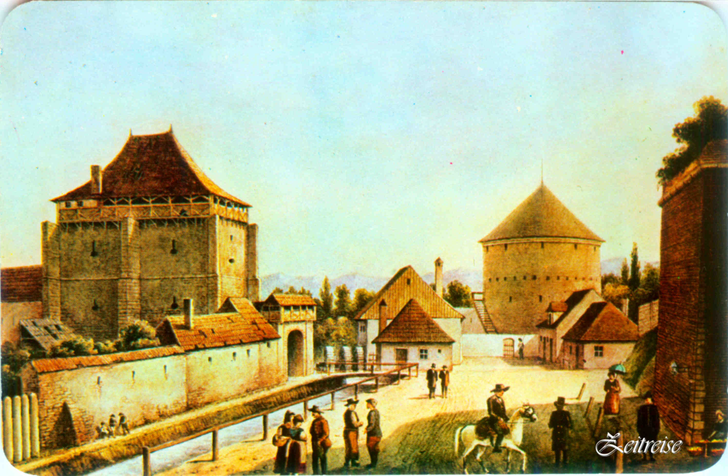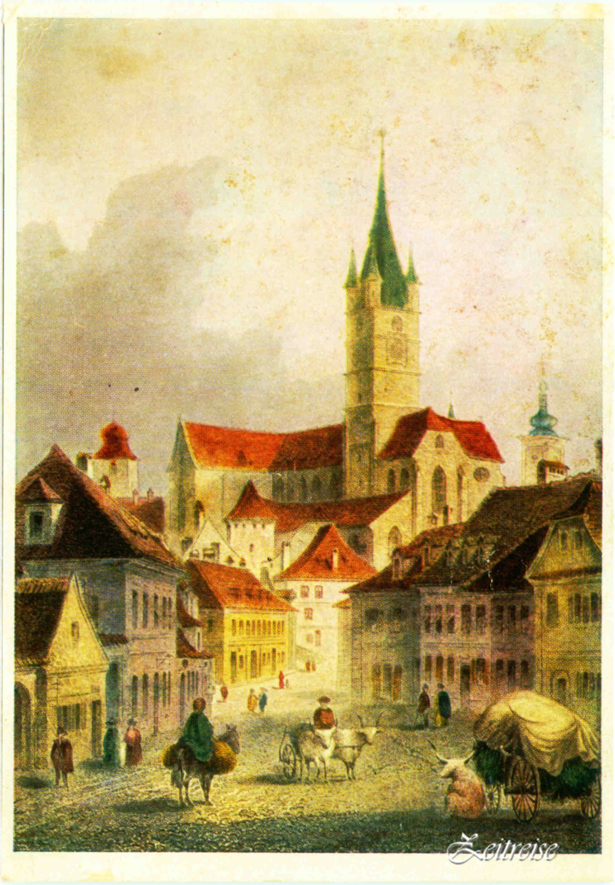 Strada Turnului – Carte Poștală după o gravură colorată din 1864 // Saggasse – Ansichtskarte nach einem kolorierten Stahlstich von 1864