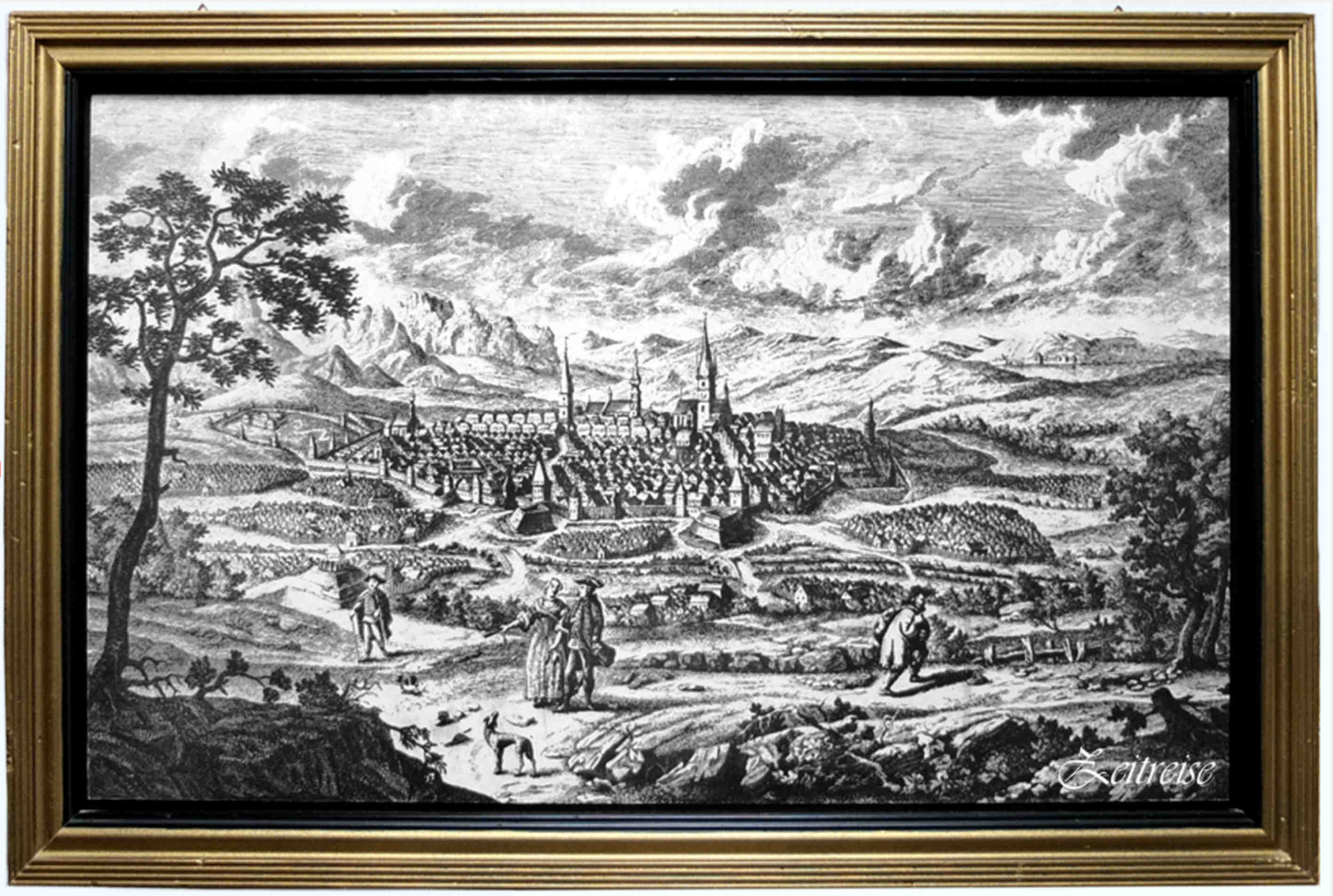 O stampă, gravură, litografie, pictură, fotografie, dincolo de document istoric este o poveste. Iată oraşul nostru la sfârşitul secolului al XVIII-lea“, cetate măreaţă cu ziduri, turnuri şi bastioane. Drumul pînă la ea îl străbaţi în trasură, căruţă ori pe spatele calului sau asinului, sau chiar pe jos.
