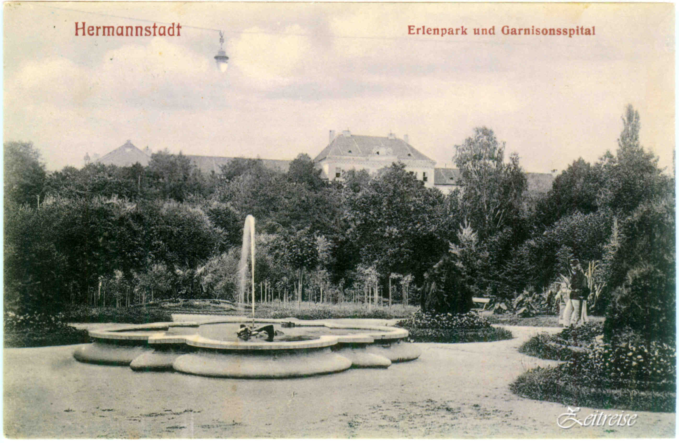 Parcul Sub Arini și Spitalul Militar de Garnizoană // Erlenpark und Garnisonsspital (Carte Poștală circ.1912)