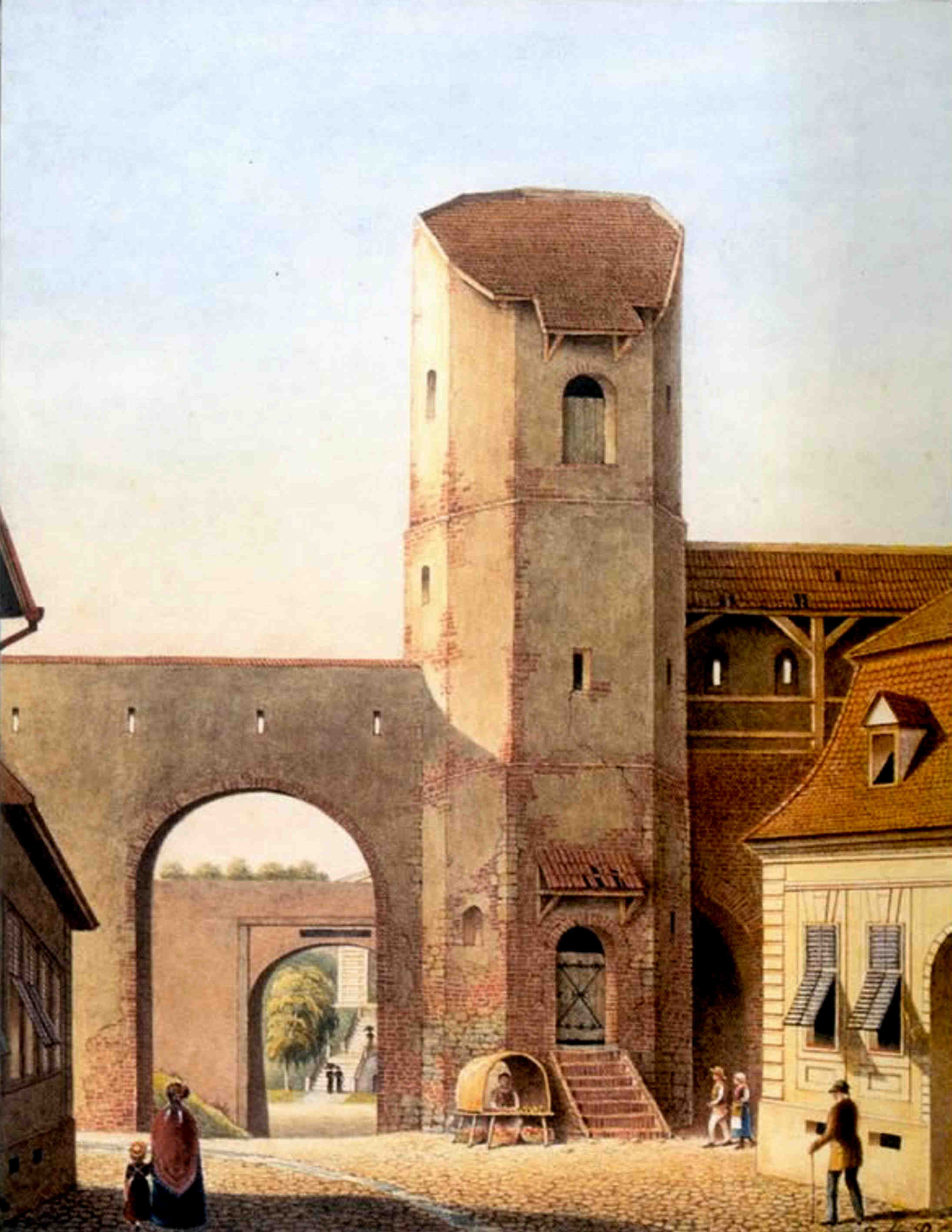 Iata că ea se mai numește și Poarta Promenadei!!! Poarta Leșurilor și Poarta Promenadei – vedere intra muros – demolata in 1854 – Johann Böbel