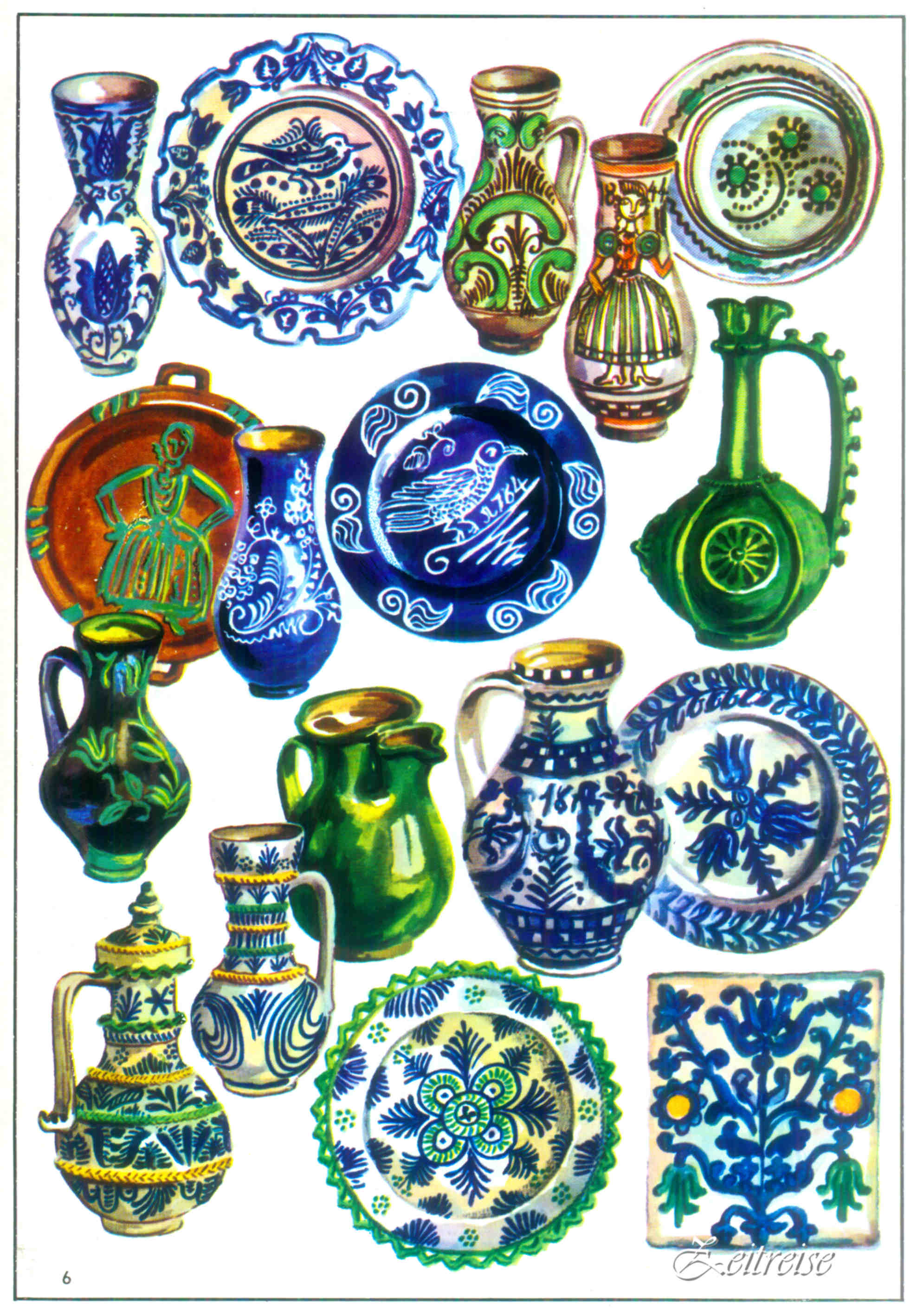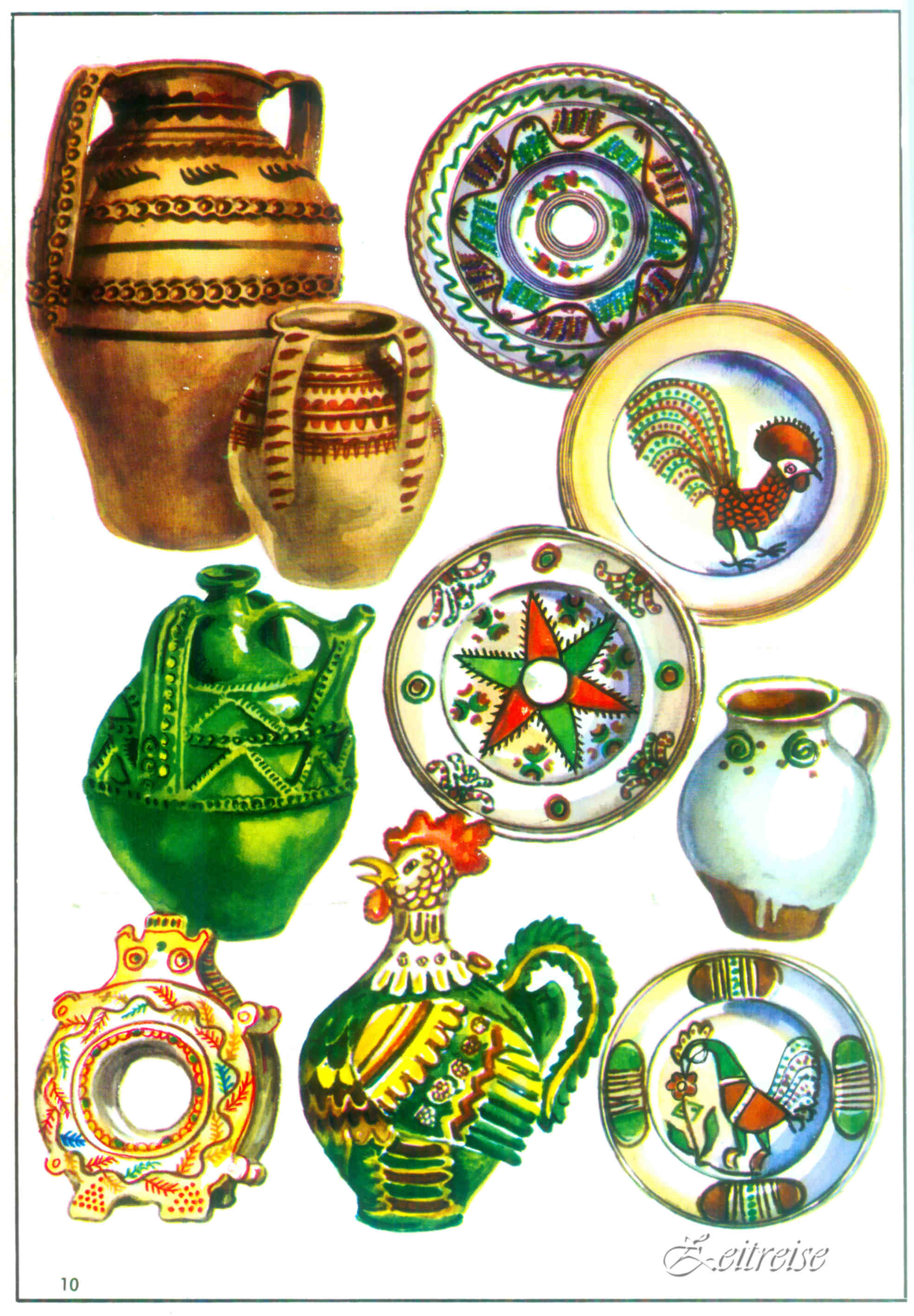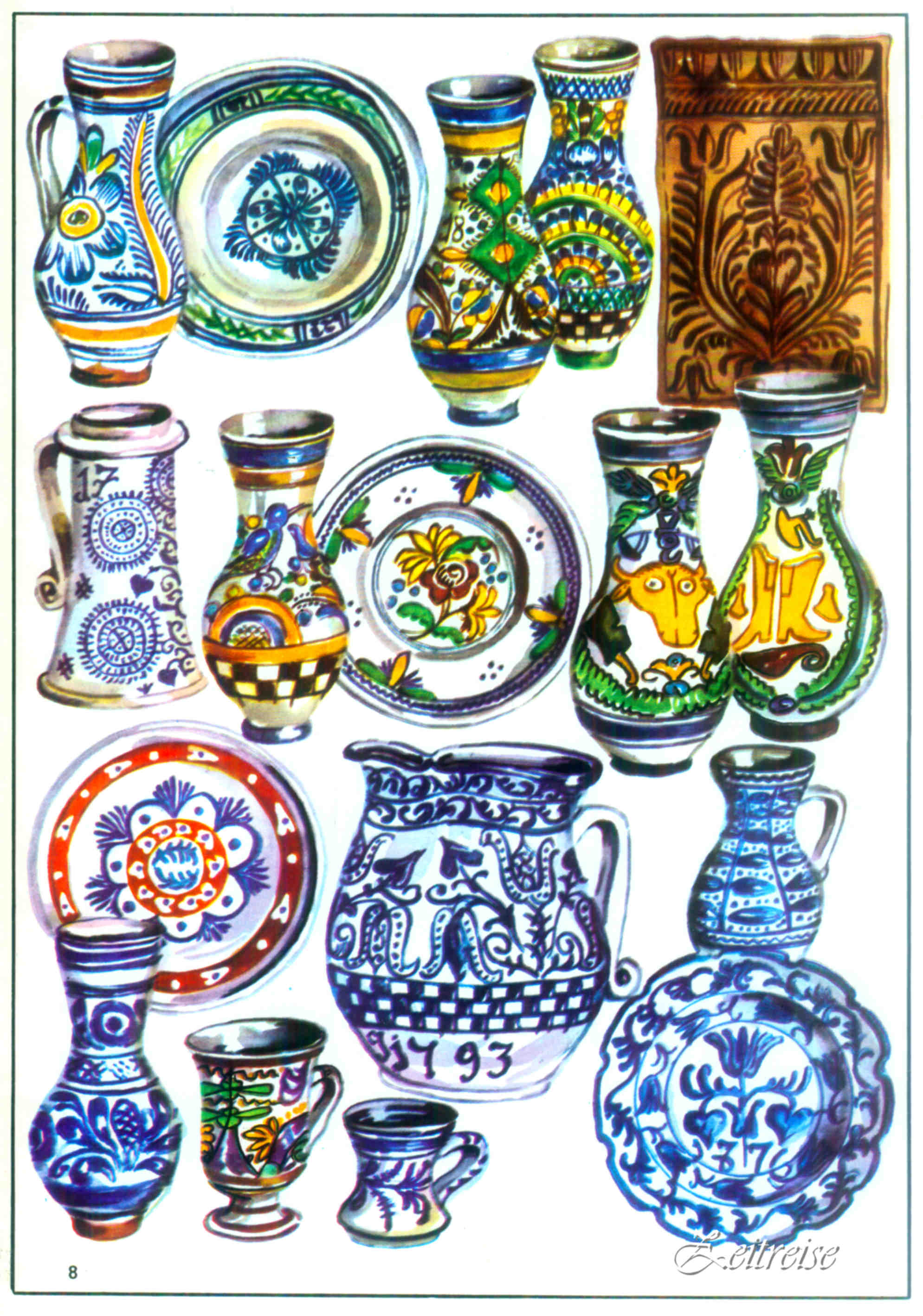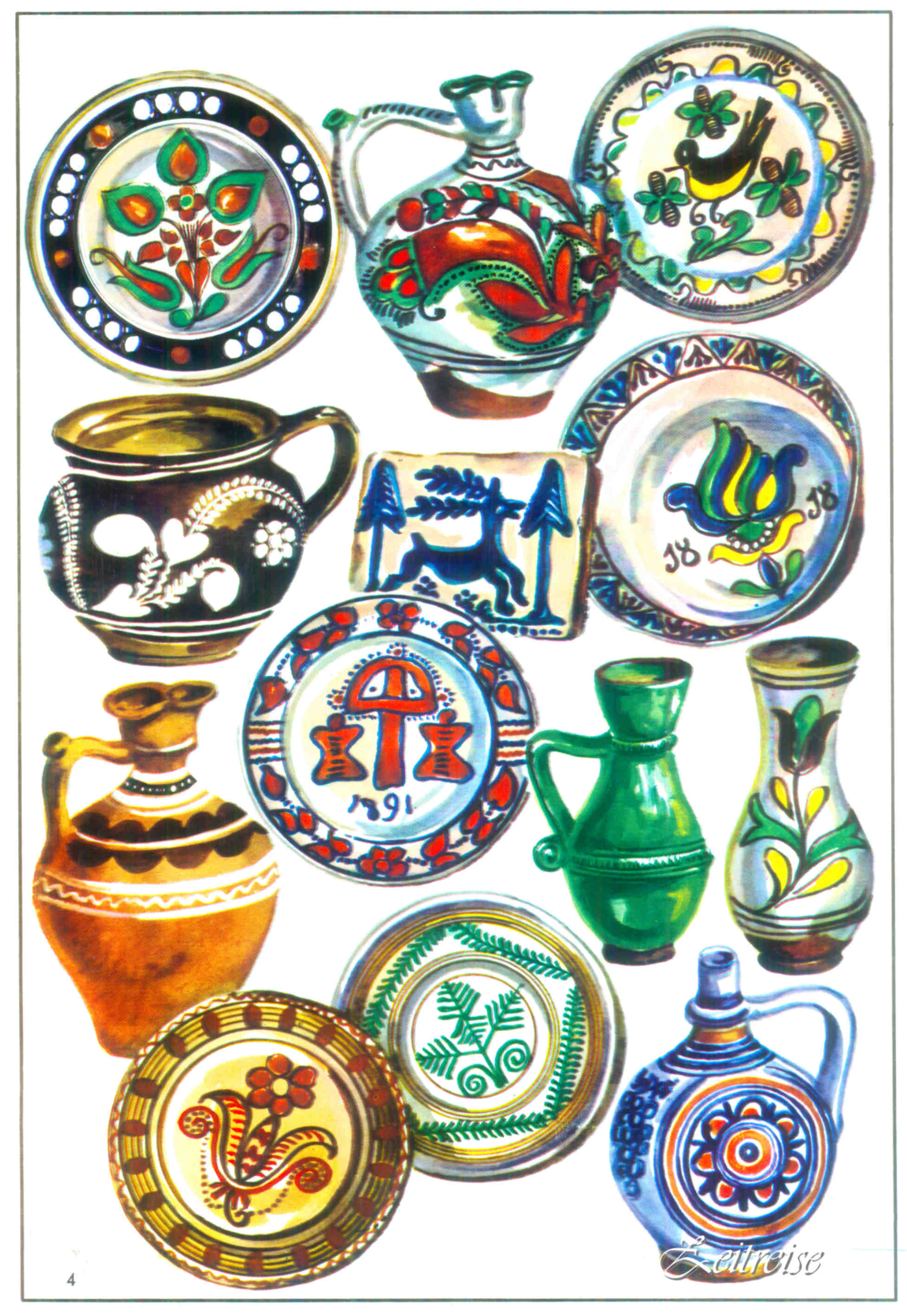 pentru că azi se deschide Târgul Olarilor… Toamna intră în Cetate strălucind în glazura oalelor pîntecoase… Ceramica din Transilvania și Banat – Acuarele de Juliane Fabritius-Dancu (ca.1970)