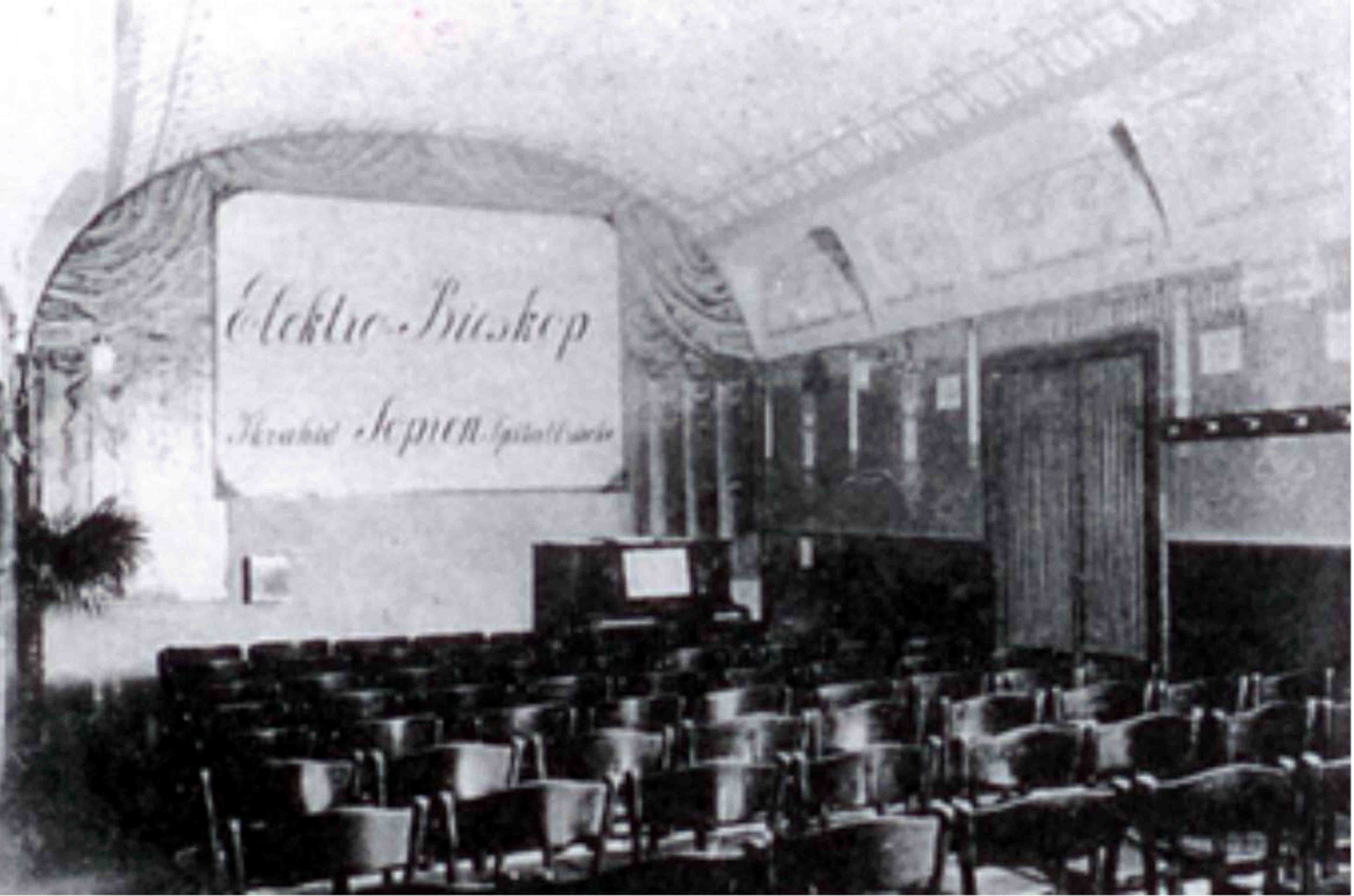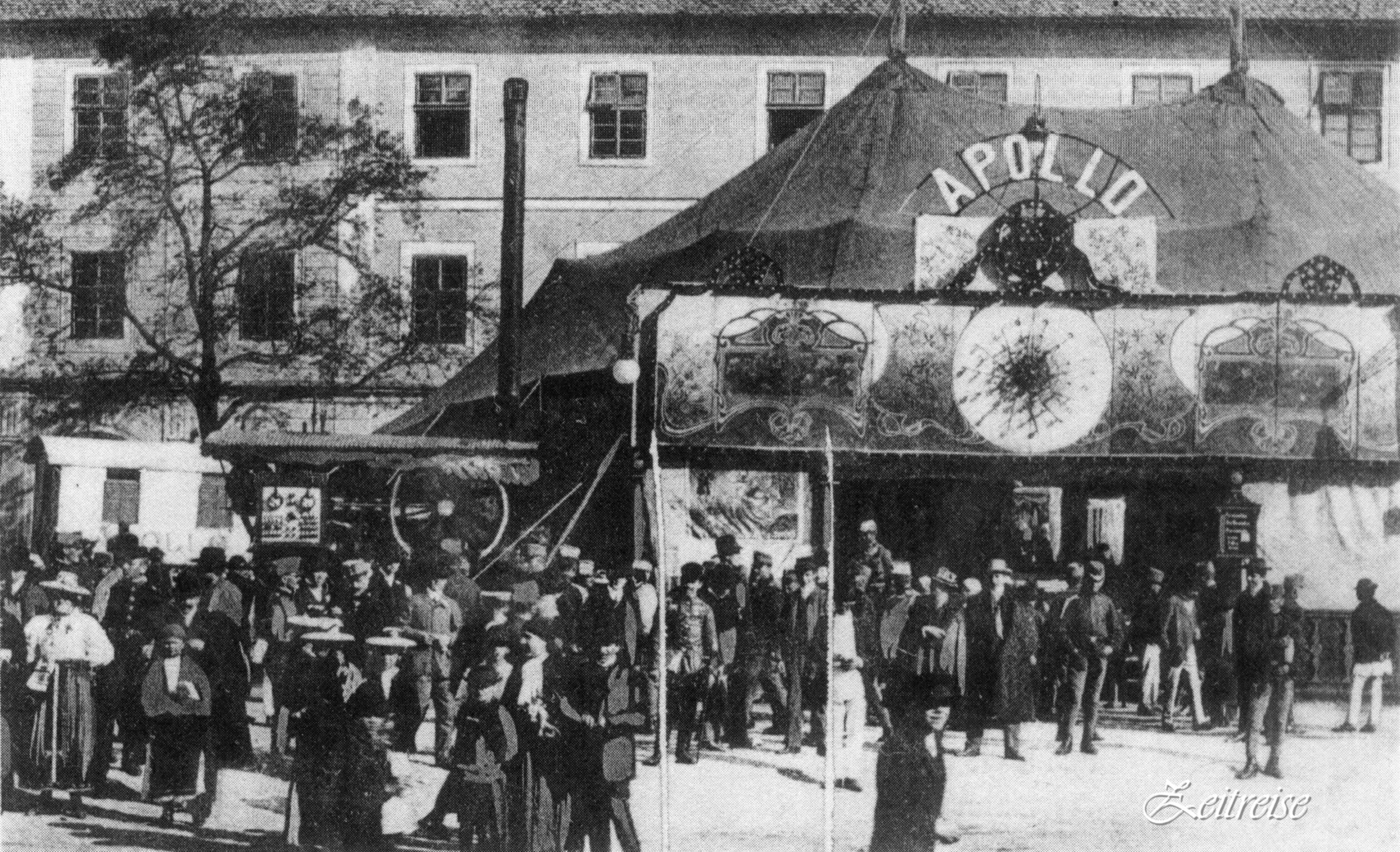 Cinematograful „Apollo-Bioskop“ al lui István Emil Tóth in fața fostei Cazărmi 90 din Piața Unirii // Hermannsplatz în anul 1909 (sursa foto Konrad Klein)