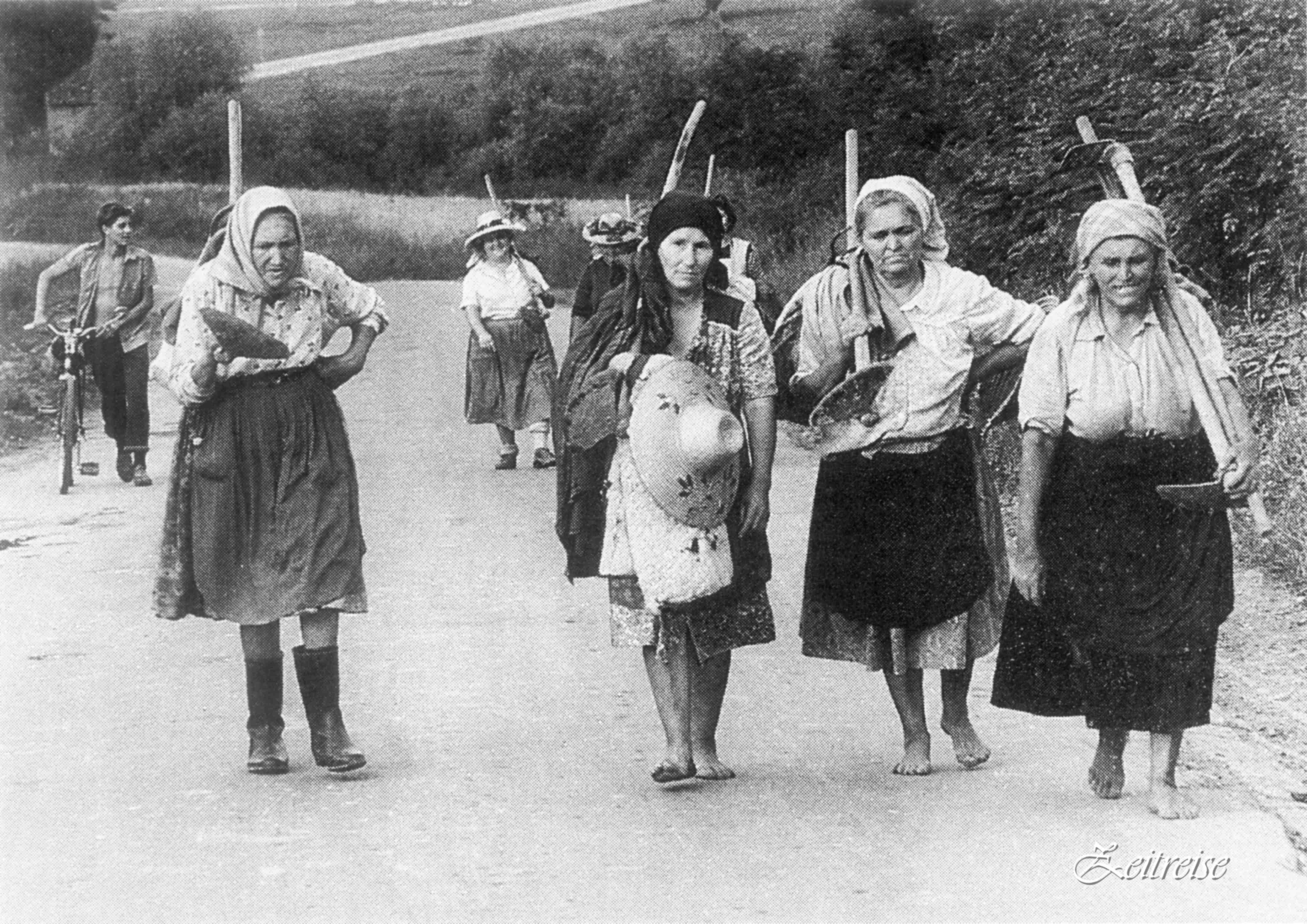 Întoarcere de la câmp – femei din zona Vurpăr / Burgberg – anii ’80 – sursa foto: W.Knape