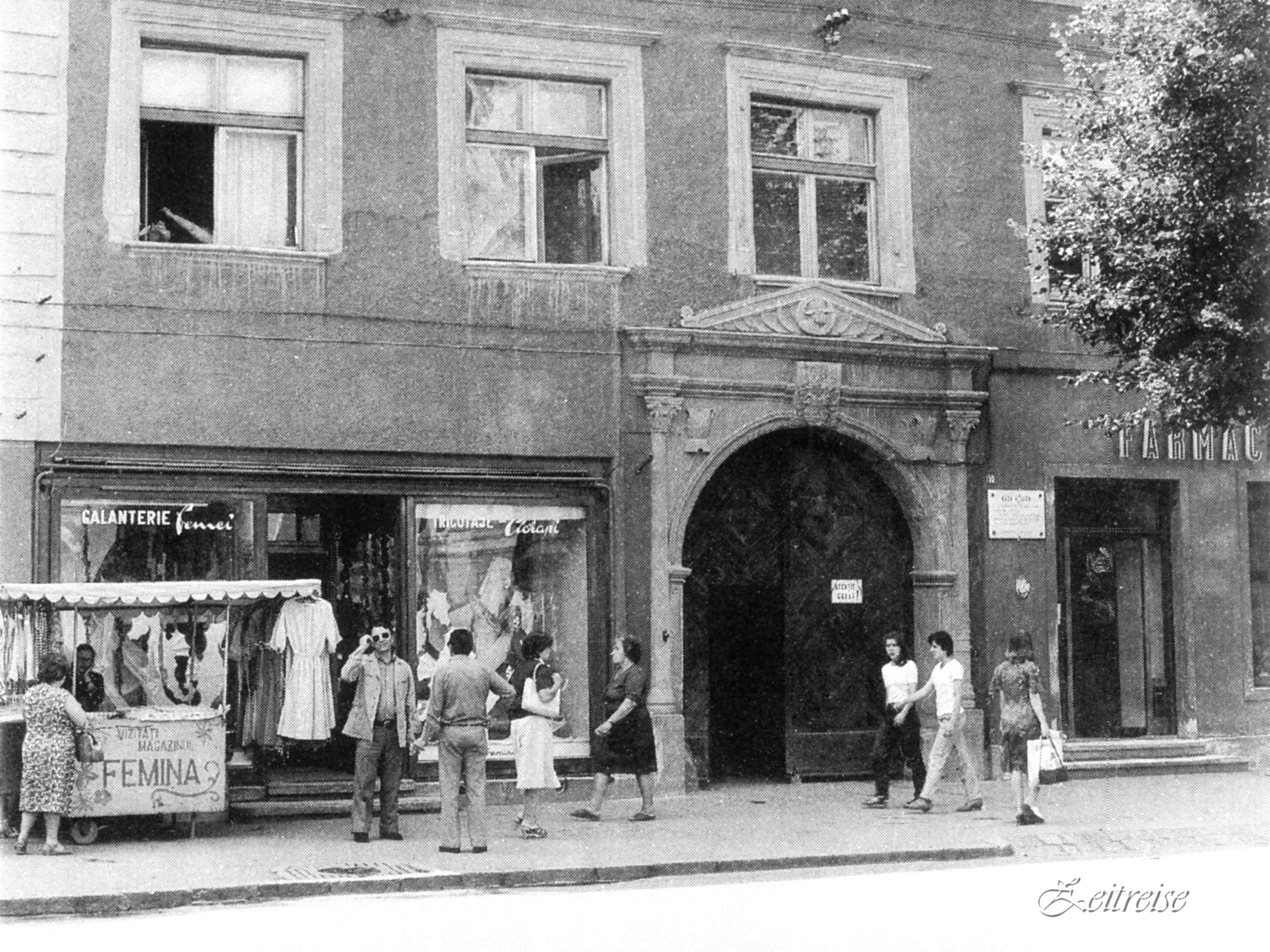 Piata Mica nr 25 – anii ’80 – În 1826 Samuel Filtsch îşi deschide aici o tipografie, o editură şi o librărie. În această clădire a fost tipărită în 1828 Gramatica Românească a lui Ion Heliade-Rădulescu