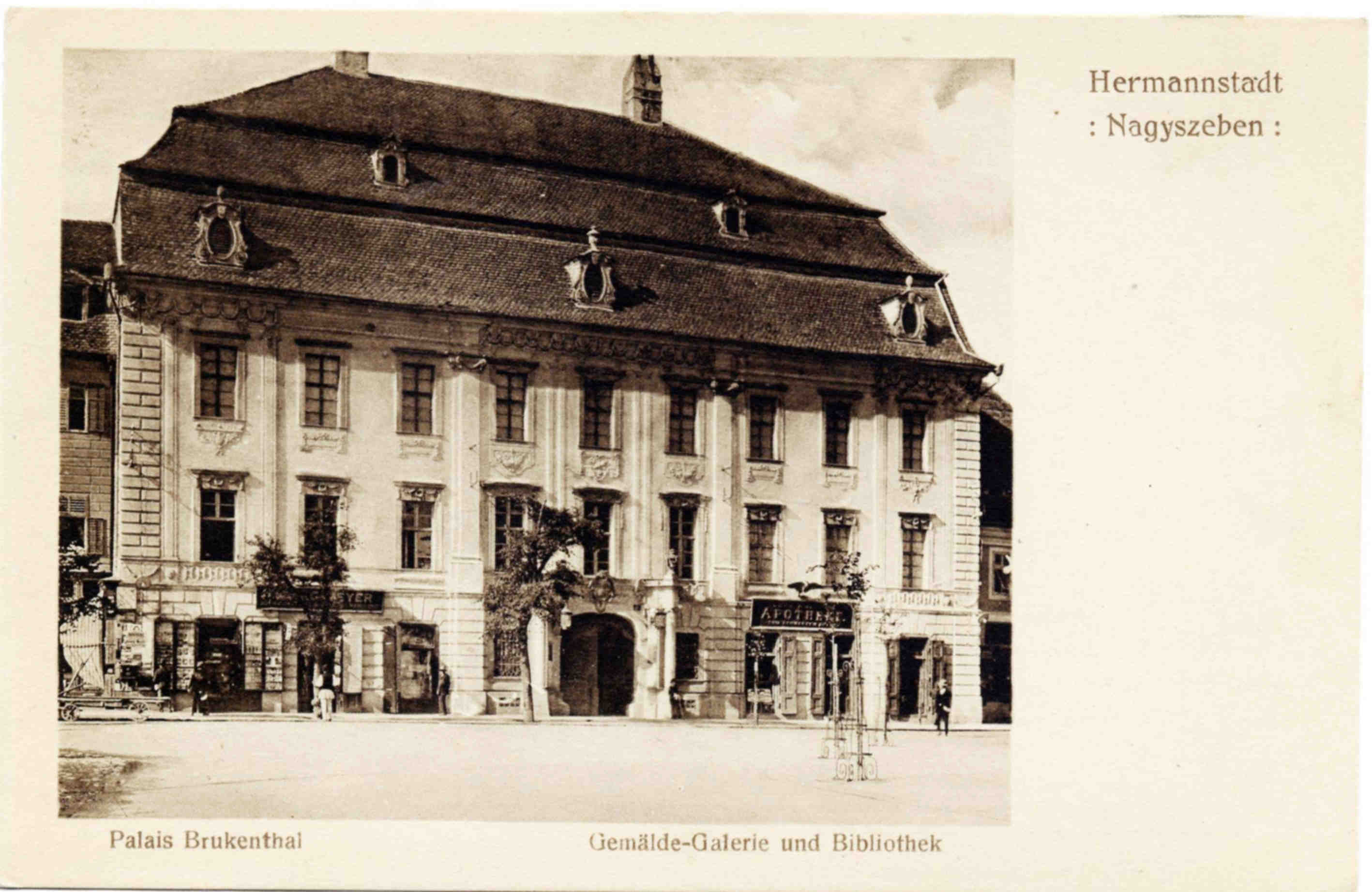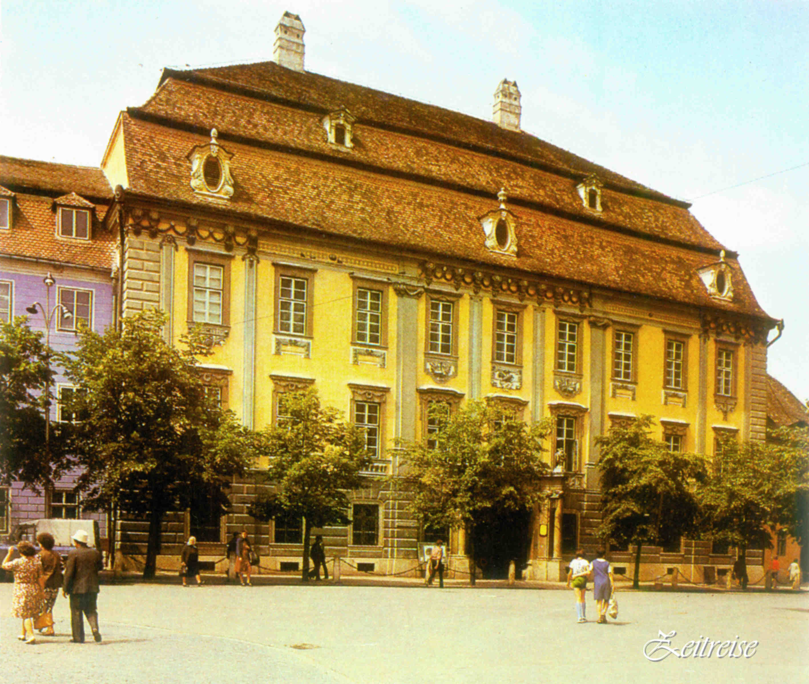 Palatul Brukenthal din Piaţa Mare construit de către Guvernatorul Transilvaniei Samuel von Brukenthal. Muzeul Brukenthal a fost şi primul muzeu din România, inaugurat 1817 (fotografie din 1985 – sursa foto: W.Knape)