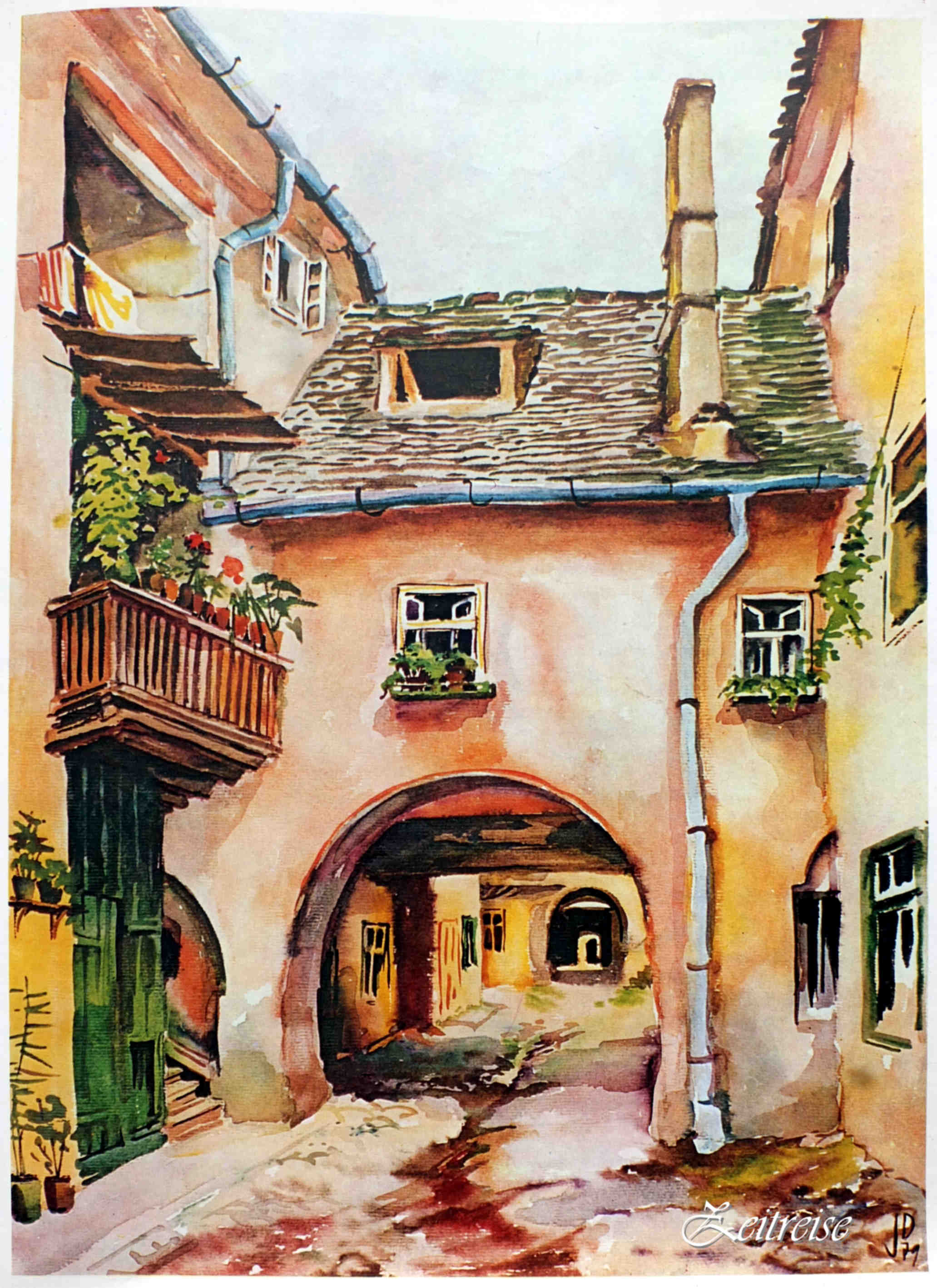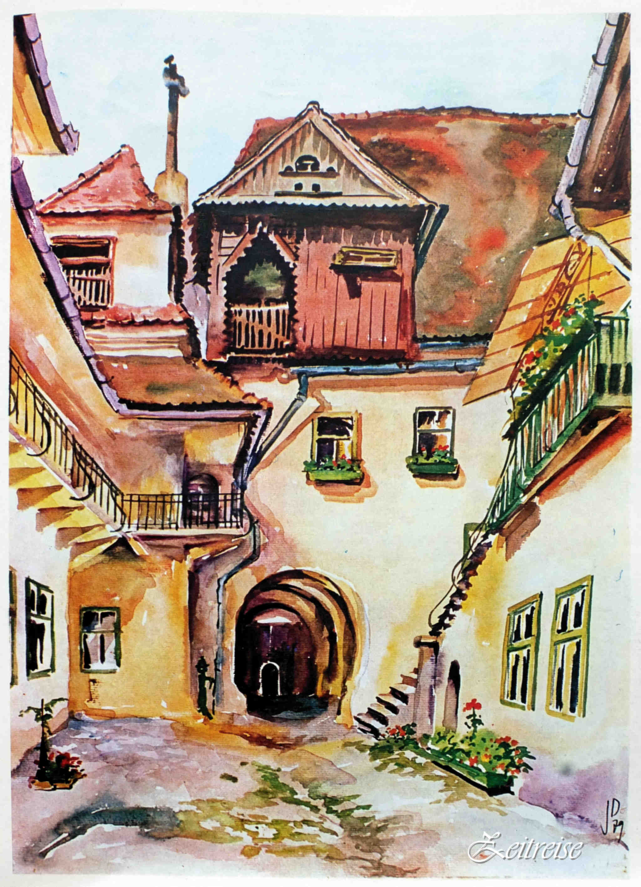 casa din poveste… Curtea interioară Casa Mövert str.Samuel von Brukenthal nr.1 – Acuarele de Juliana Fabritius-Dancu
