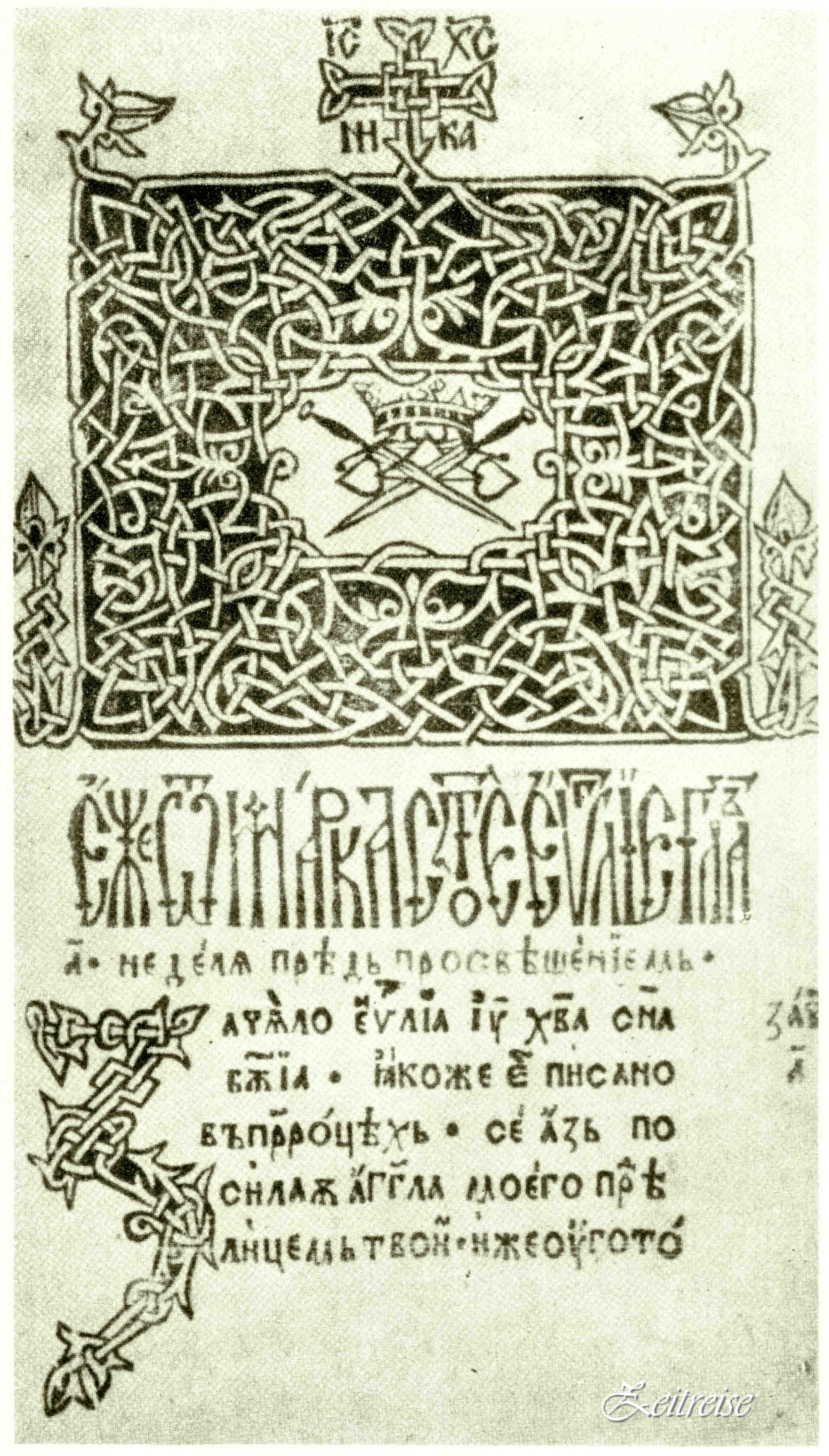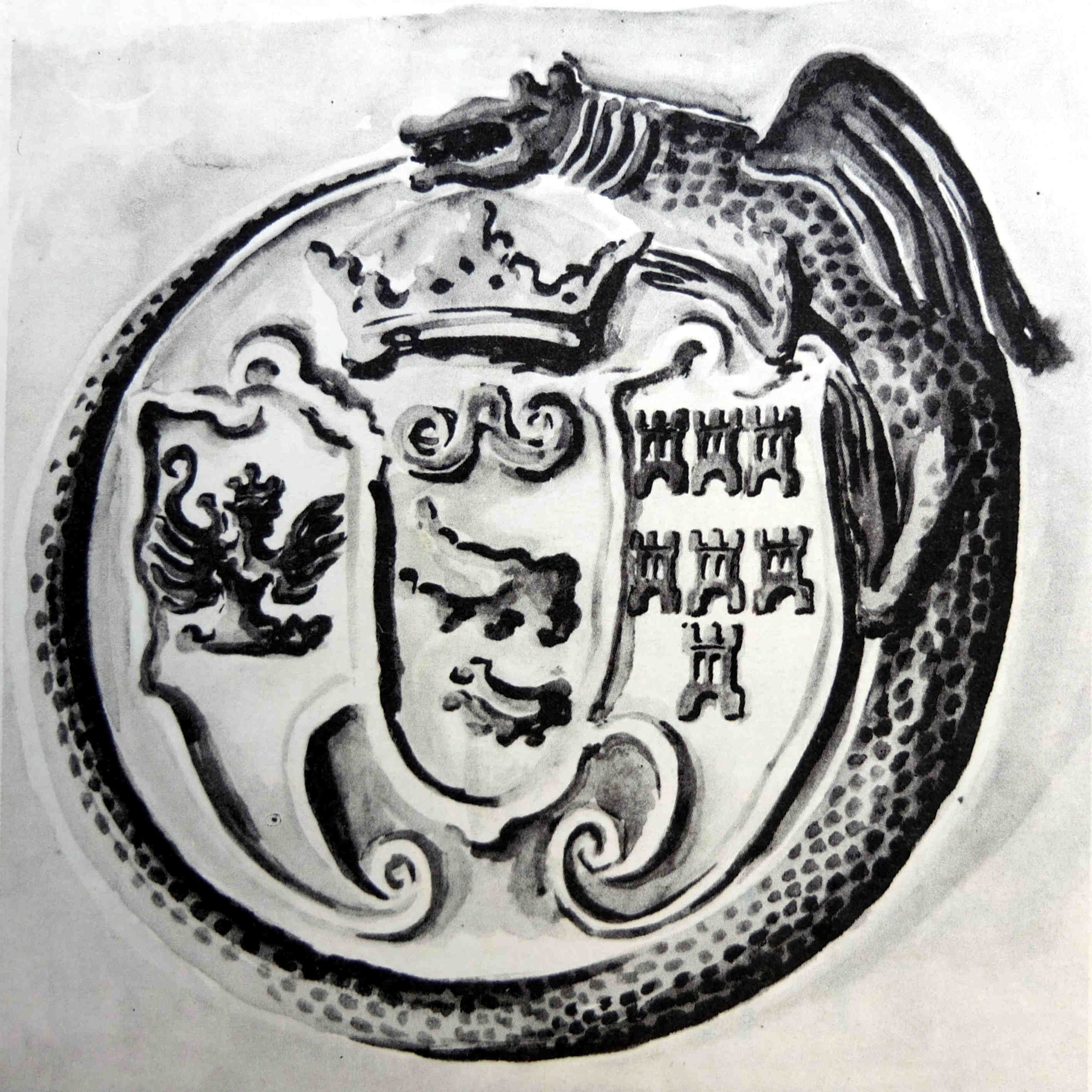 Pagină cu stema Sibiului din Tetraevangheliarul lui Filip Moldoveanu