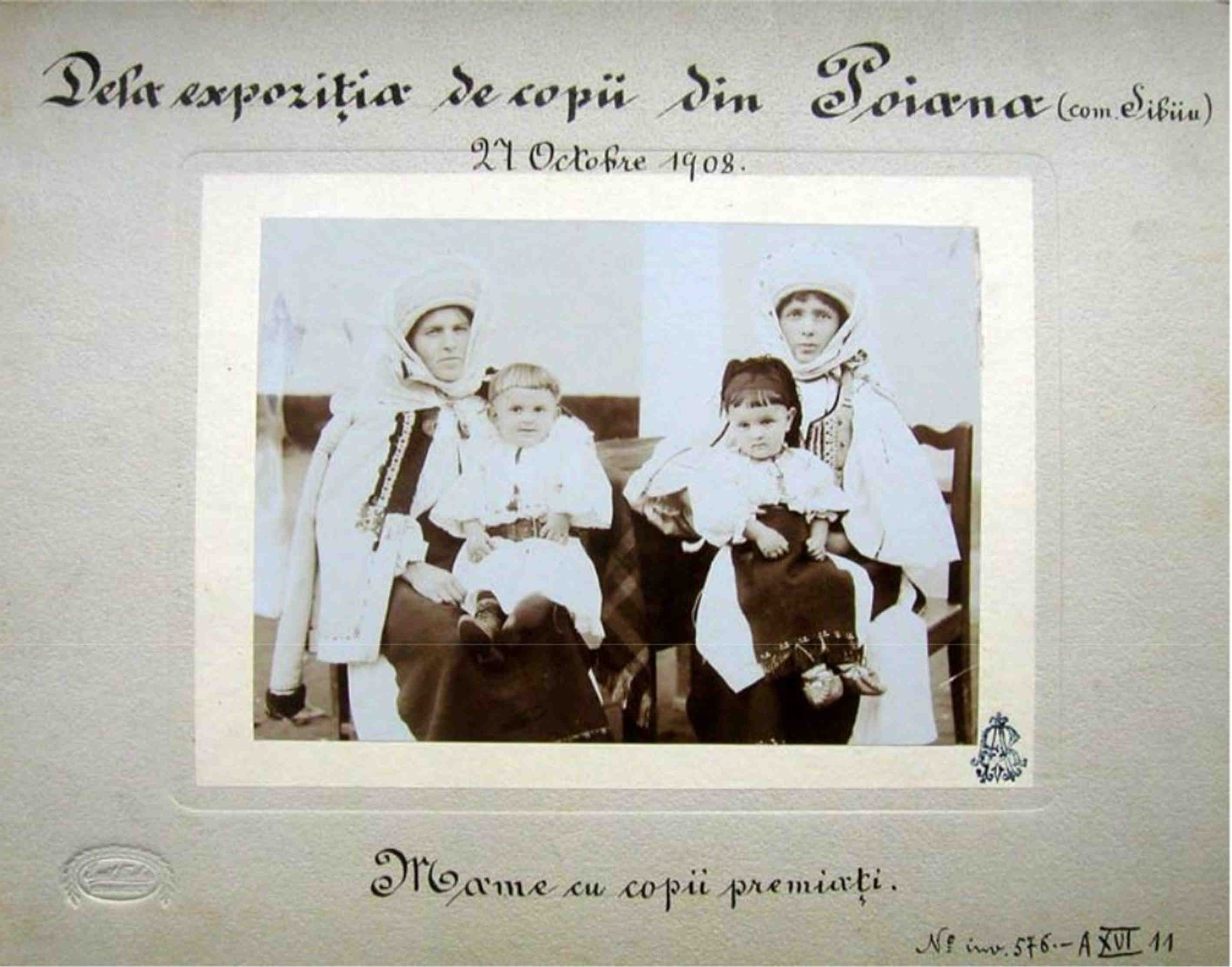 Mame cu copii premiati – „Dela expozitia de copii din Poiana 27 octombrie 1908“ – Fotografie de Emil Fischer (sursa foto: Adrian-Silvan Ionescu)