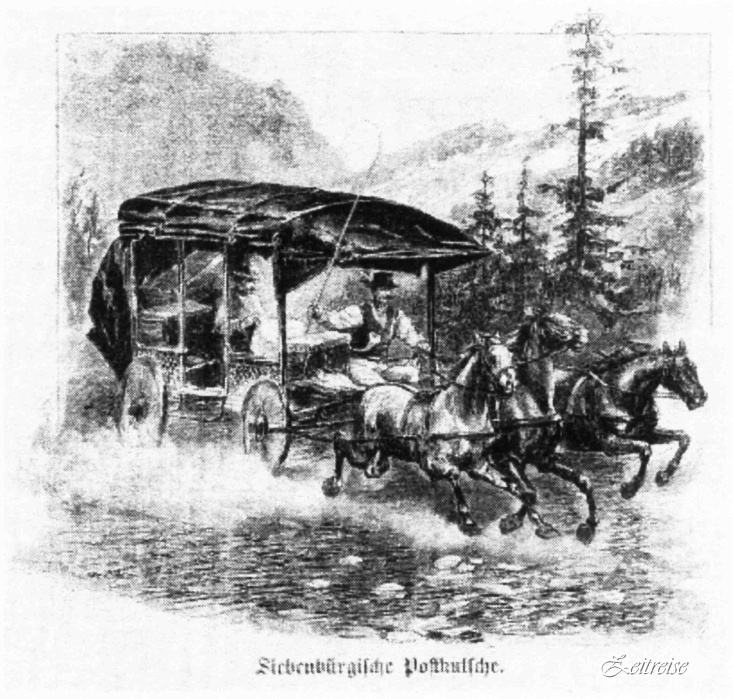 Diligenţa din Viena şi Budapesta sosea o dată pe lună în Cetate, încărcată cu pachete şi călători. Fiecare pasager avea dreptul la cel mult 25 de kg, excesul se plătea scump, exact aşa cum facem şi noi azi… la avion! Pentru confortul călătorilor, diligenţele dispuneau de fotolii tapetate, cu arcuri flexibile pentru atenuarea zdruncinăturilor. Diligenţele erau trase de 4 cai, mînaţi de şeful surugiu ce trona din înălţimea băncii de lemn în faţa caroseriei. Alături stătea un însoţitor ajutător. Numărul călătorilor varia între 6 şi 8 persoane şi, mă gîndesc, puteau deveni adevăraţi prieteni ori duşmani pe viaţă în intimitatea unei asemenea călătorii. Opt zile rămînea diligenţa în Cetate, călătorii se împrăştiau pe la hanuri, familii ori casele lor. Alţii le luau locul la întoarcere şi alte poveşti se năşteau în diligenţa plecată la drum…
