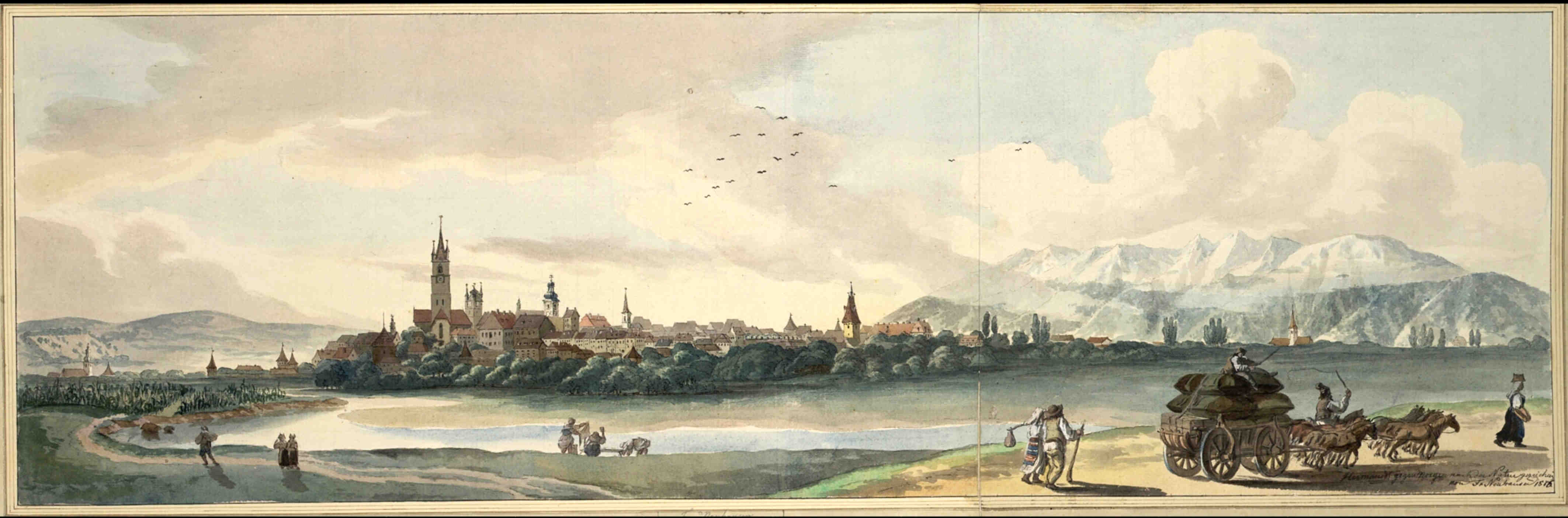 sursa grafică: „Alt-Hermannstadt“ – Pictură colorată, detaliu din Colecția de desene Leonhard