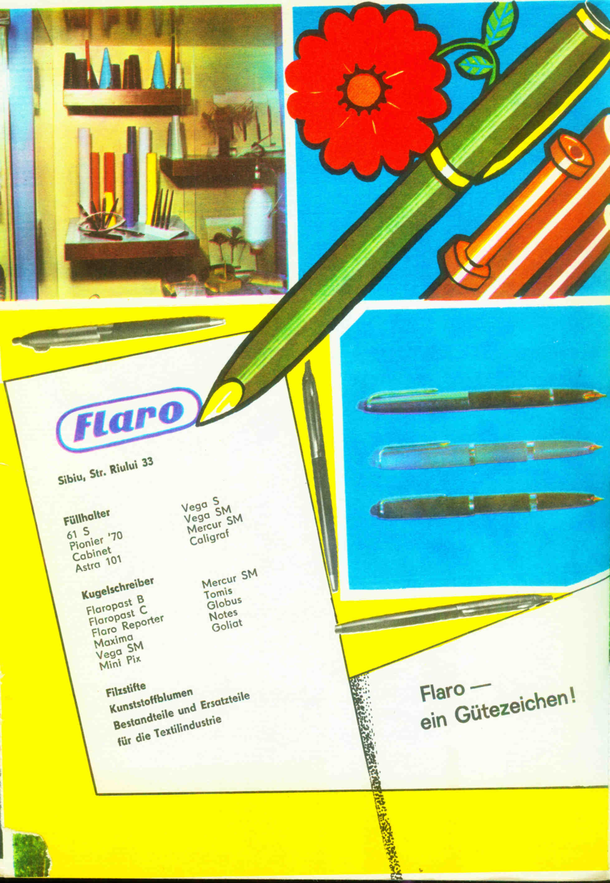 Reclame „FLARO“ Sibiu din almanahuri (1971-1980)