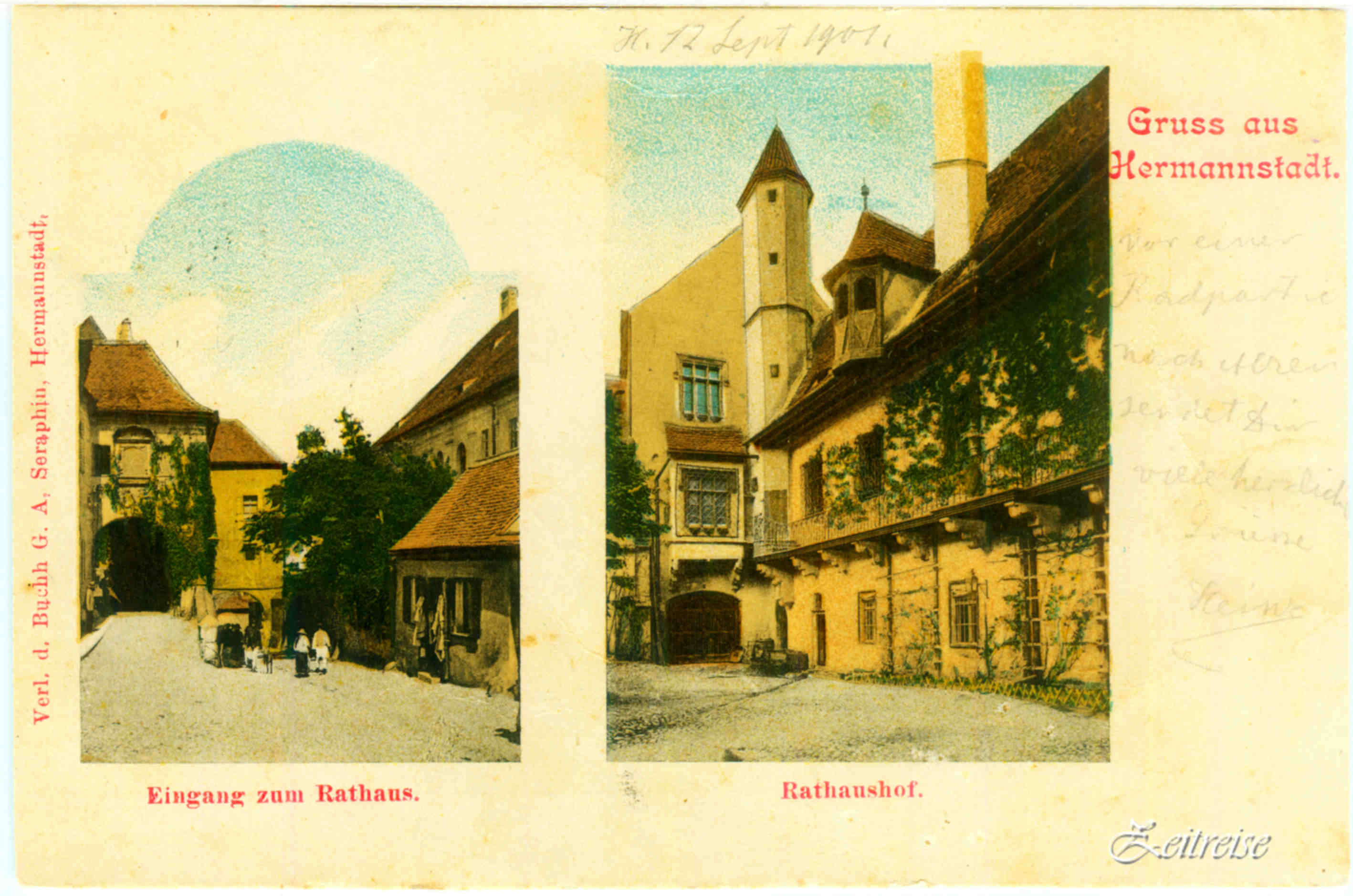 „Salutări din Sibiu“ – „Vechea Primărie/Casa Altemberger // „Altes Rathaus/Altemberger Haus“ – Carte Poştală circulată 1901