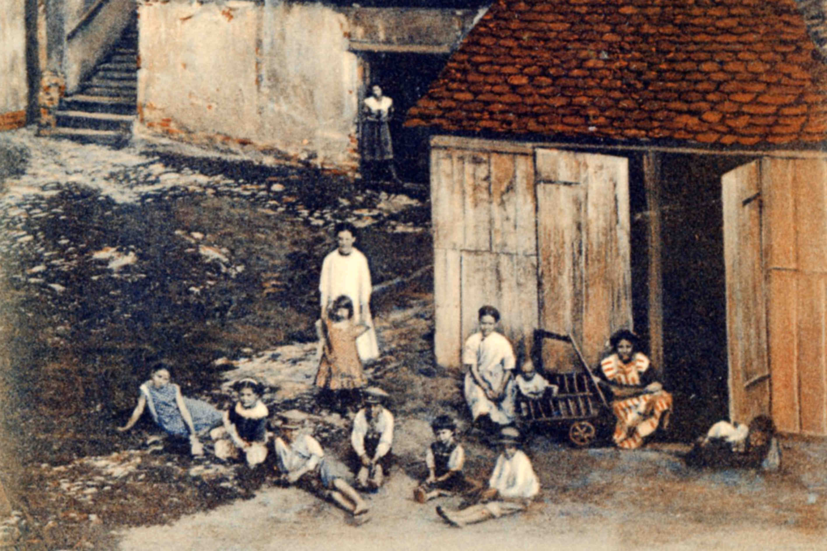 O populaţie amestecată, ca etnie şi statut social, îşi ducea veacul între cămările înalte ale casei impunătoare şi odăile sordide, încropite în grabă, ce-au crescut ca un parazit pe trupul ei. Strada şi curtea pietruită era terenul de joacă al copiilor şi, pot doar bănui, că multe erau cotloanele în care se puteau piti la „v-aţi ascunselea“!