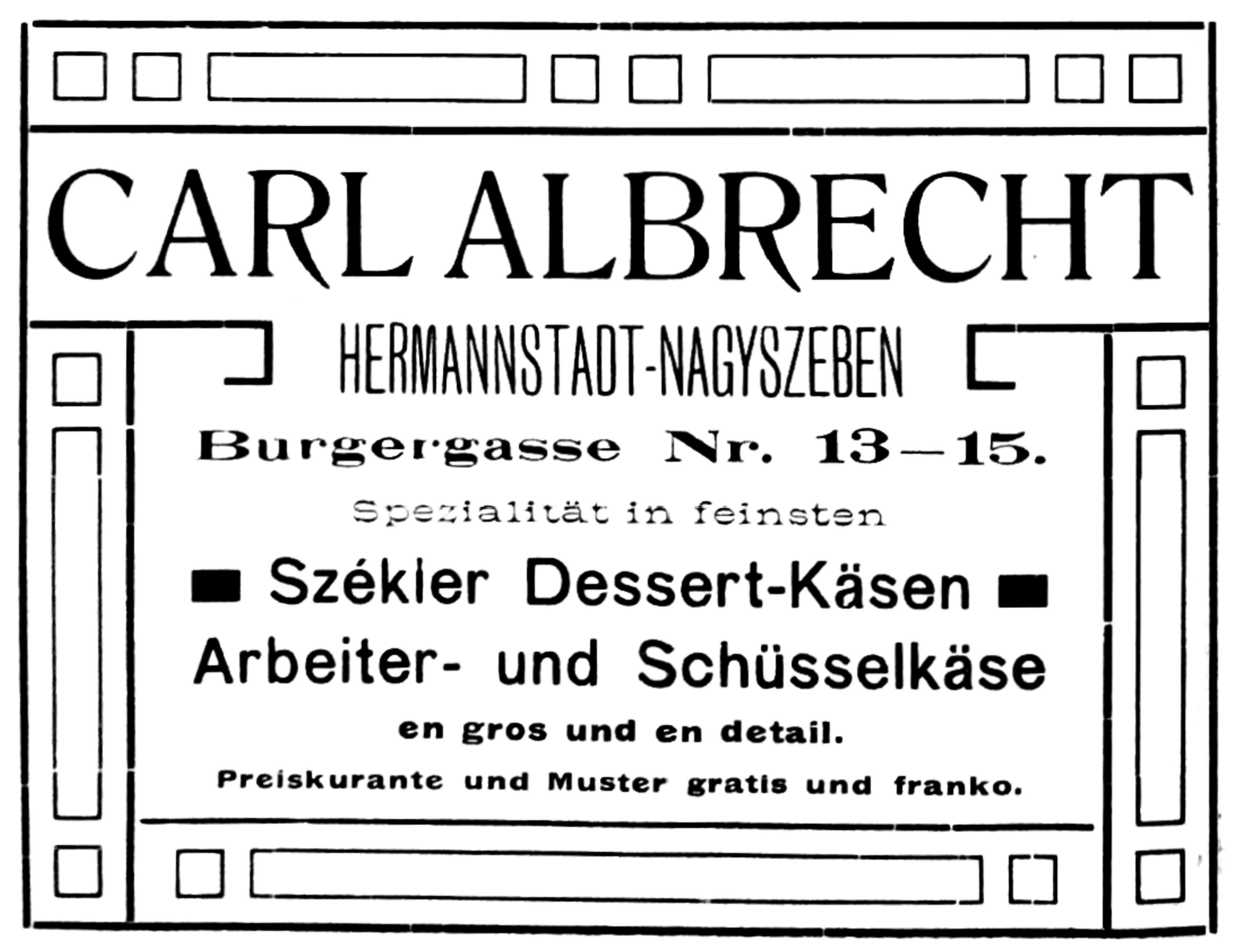 În 1905 Carl Albrecht deschide la Sibiu o fabrică de specialităţi brânzeturi. După primul Război mondial se va numi Fabrica de Industrie Alimentară “Lica” (Lebensmittel Industrie Carl Albrecht). După naţionalizare fabrica de patiserie/dulciuri îşi va schimbă numele în “Victoria”. -