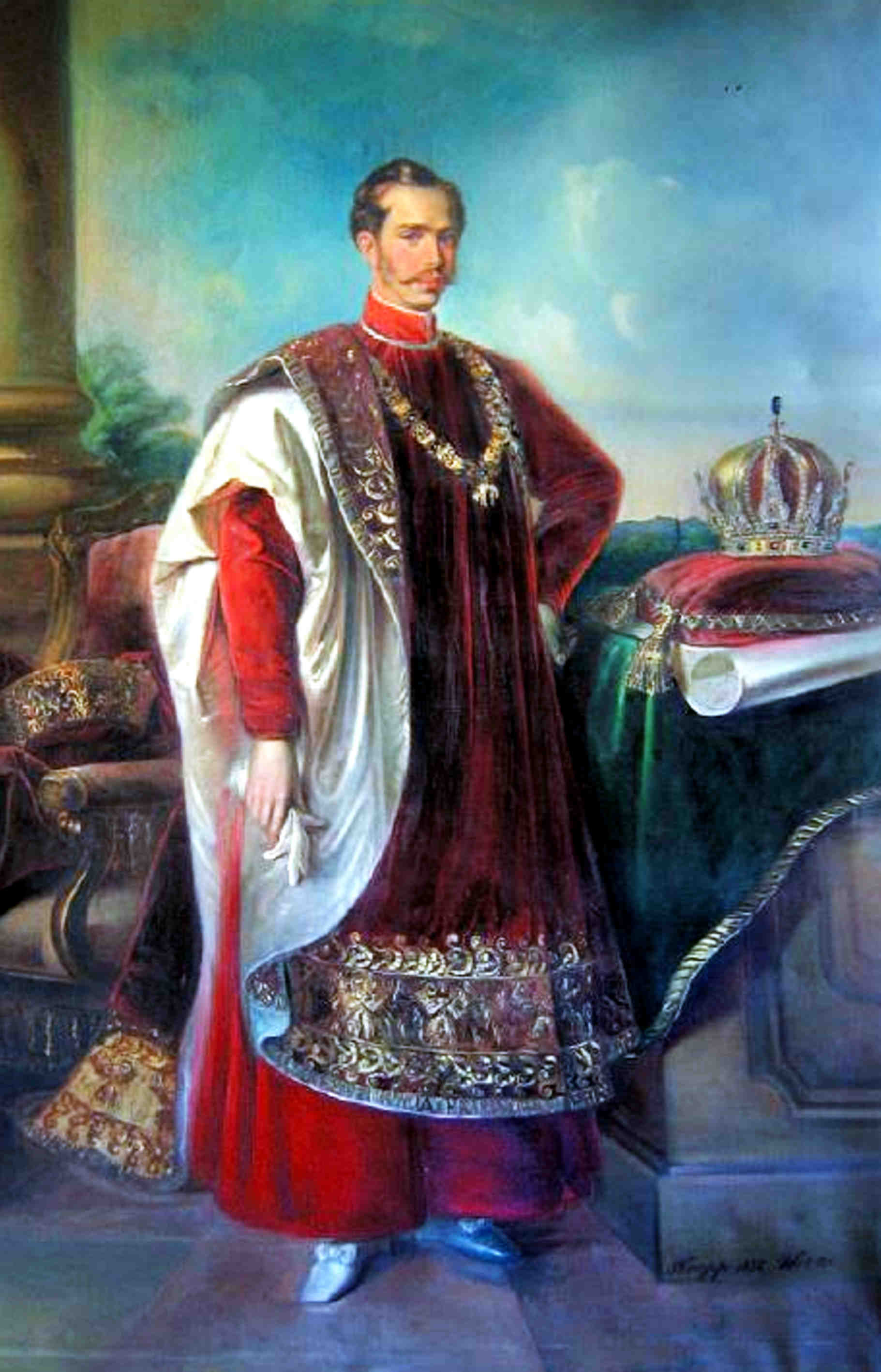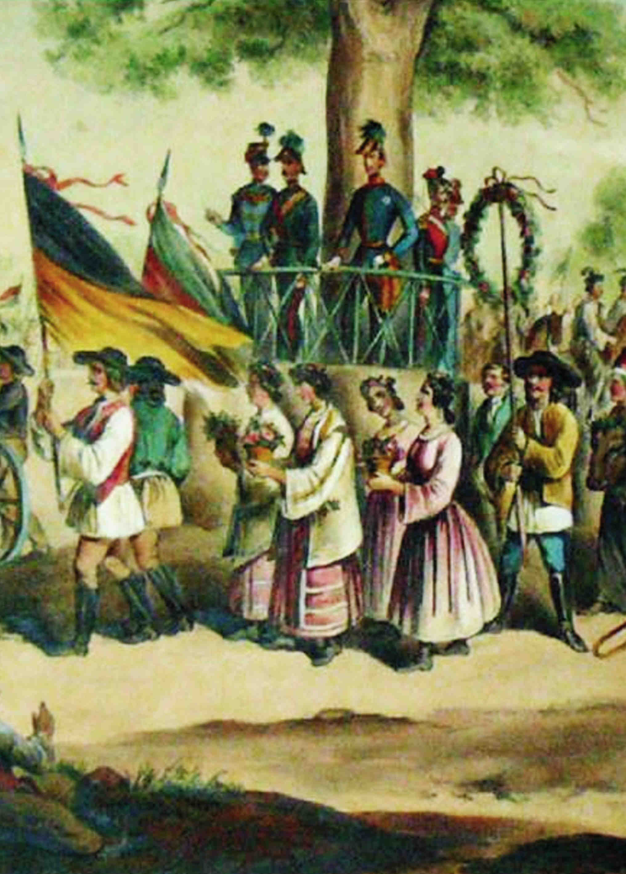 În vara anului 1852, tânărul împărat Franz Joseph I a făcut o călătorie de 70 de zile în Ungaria, Banat şi Transilvania. La 25 iulie 1852 se afla la Sibiu / Hermannstadt, unde a pus piatra de temelie a Spitalului Orăşenesc, care avea să-i poarte numele. Împăratul a participat de asemenea la o petrecere populară organizată în onoarea sa în Dumbrava Sibiului, la umbra unui stejar marcat ulterior cu o placă şi inscripţie comemorativă. Petrecerea a început cu un alai sărbătoresc, pornit din centrul oraşului, trecând pe lângă Palatul Brukenthal – unde locuia Împăratul, găzduit de Baronul Josef Brukenthal – spre pădurea Dumbrava pînă la luminişul unde era pregătită întâmpinarea Împăratului lângă stejarul secular. Alaiul era format din 10 grupuri alegorice reprezentând Agricultura, Meștesugul, Negustoria, Industria şi Viticultura. După primirea alaiului festiv în faţa Palatului Brukenthal, Împăratul Franz Joseph a făcut o excursie de cîteva ore la Cisnădie şi Cisnădioara, apoi s-a îndreptat spre Dumbrava unde a fost întâmpinat la ora 6 după-amiază de mulţimea entuziastă şi gătită în straie de sărbătoare. În jurul stejarului, împodobit cu steaguri în negru/galben şi alb/roşu, se construise o estradă de lemn de pe care Împăratul a asistat la sărbătoarea populară. Sărbătoarea s-a deschis cu „dansul săbiilor“, vechi dans tradiţional şi ritual pe care breasla cojocarilor îl executa doar la festivitatea de investire a unui Comite.