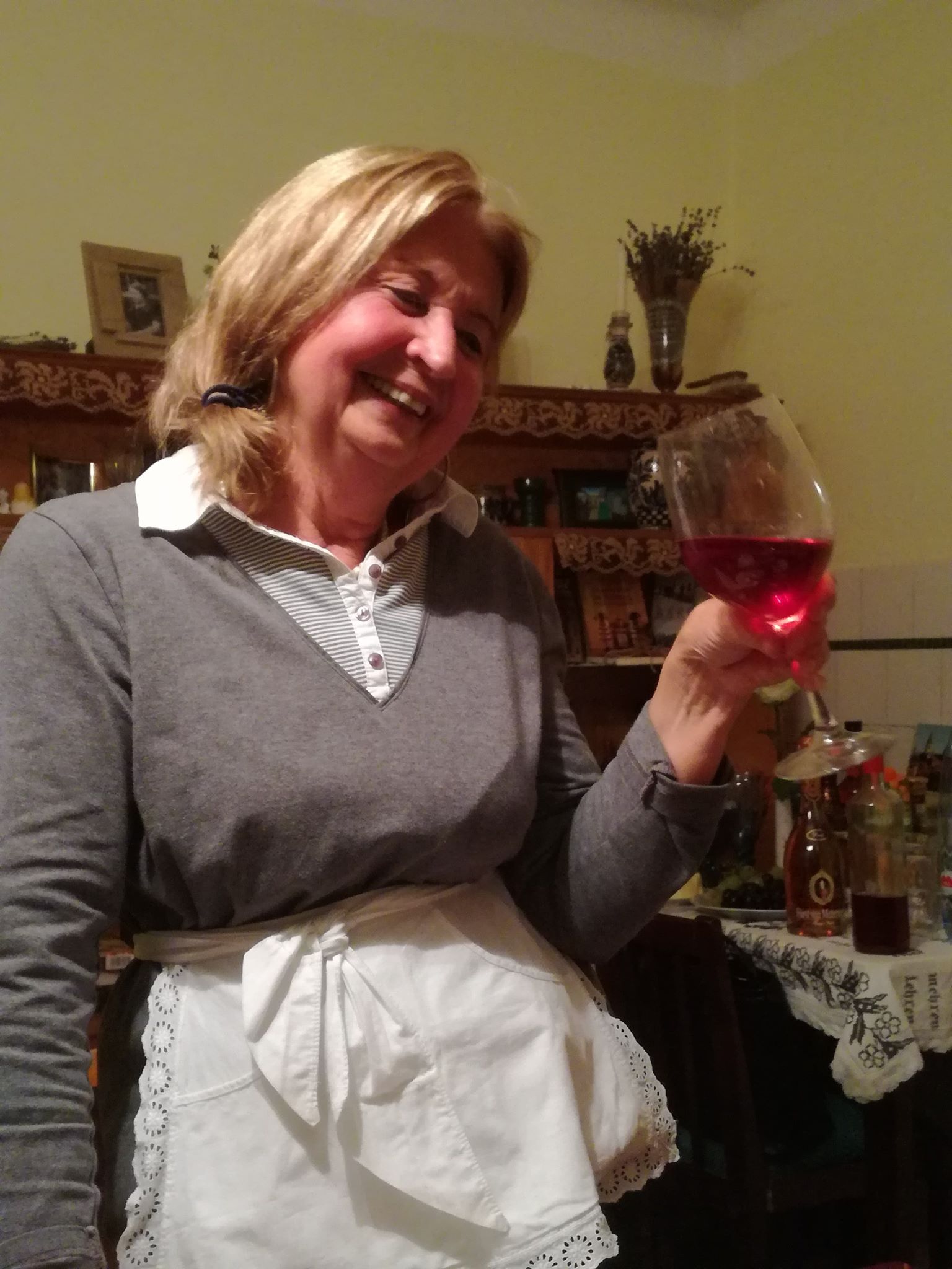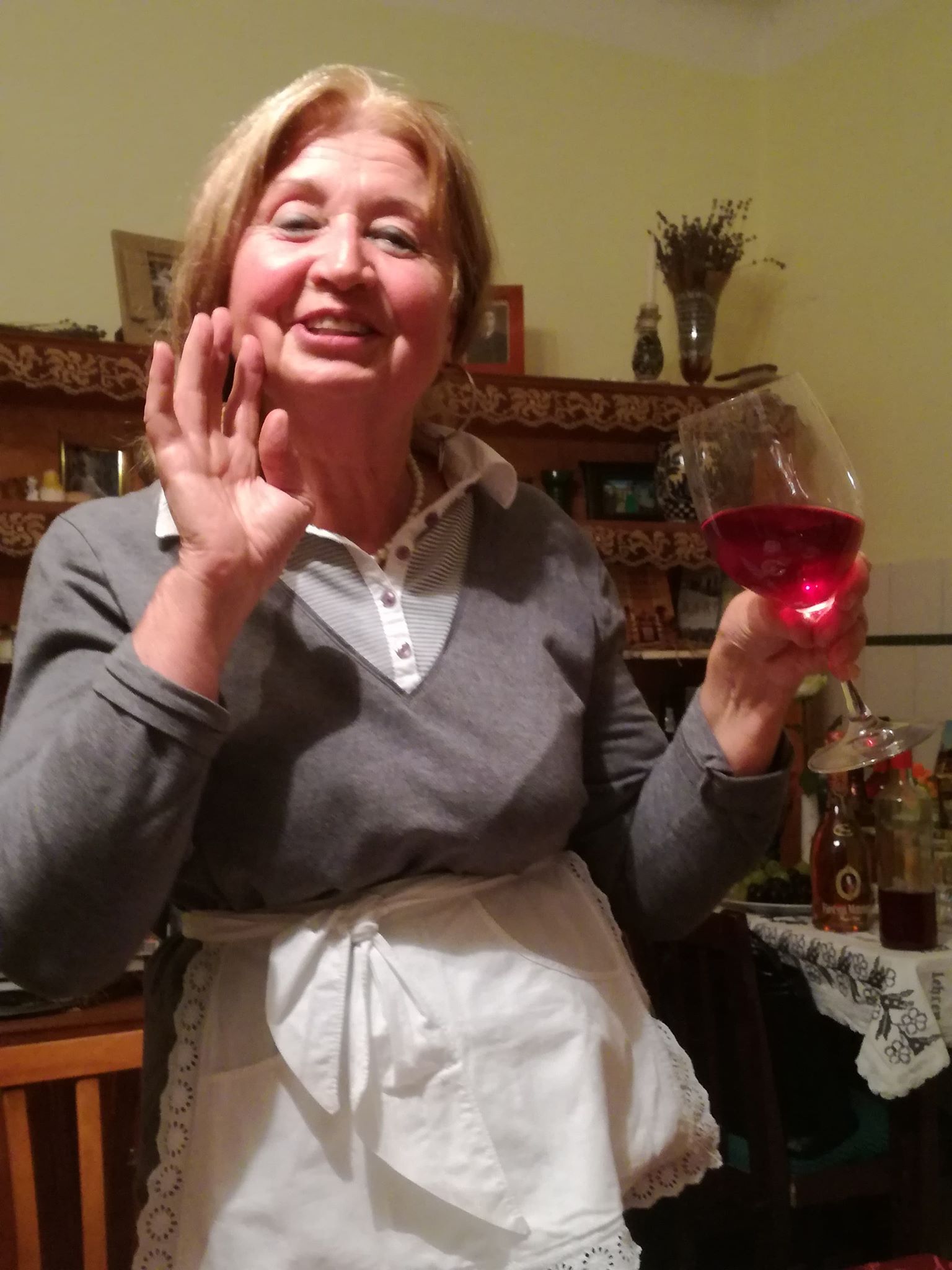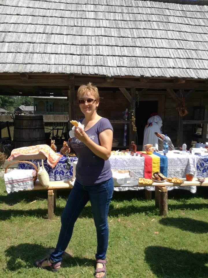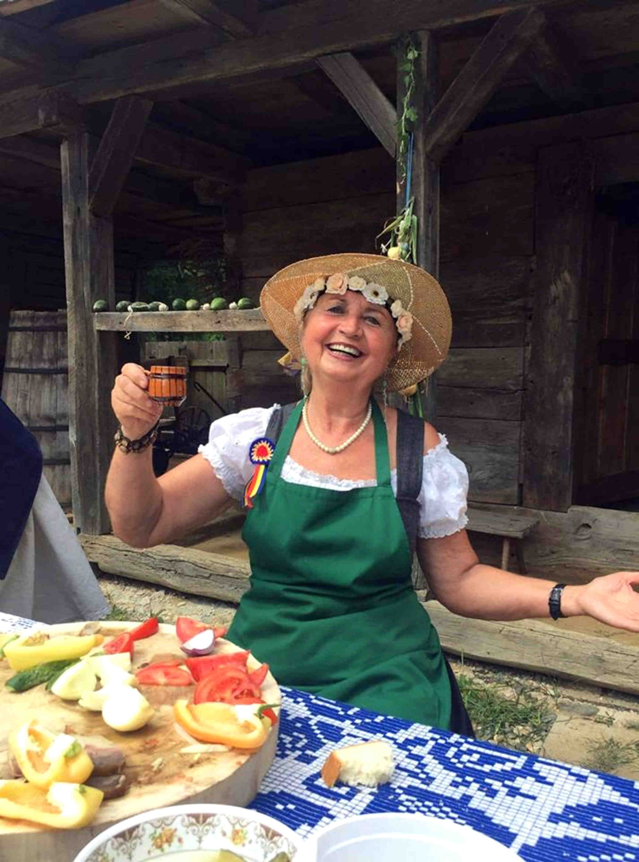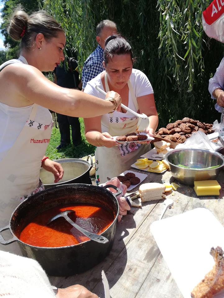 În poarta gospodăriei din Almașu am fost primiți cu palincă. „No ce zici?“ mă întreabă săteanul în straie populare. „Mere“ îi răspund zâmbind. „Mere ori pere? “ Mere pe gât, îi răspund și râdem amândoi, că-i tare!… tare bună!Un grup de francezi se apropie și îi îndemnăm, traducându-le. Ce minune de curte plină de bunătăți: „întorsături“ prăjite în ulei, umplute cu varză și dovleac, cozonaci, mere dulci de vară, ceaun clocotind în pregătire, sub privirea primarului însuși. Ne-a emoționat povestea unei țărănci, ocupată cu tăiatul cârnatului picant cu boia și care se simțea acolo „ca la mama acasă“ și era chiar acasă, doar gospodăria aparținuse bunicii, copilărise și trăise în ea până când a fost achiziționată de Muzeu.