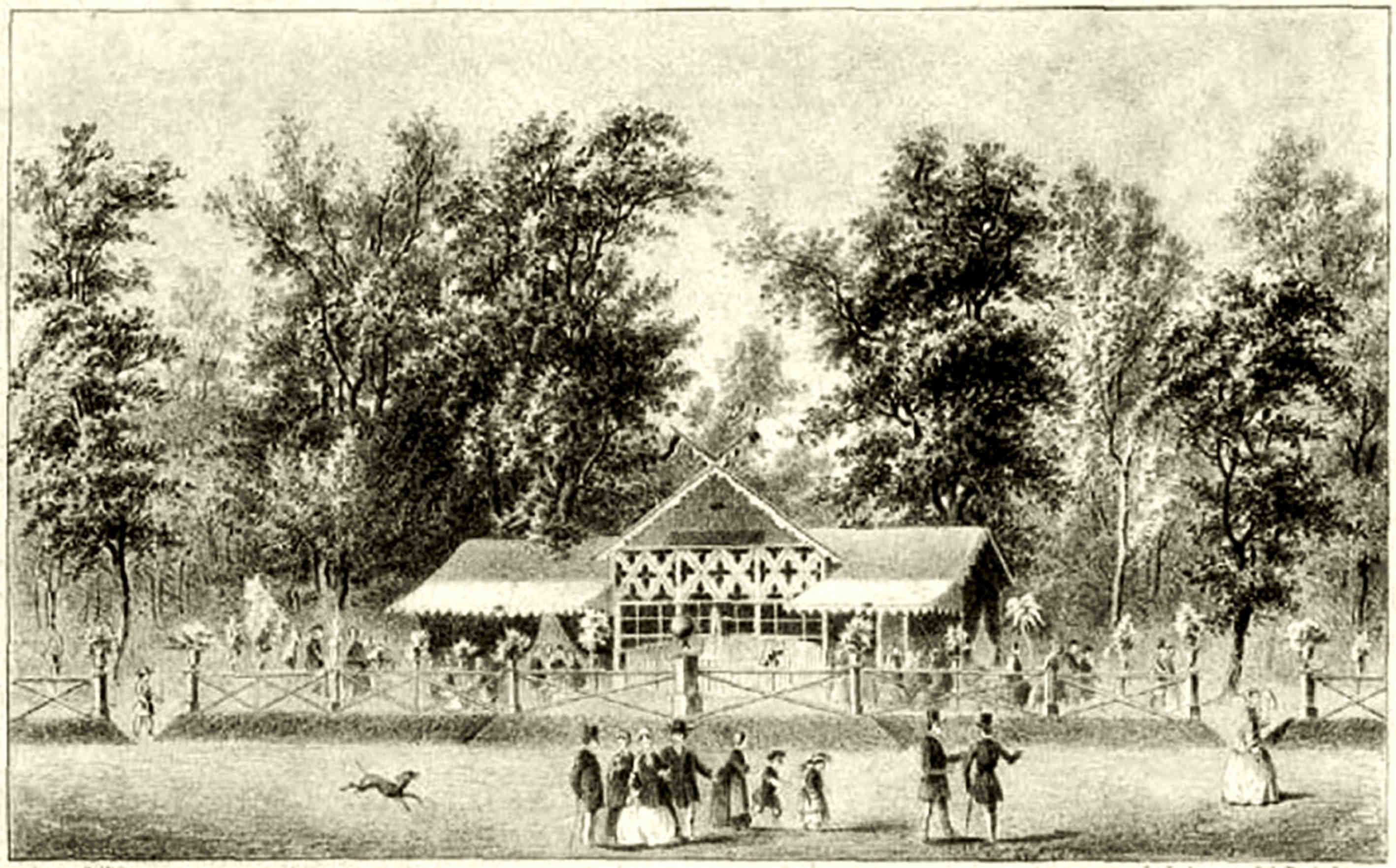 Dantelărie în lemn, statui ce amintesc de măreția artei grecești, poate reprezentări simbolice de zei, dar slăvind frumusețea corpului uman, vase masive cu flori exotice și totul în tihna unei grădini… Imaginea aceasta o mai poți vedea prin Austria și Germania, prin locuri iubite de regi și alaiul lor, la Băi celebre, rămase însă locului și în picioare până în ziua de azi. Și totuși, am avut și noi un asemenea pavilion, a cărui amintire s-a păstrat într-o gravură și în consemnările lui Sigerus.