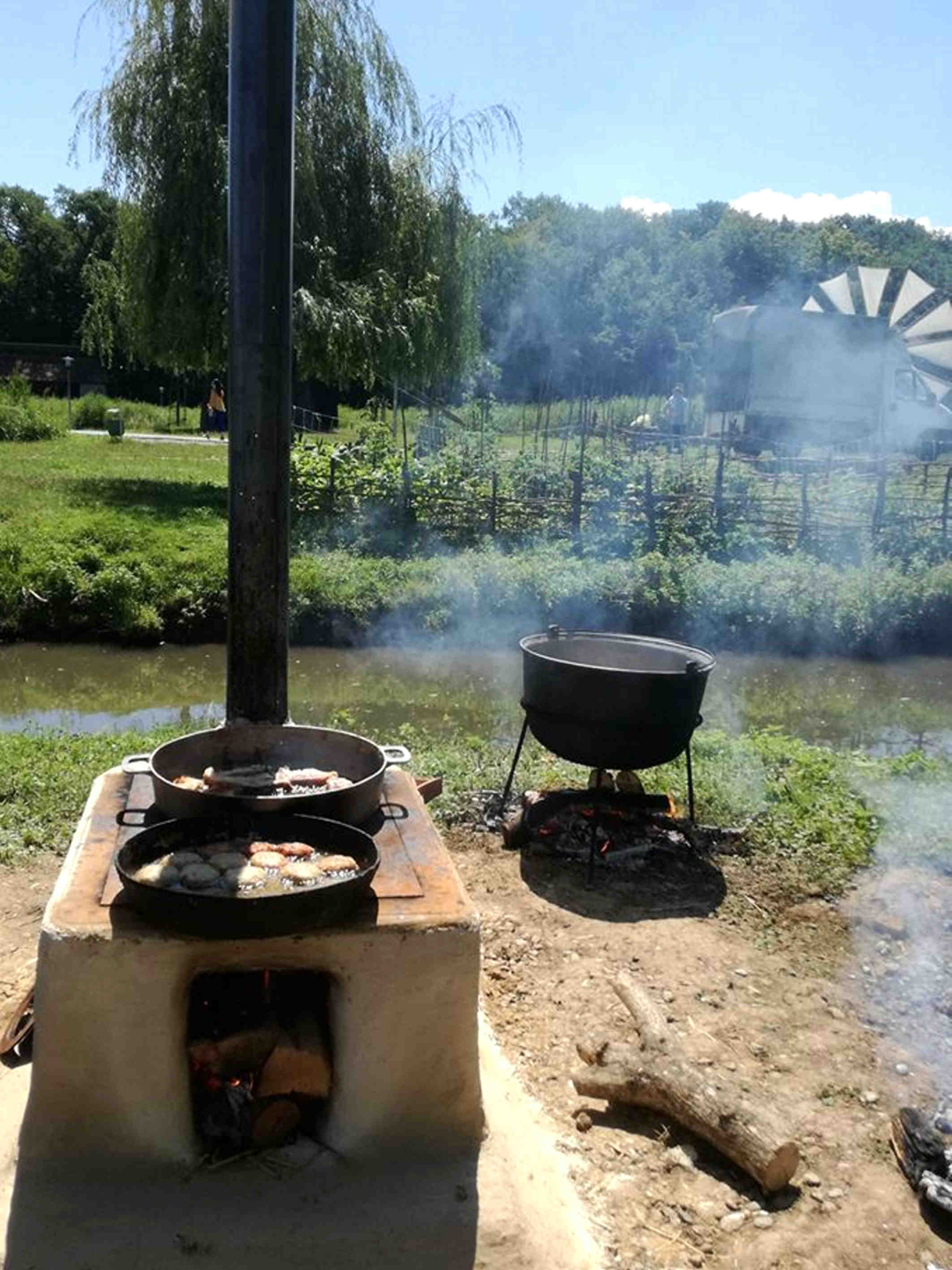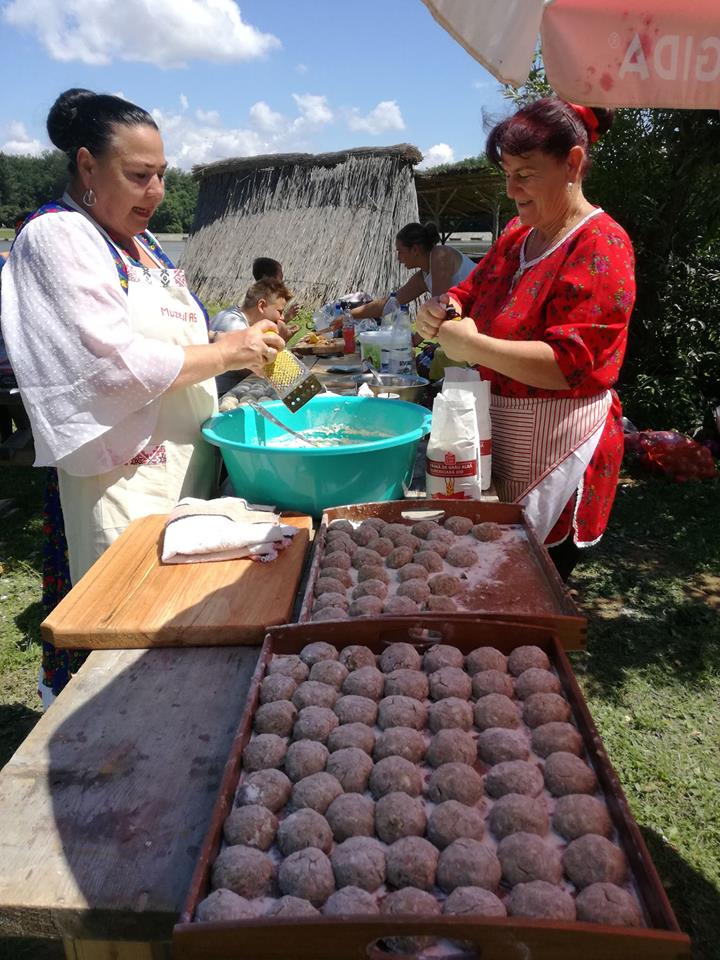 Pe cărările satului am poposit pe la lipovenii de la Mila 23, am mâncat ciorbă cu perișoare de știucă, chiftele de pește cu sos, piroșchi umplute cu brânză dulce. Am mărit pasul spre tătarii din Constanța, românii de pe valea Timocului. Unii aveau ceaunele goale, se frecau cratițele cu nisip, ceilalți mestecau de zor în „borândau“. Am mai fi gustat și am mai fi stat.În spuza unui foc se coceau pâinițe dolofane „pentru delegații“. „Discriminare!“, a strigat o doamnă. Se pare că, una din metehnele rămase din alte vremuri, e servirea aceasta, preferențială a reprezentanților, a delegațiilor. Și aici am văzut carența organizării: ceaunele au fost insuficiente pentru vizitatori și oficiali. Poate un „studiu de piață“ ar fi fost binevenit.