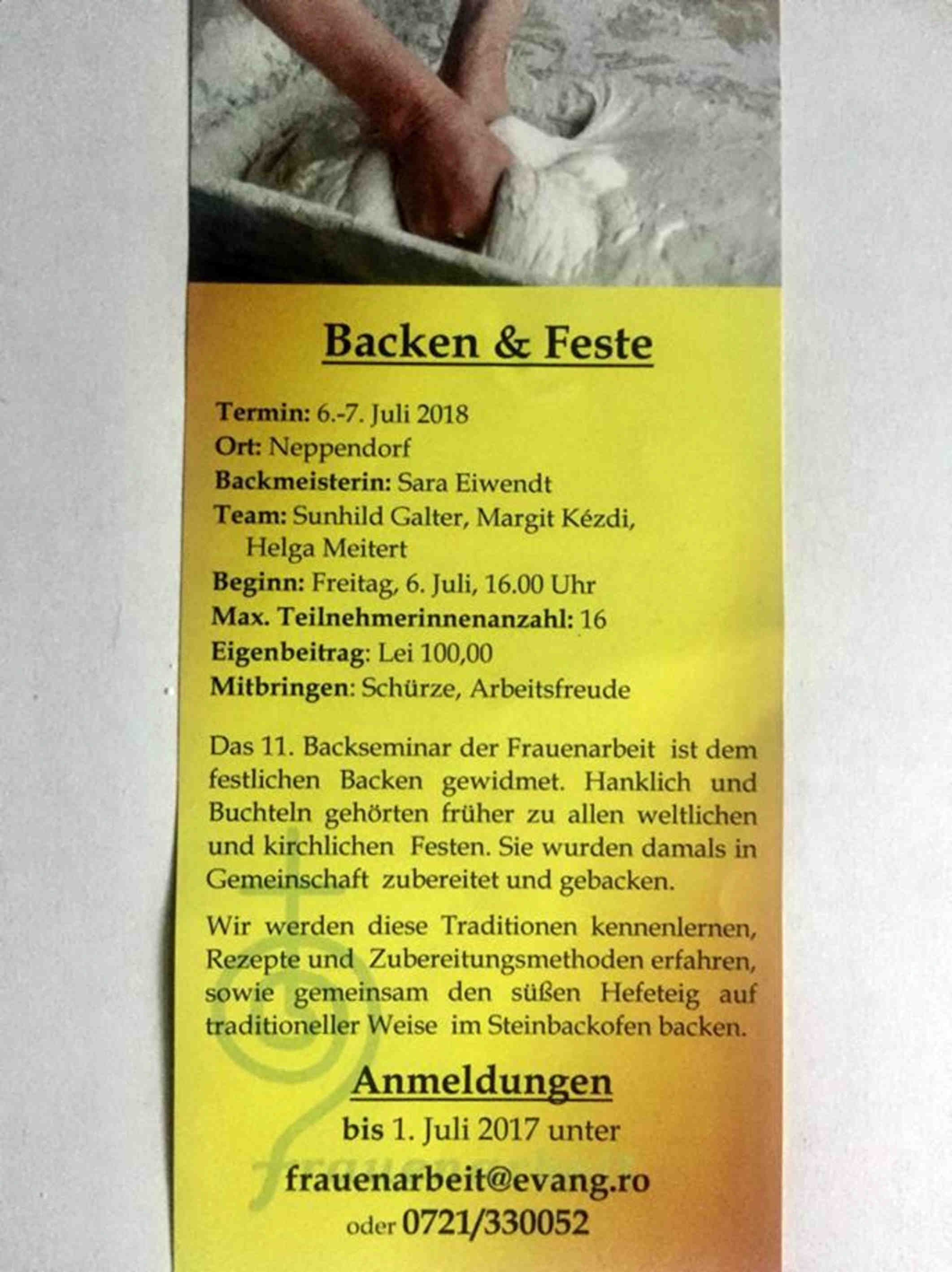 Experiența Seminarului de copt, pe care comunitatea săsească din Neppendorf / Turnișor l-a avut , a trezit în mine amintiri împrăștiate în locuri și vremi îndepărtate. Îmi amintesc truda din preajma sărbătorilor, ori a nunților, când toate gospodiele frământau aluatul de cozonaci, ori de pâine, pe care-l duceau la copt, de multe ori împreună, la brutarul din sat.