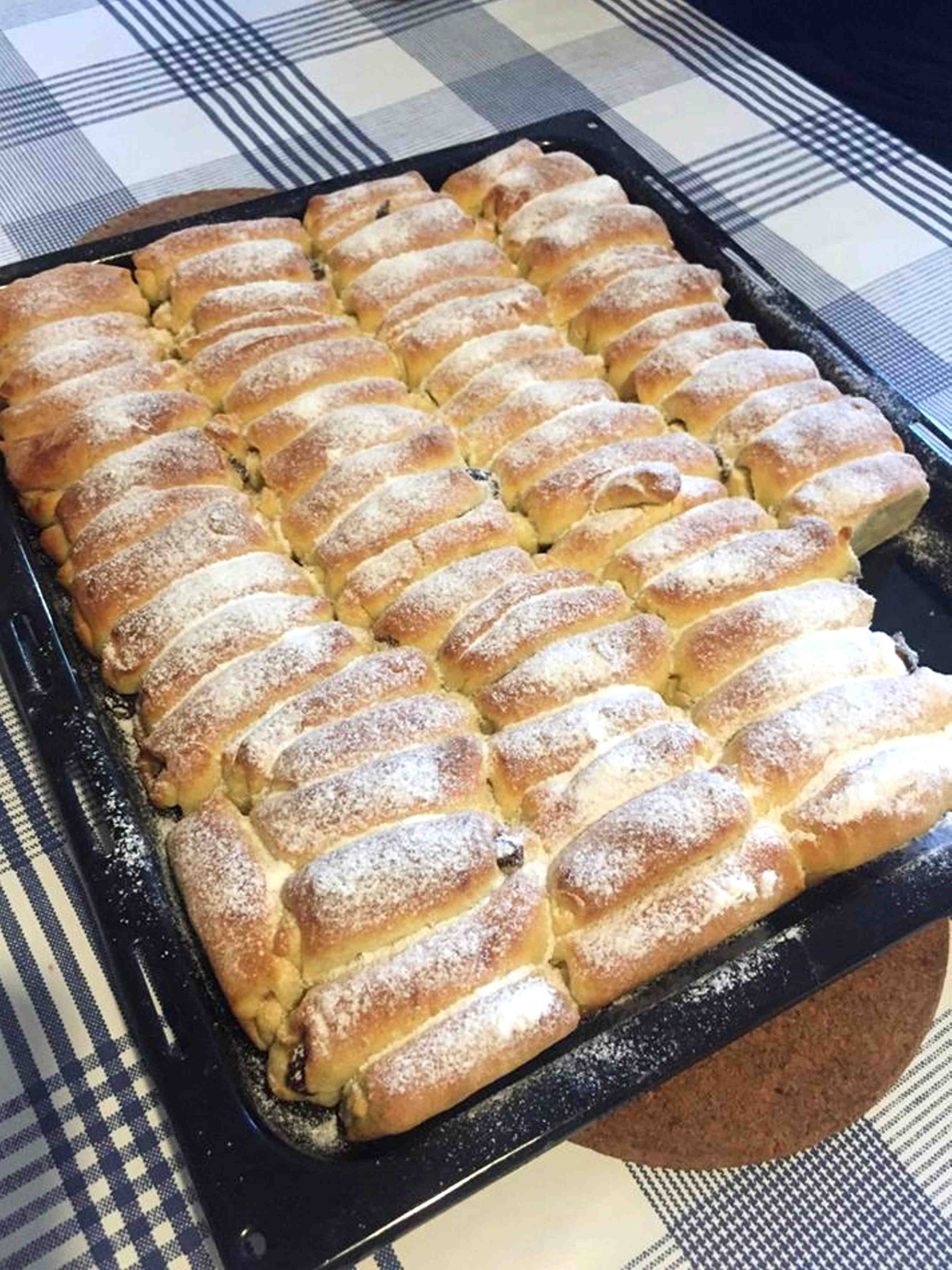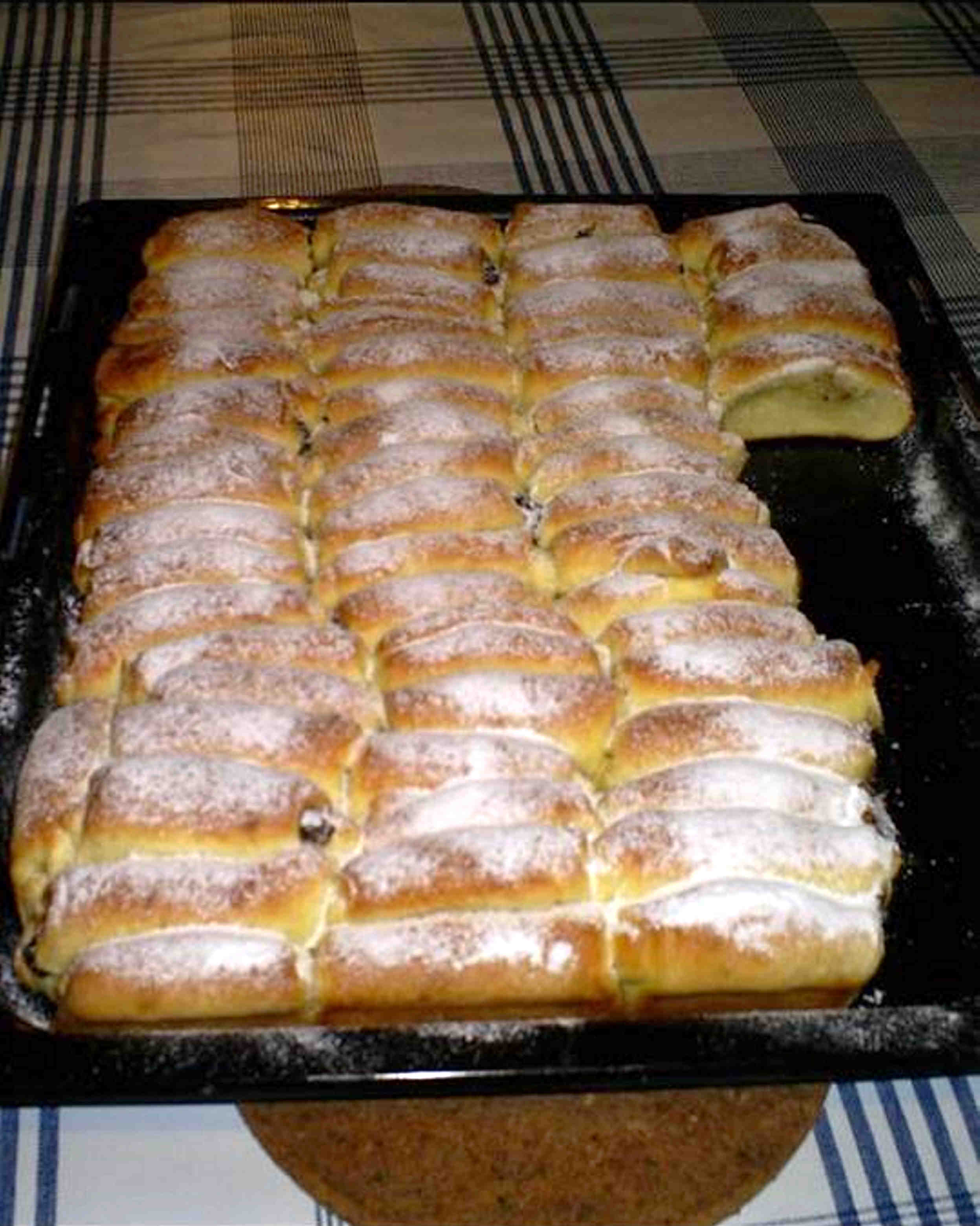 Se pregătește aluatul ca pentru cozonac, când este dospit se întinde în foaie care se taie fâșii, apoi dreptunghiuri, se pune marmeladă în mijlocul fiecărui dreptunghi, se împachetează și se pun în tavă unsă. Se mai lasă un pic să crească, se ung cu gălbenuș de ou și se dau la cuptor. Poftă bună!