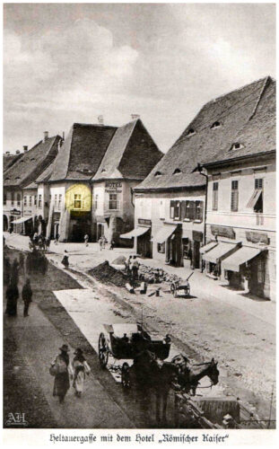 Primăria veche, cunoscută sub denumirea de Casa Altemberger / Pempflinger, şi Turnul de Poartă de pe strada A. Odobescu, ( vechea denumire, Pempflingergasse ), fotografiate la sfârșitului ultimului deceniu al secolului al XIX-lea de la etajul clădirii strada Mitropoliei nr.1, ( vechea denumire, Fleischergasse / strada Măcelarilor ), de Oskar Van Zel von Arlon.