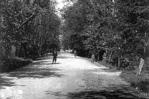 În această fotografie rară se vede Promenada Superioară sau Promenada de Sus // Obere Promenade fotografiată de notarul sibian Theis Gustav în ziua de 14 aprilie 1896 oră 14:30. Promenada Superioară se afla între str. Berăriei şi str. Independenţei pe dâmbul de pământ, astăzi parcul Corneliu Coposu. Fotograful amator Theis a fotografiat aleea dinspre capătul sudic al promenadei. Marea Glorietă se afla în partea dreaptă a fotografului. La capătul opus al promenarei se vede Templul Latzel. Pe partea dreaptă a promenadei recunoaștem gardul vopsit în alb al Pavilionului Elvețian – Gaudenz. Fotografie din colecția personală.