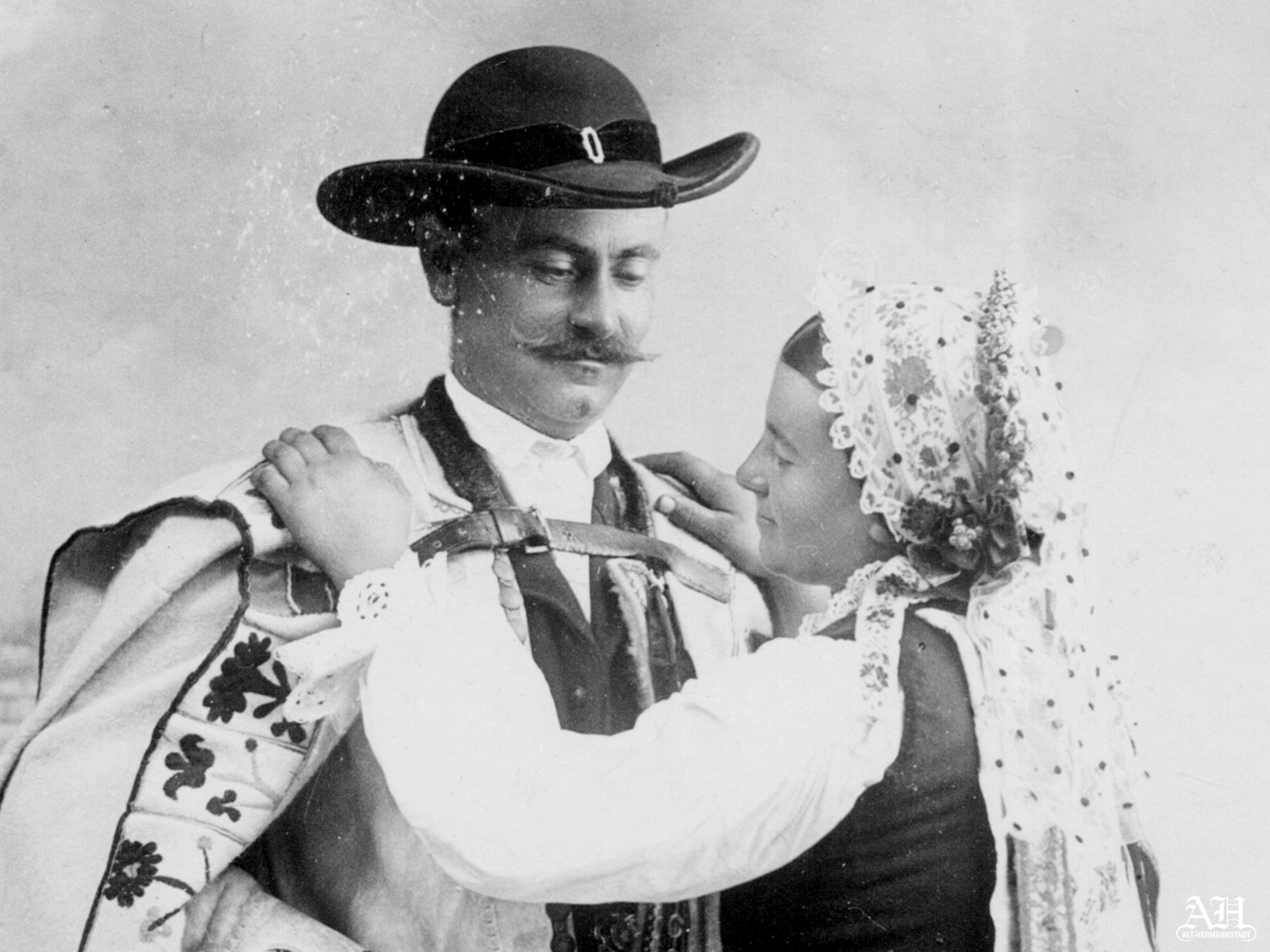 Fotografia „Tineri în port popular săsesc“ a fost realizată în atelierul lui Theodor Glatz.