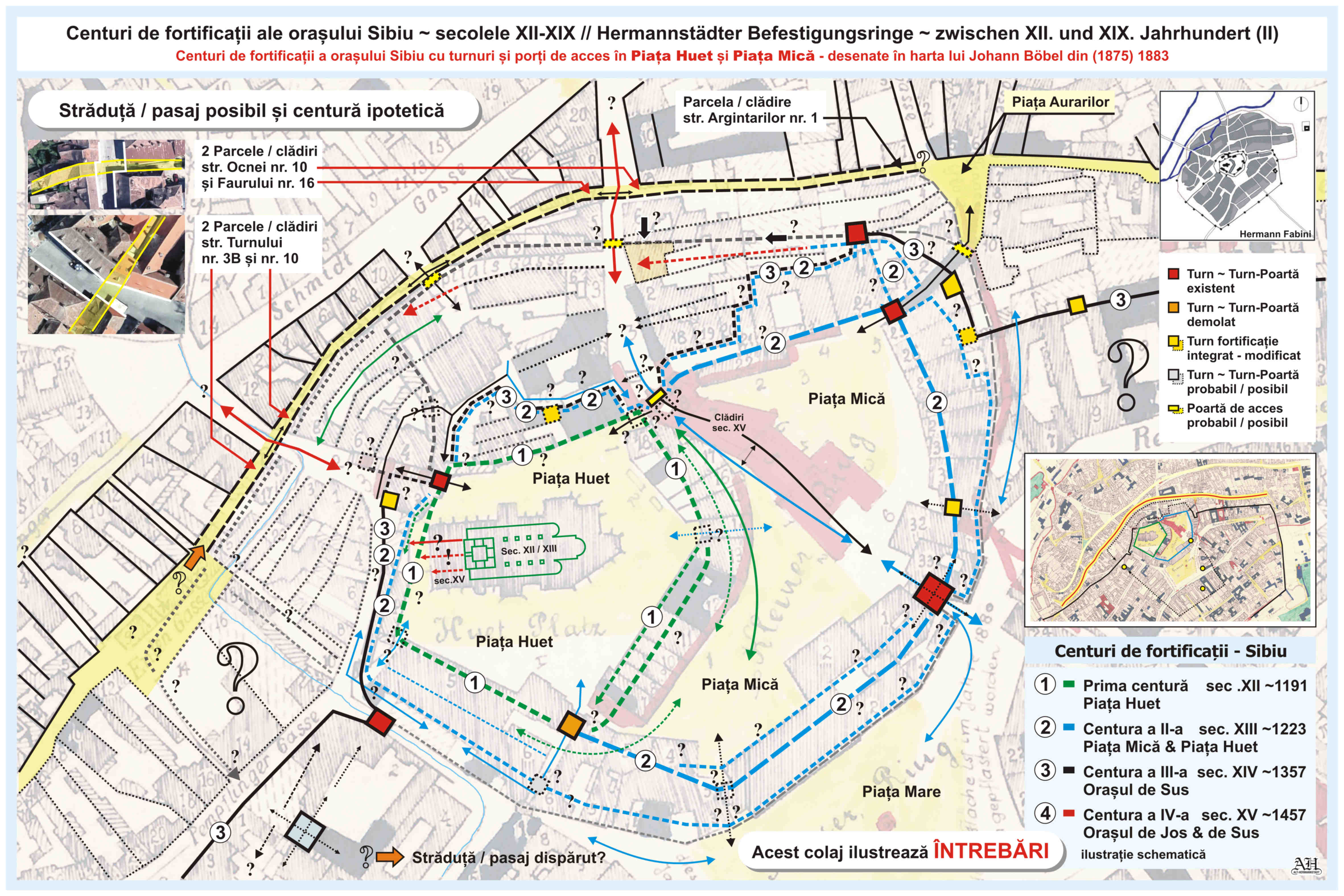 ~ poziția turnului din curtea Casa Altemberger față de zidul centurii a III-a de fortificații și legătura acestui turn în constelația cu turnul din Piața Mare nr. 10 Casa Haller și cel de la nr. 13 Casa Lutsch…