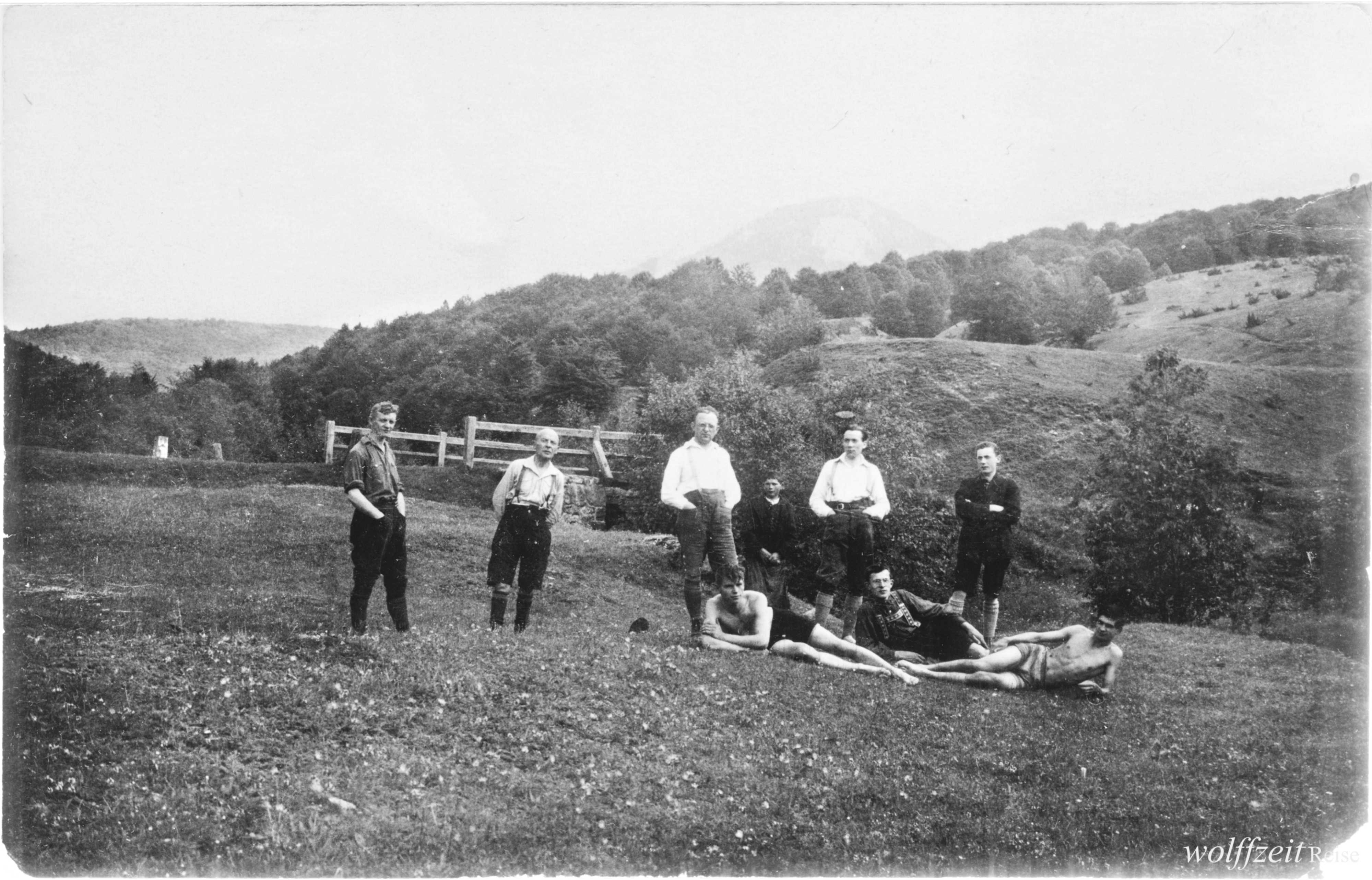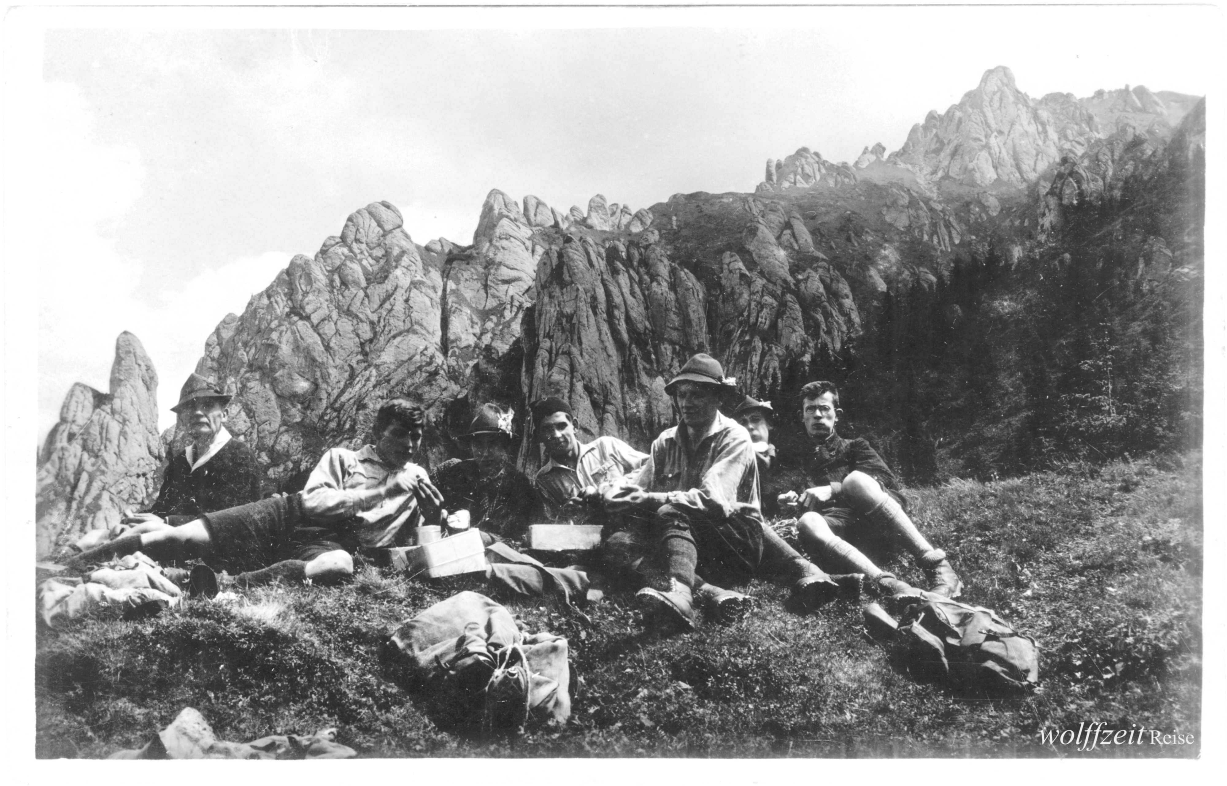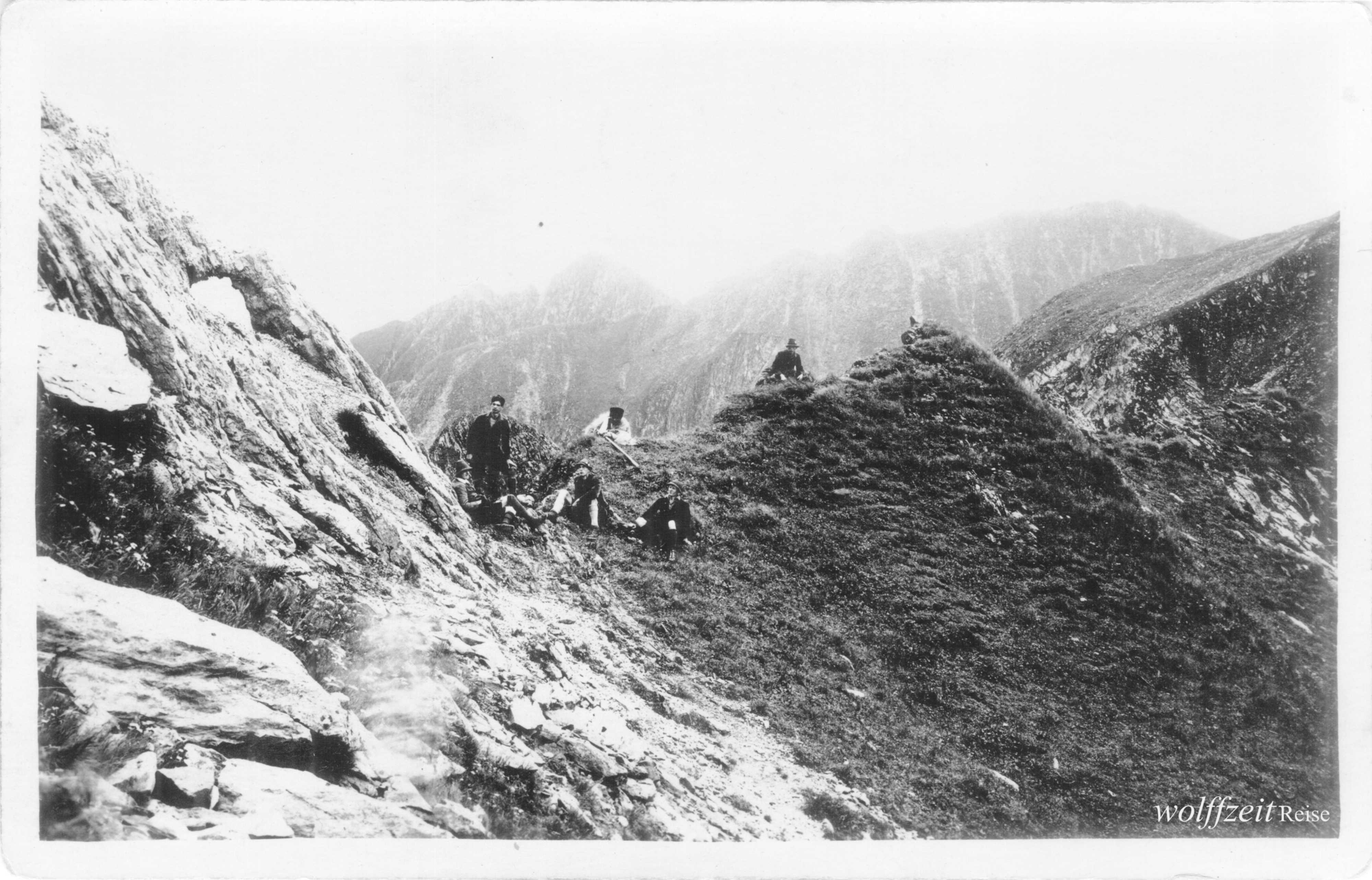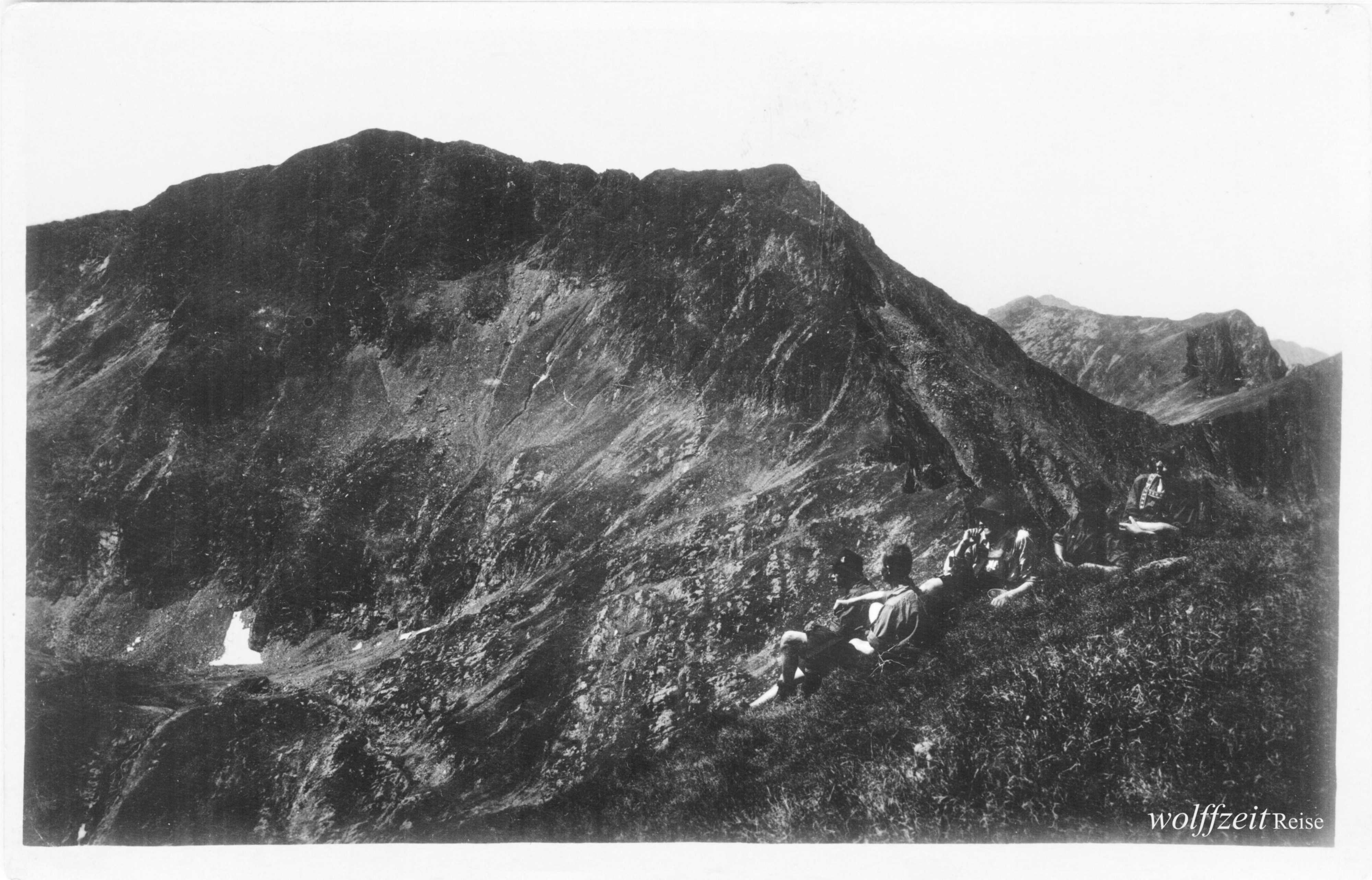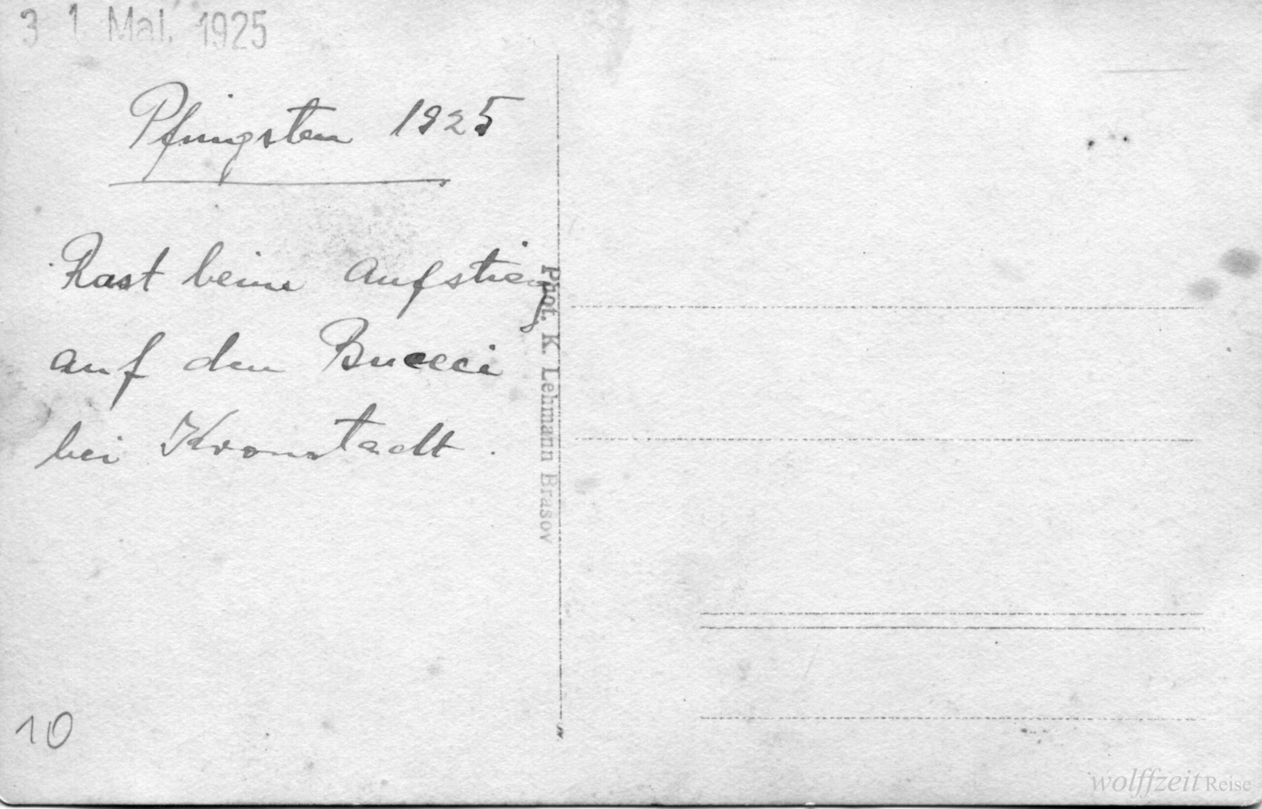 Rückseite beschriftet: „Pfingsten 1925. Rast bei dem Aufstieg auf den Buceci bei Kronstadt.” //