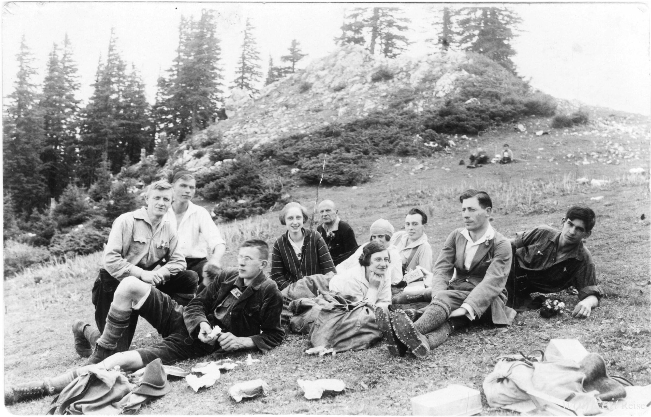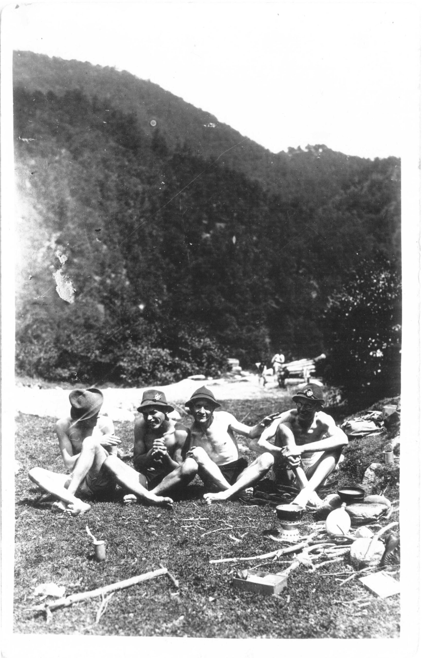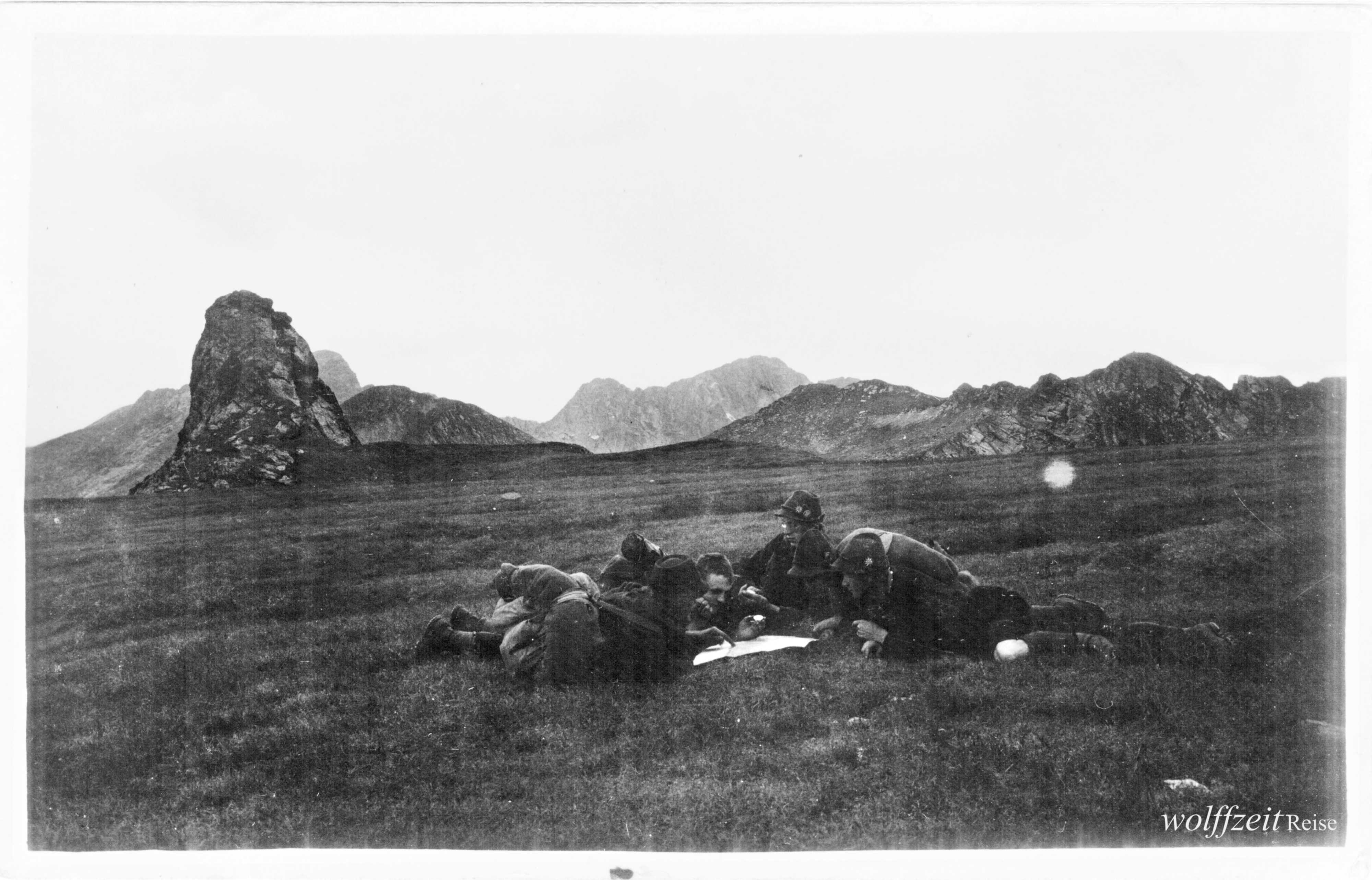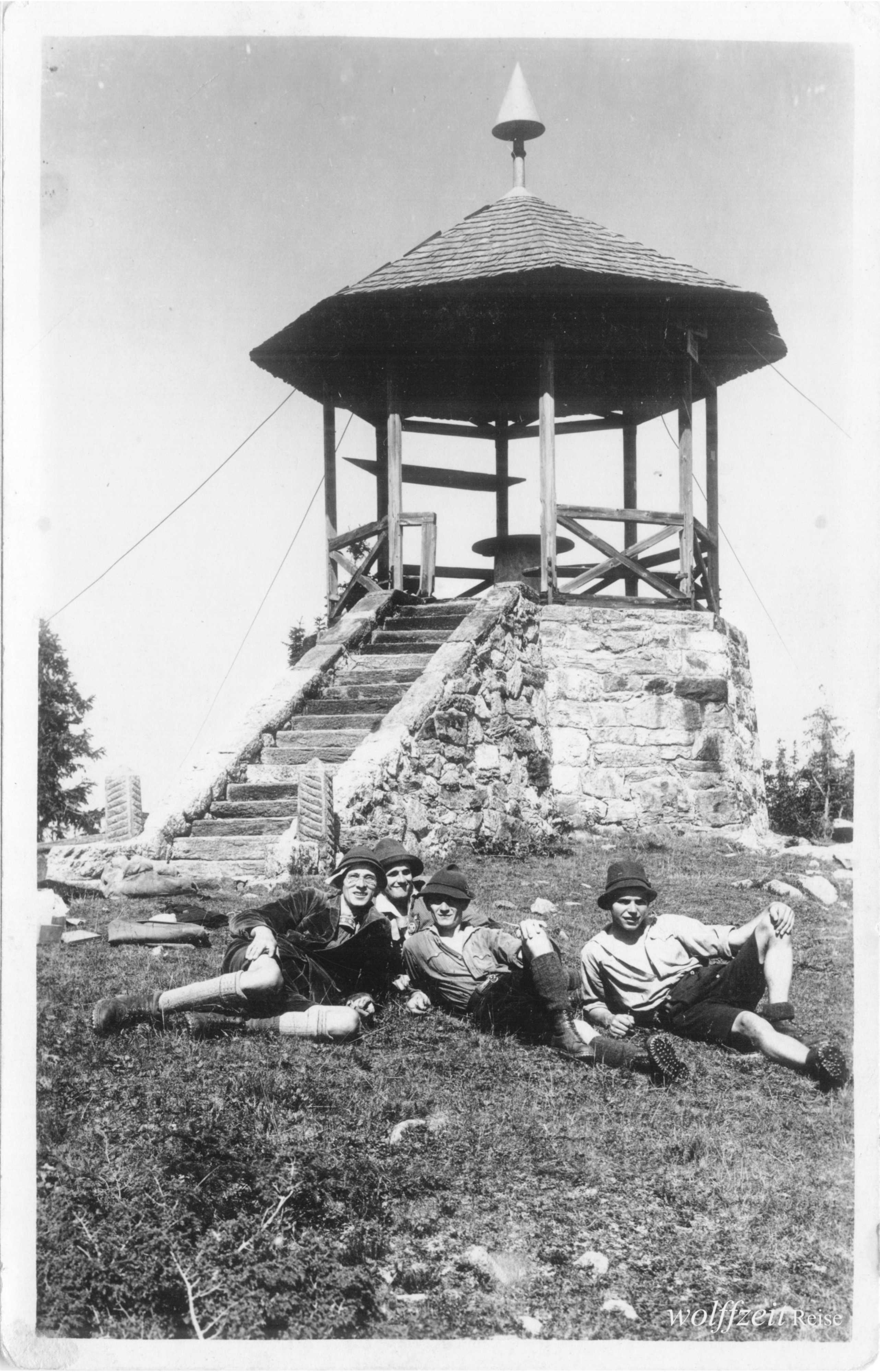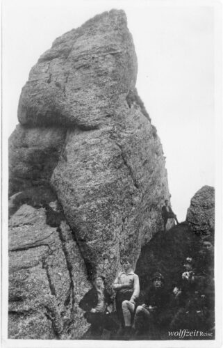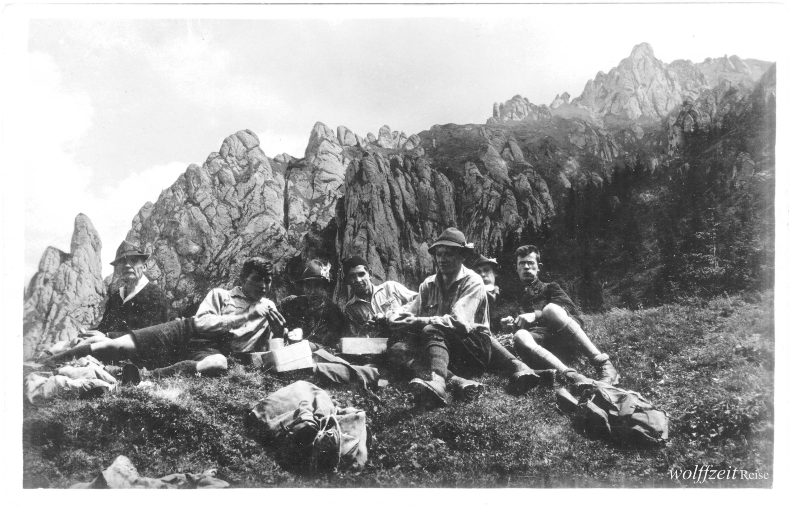 Rückseite beschriftet: „Pfingsten 1925. Rast bei dem Aufstieg auf den Buceci bei Kronstadt.” //