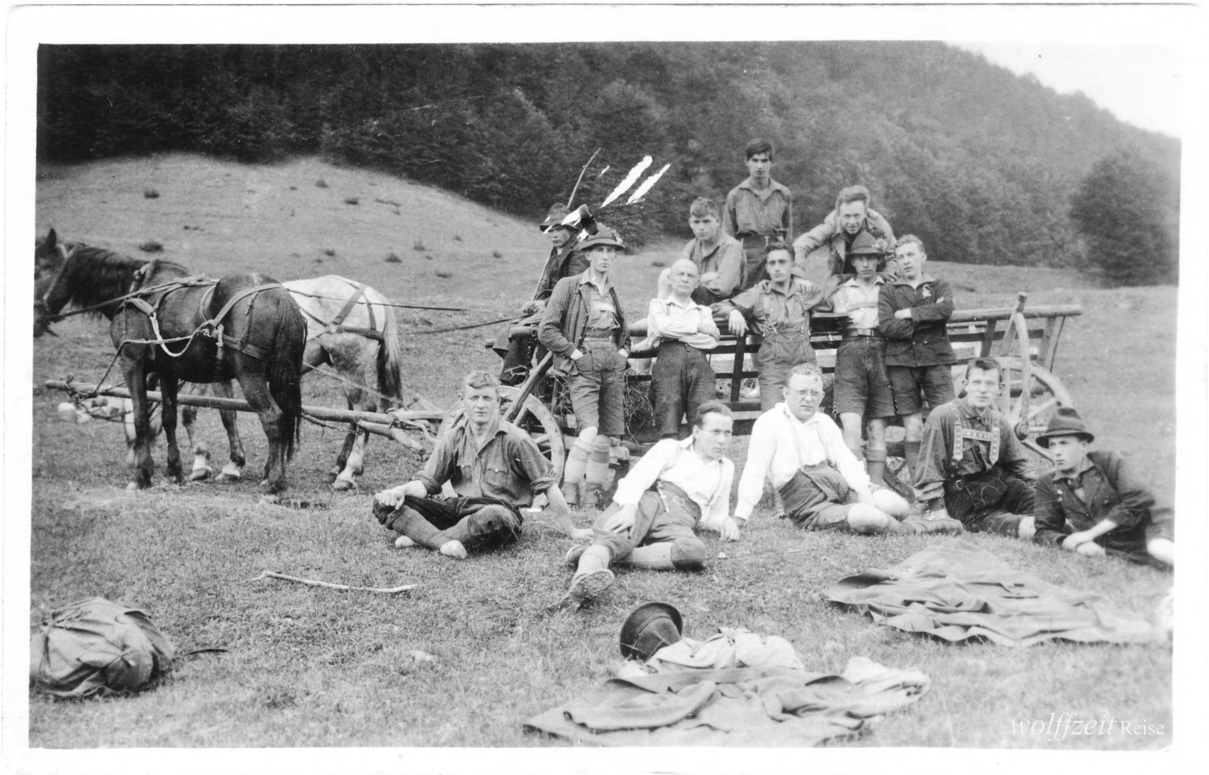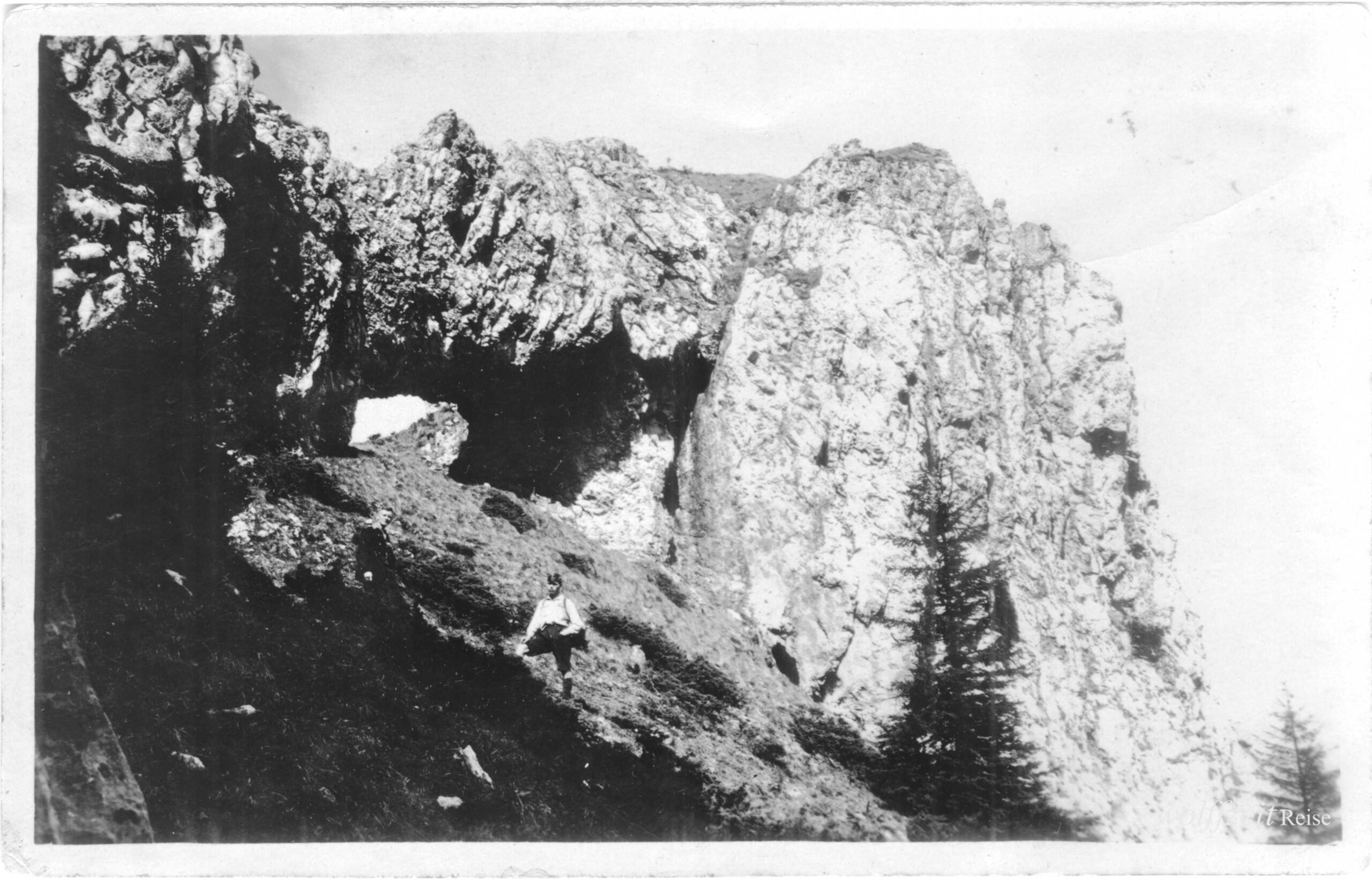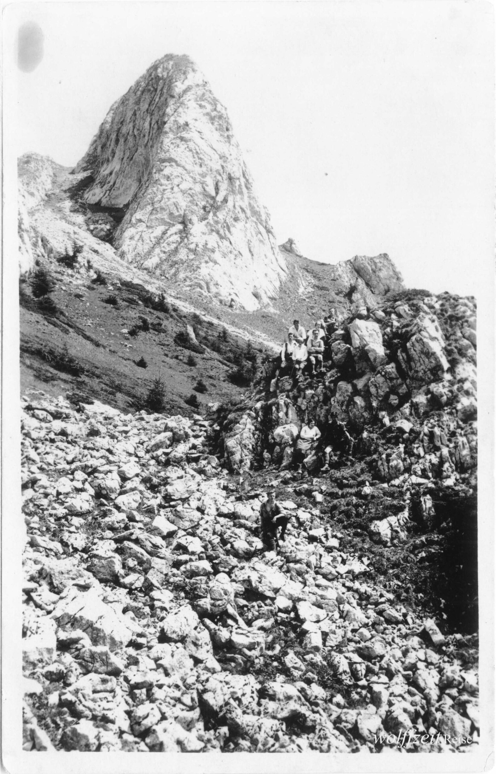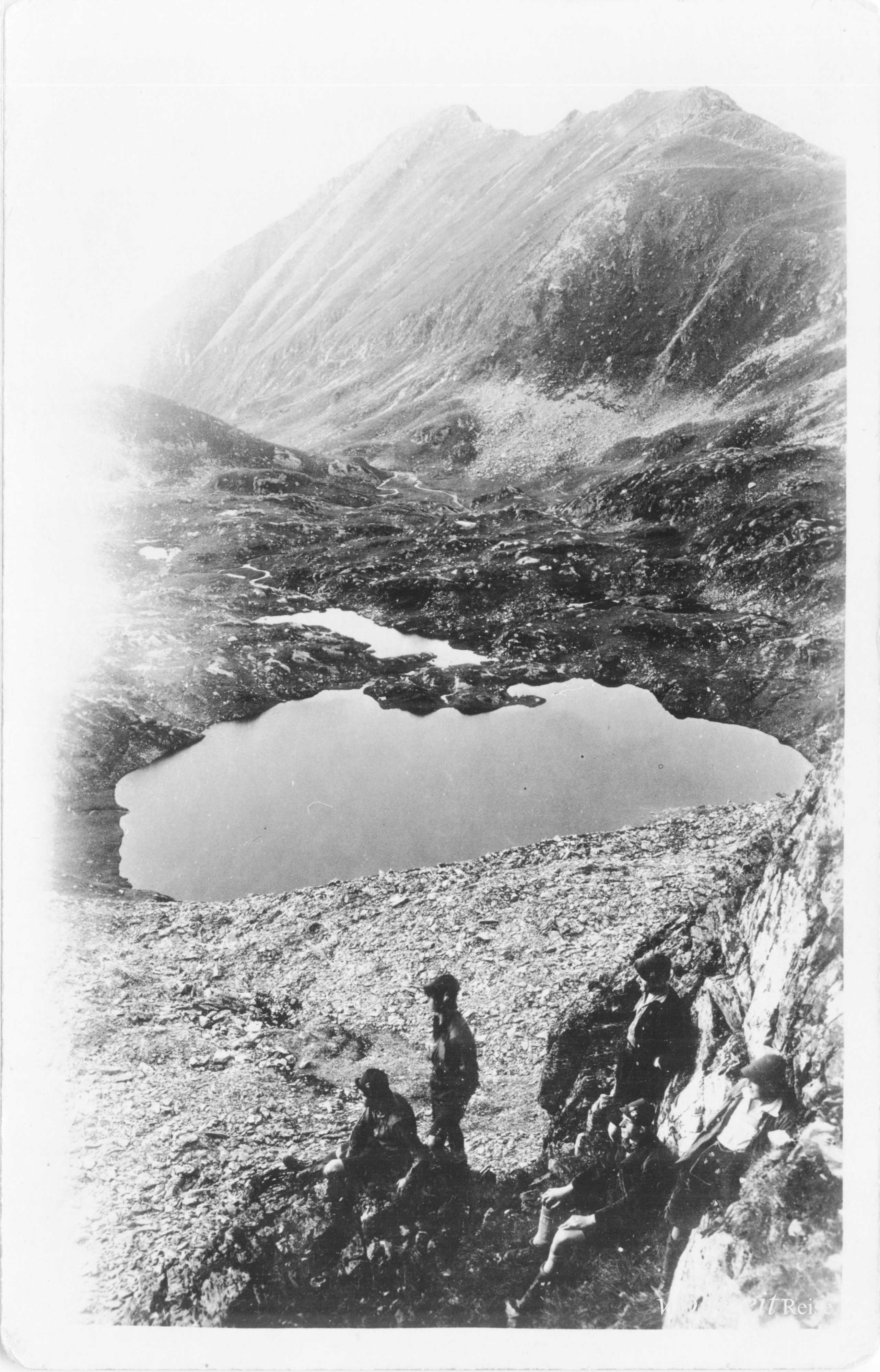 Rückseite beschriftet: „Pfingsten 1925. Rast bei dem Aufstieg auf den Buceci bei Kronstadt.” //
